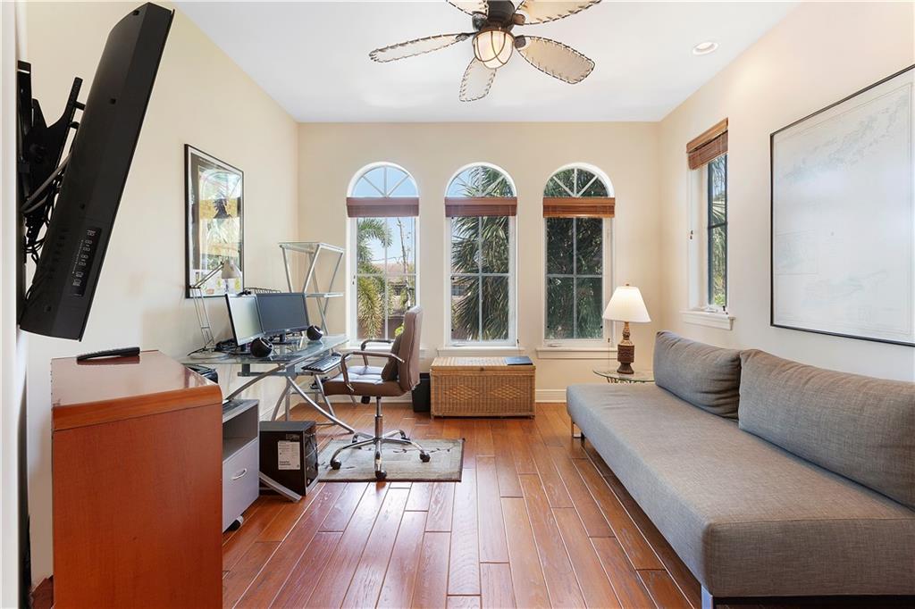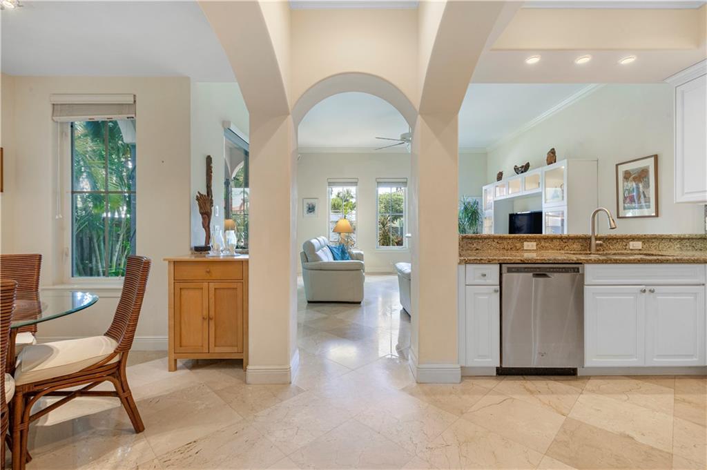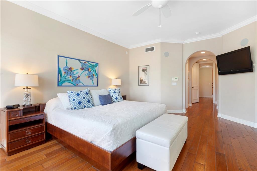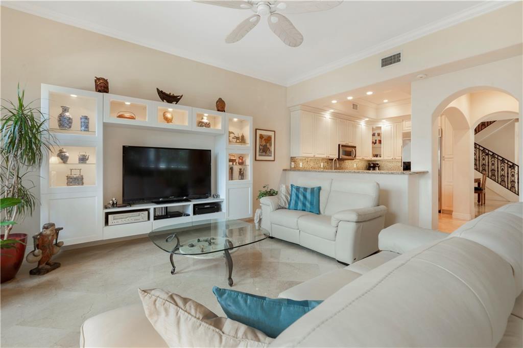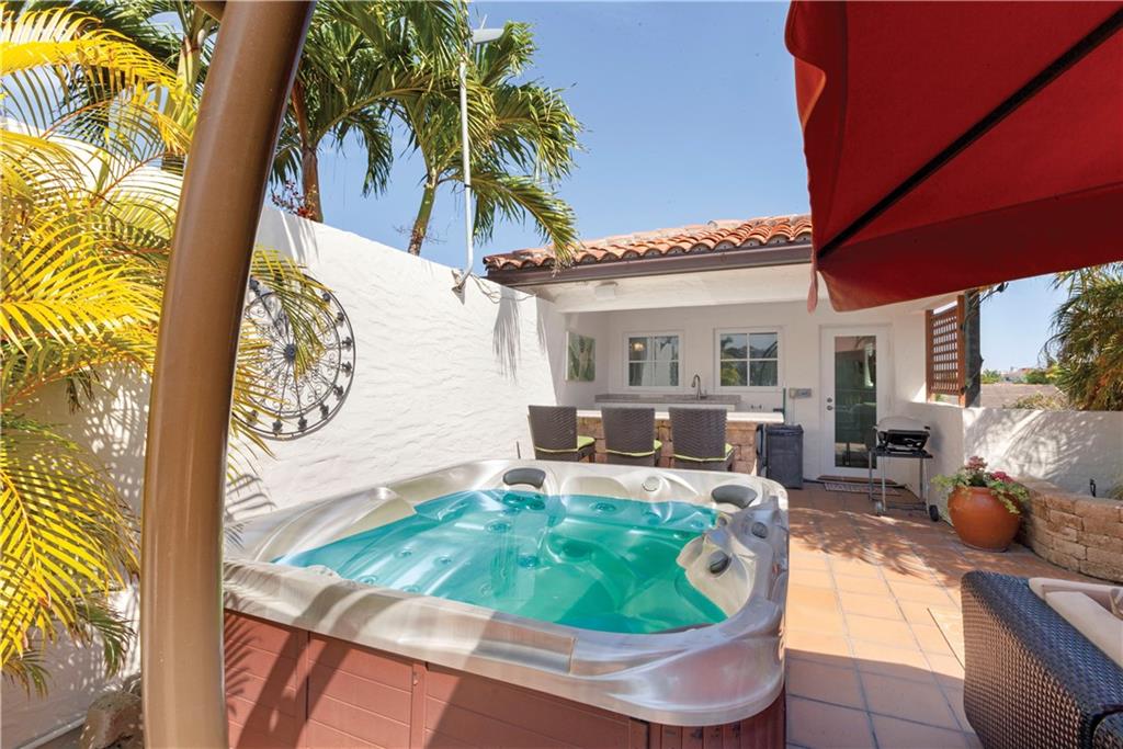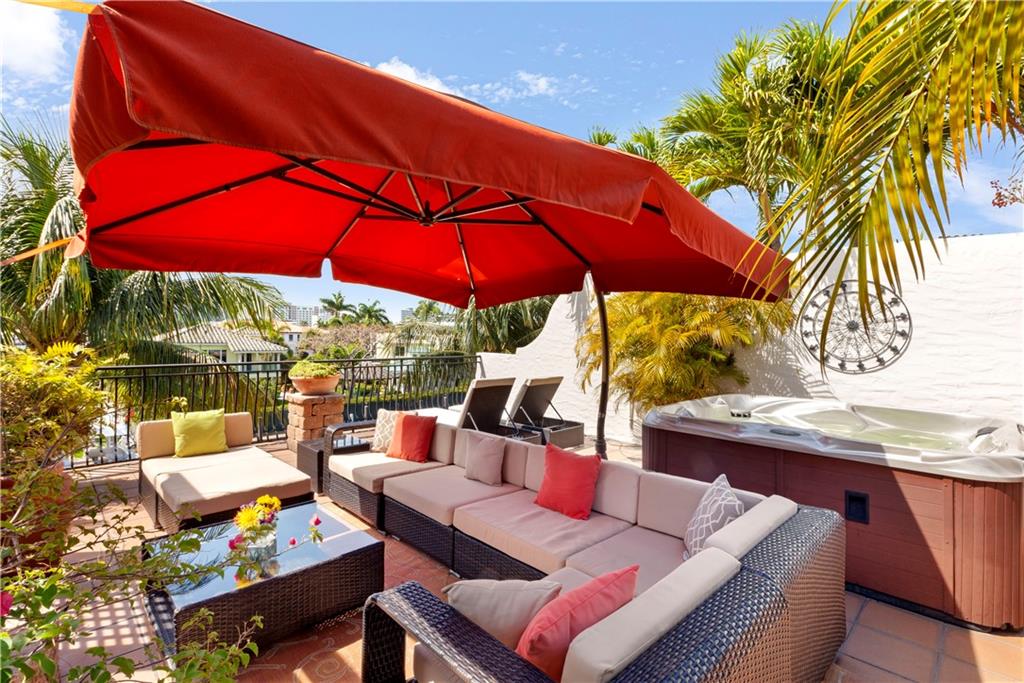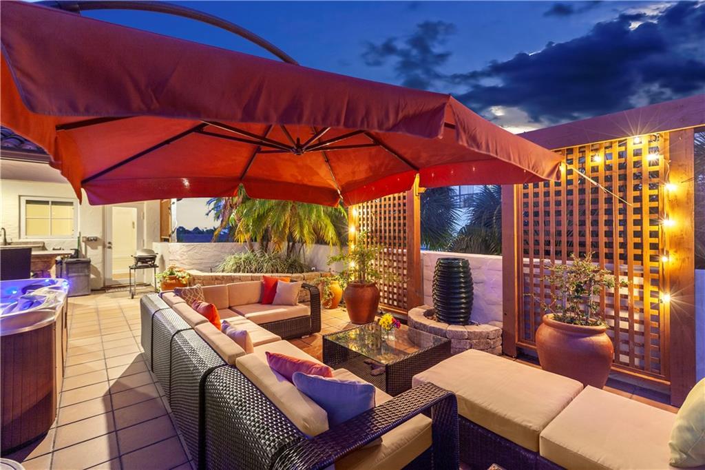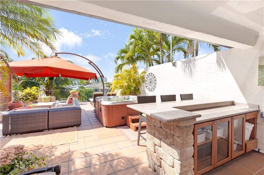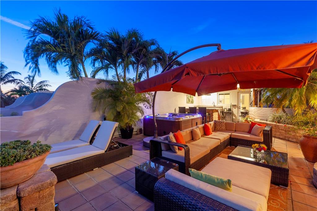 Deep waterfront living at its finest, 44' of waterfront, a lrg turning basin & no fixed bridges. The 1st flr covered & open patio area overlooking the tranquil waterway. Panoramic sunrises & sunsets from the roof top terrace equipped with a bar area, lush tropical planters, a hot tub & multiple seating areas. Rarely available corner unit w/an abundance of natural light & vol ceilings that enhance the open flr plan. Intimate gathering in the formal living & dining area or casual times in the open gourmet kitchen that overlooks the breakfast area & family rm. The spacious primary suite offers 2 custom walk-in closets, lavish bathrm, & pvt. covered waterside balcony. The loft area/home office, 2 guest bedrms, full bath & laundry rm complete the 2nd flr. "Bayview Elementary" Sq ft from IMAPP