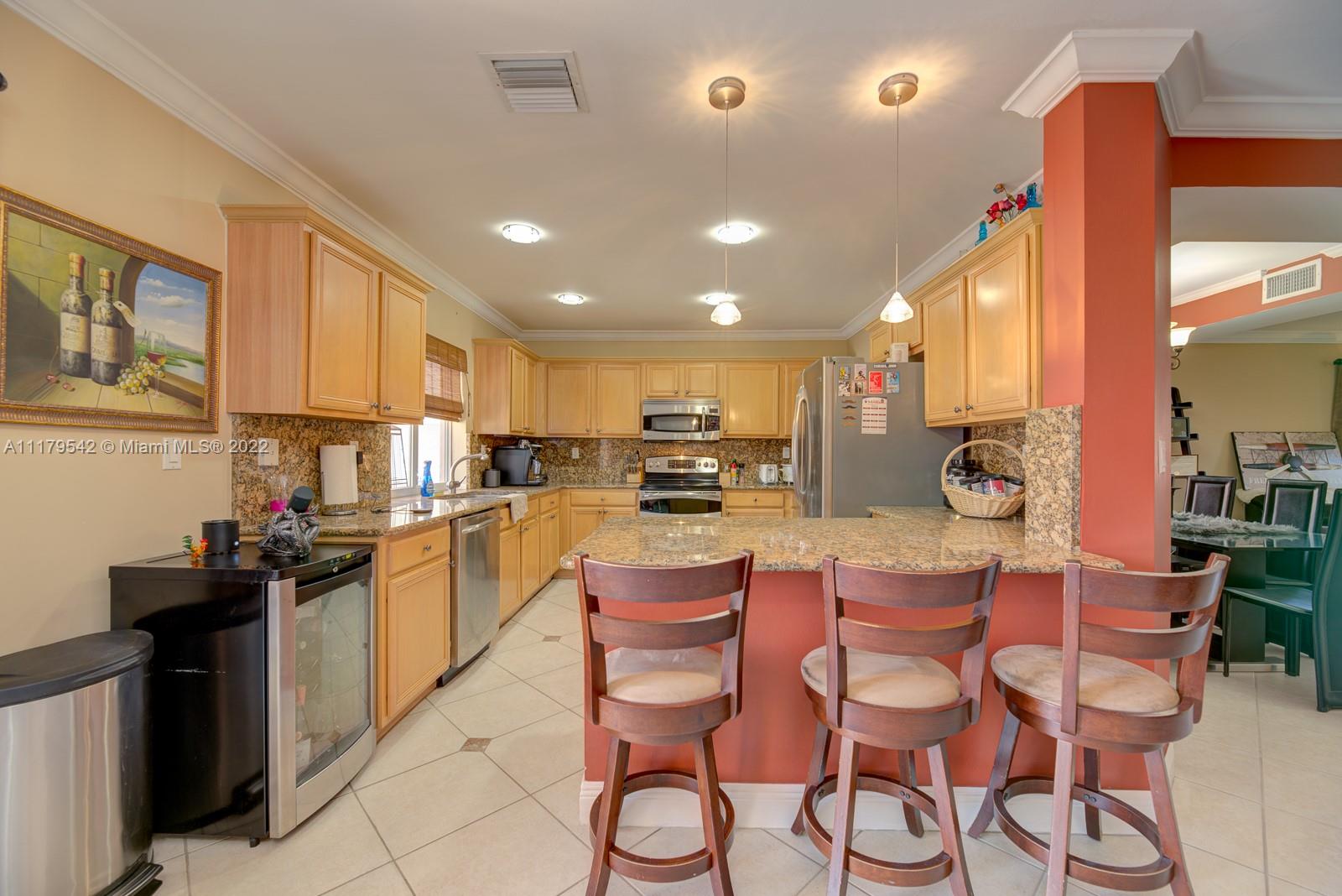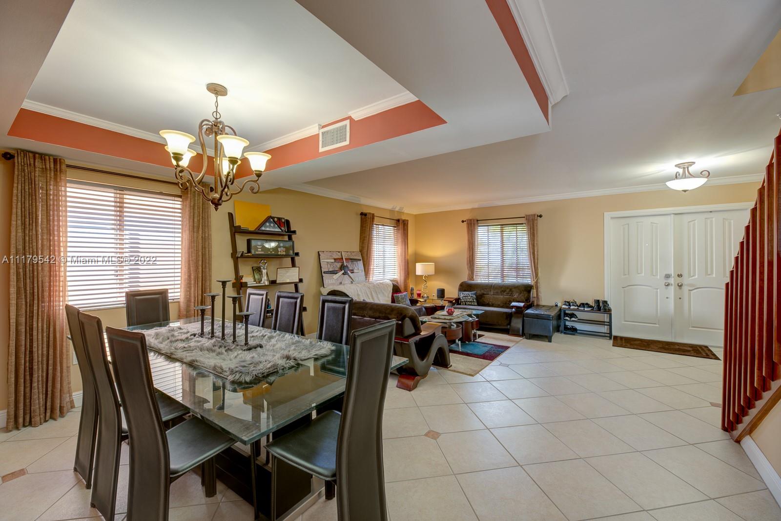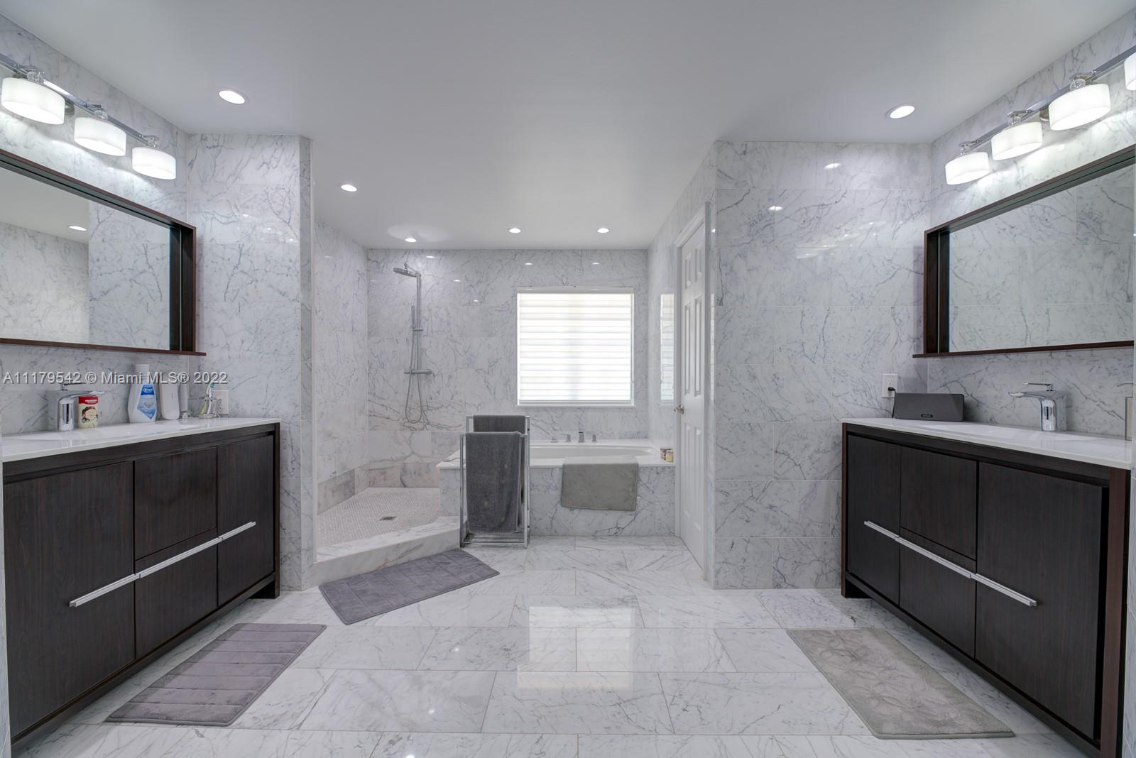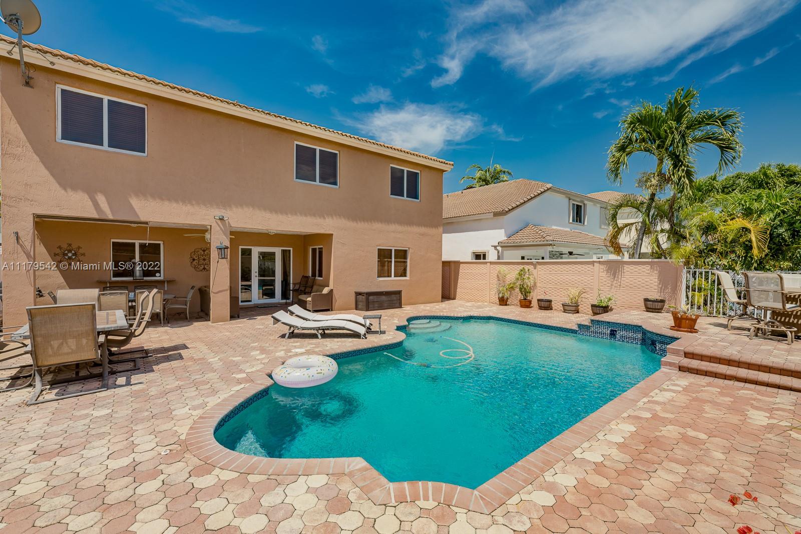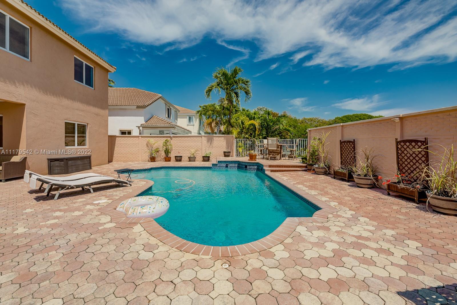 If you haven’t found your home in this current market, look no further. Situated in one of the sought-after communities in Doral, rarely available 5 bedroom/3.5 bath home in Doral Gardens does not disappoint. This two-story home boasts many upgrades — honey-colored wood kitchen cabinets and granite counters, newer appliances; multiple remodeled bathrooms. Ample-sized Master ensuite contains roman tub w/ whirlpool jets, separate roomy shower, his & her sinks; spacious closets. Tiled on first floor; real wood floors upstairs. 2-car garage has plenty of storage w/ custom cabinets. The most remarkable feature - back patio w/ inviting pool, lake view, and enormous custom grill. Generous in size, tranquil, close proximity to all local necessities and desires; this find exceeds expectations.