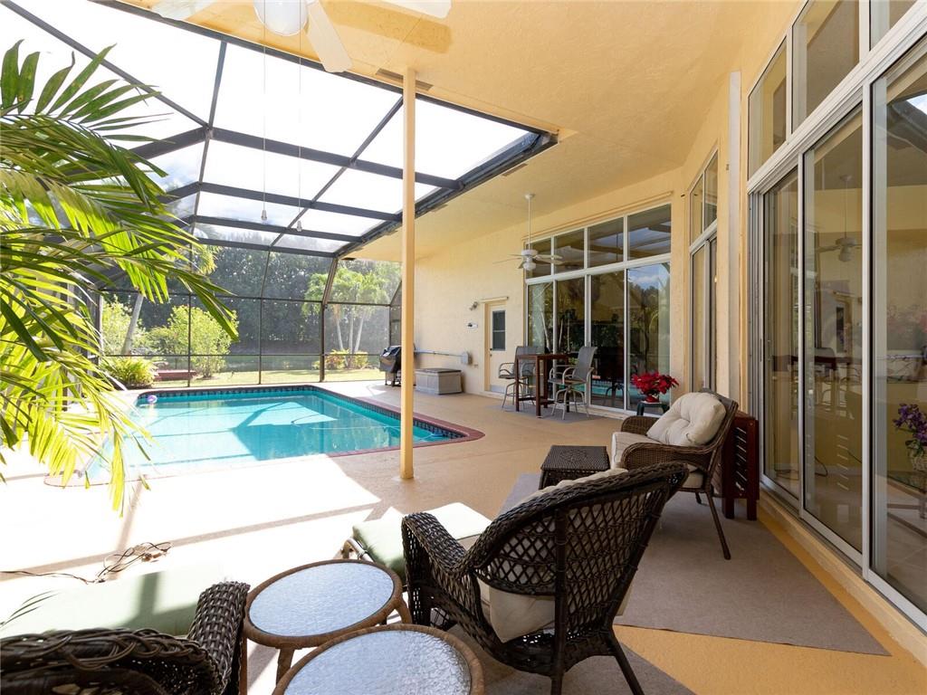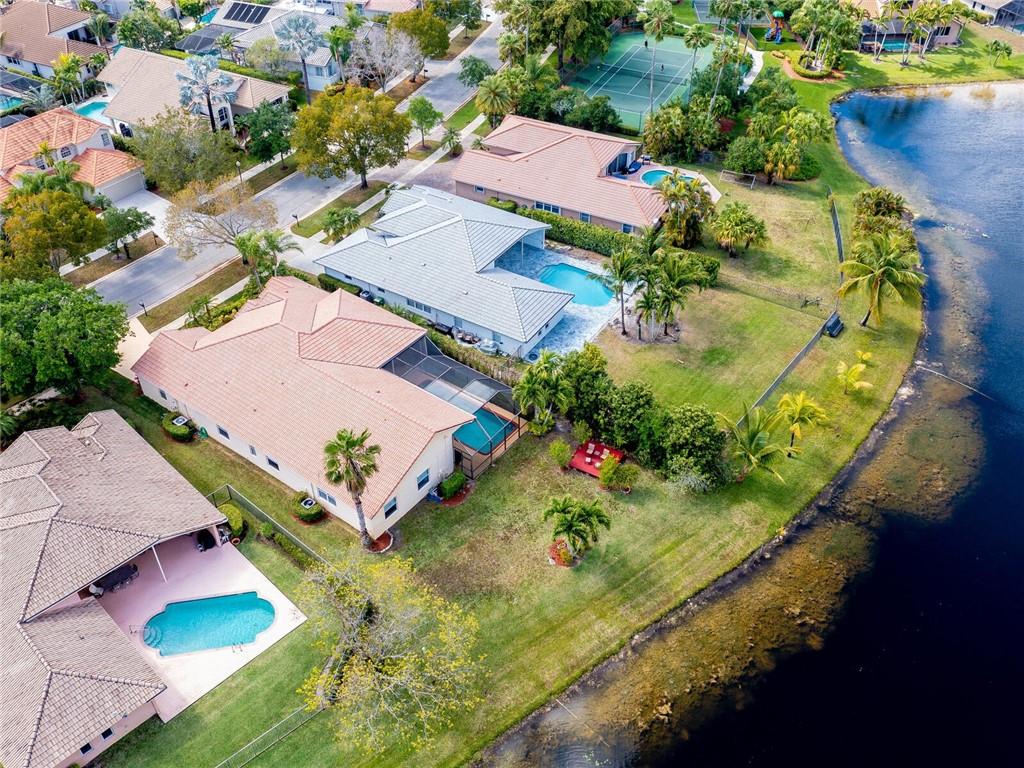 Make This House Your Home!! One of Orchid Island's most popular models! A true 5 bedroom/3 full bath, Expanded "Dominion I" floor plan with almost 3000SF under air and located on an private waterfront lot. Original owners have maintained impeccably. Roof is 14 years old, 2 newer A/C units (2015 & 2018), large living areas with high volume ceilings, open and bright. Fabulous covered screened patio, oversized resurfaced pool that includes a pool vac all overllooking the water. Lot size is 13,024SF with plenty of room to add on. Triple split plan, main bedroom features 2 walk-in closets, bath with double vanities, tub and seperate shower. One secondary bedroom is very large (approximately 11X15). Sprinklers are all off the lake, hurricane protection and a big backyard for the kids.