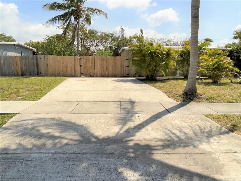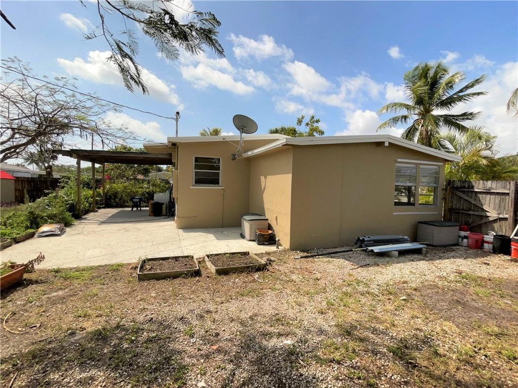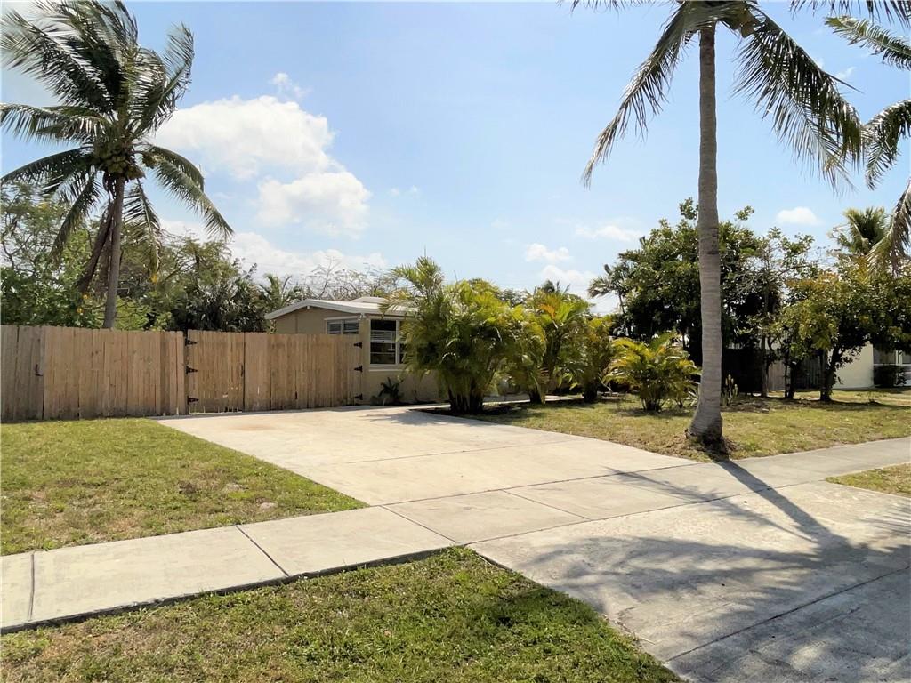 Move-in ready home just west of US1. The backyard is huge and lush with two mature royal poinciana trees and lots of vegetation. Three good coconut palms. Full privacy fence. A pet paradise. Covered patio with large additional slabs for when you want to expand. Large shed. Interior and exterior just painted. Hurricane shutters for all windows provide both security and possible insurance discount (be sure to ask insurance agent). Great area, wonderful neighbors. No HOA. Close to Hillsboro Blvd for beach access and nightlife. Walking distance to Walmart, Target, and restaurants. Some new appliances. Central AC, good roof, some updating inside. Plenty of parking. Florida Room Could Be Converted to 3rd Bedroom. Walk to all three Schools!