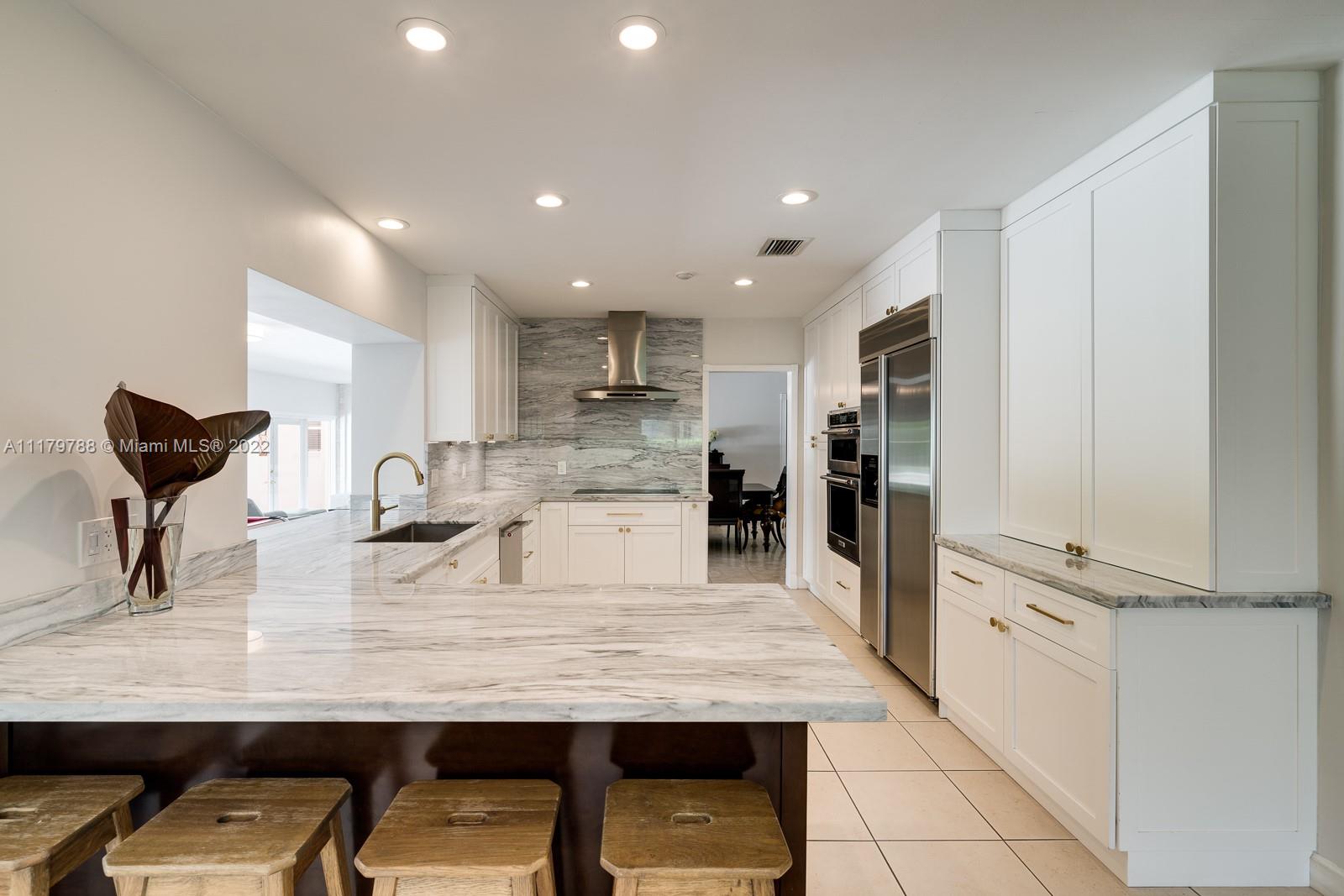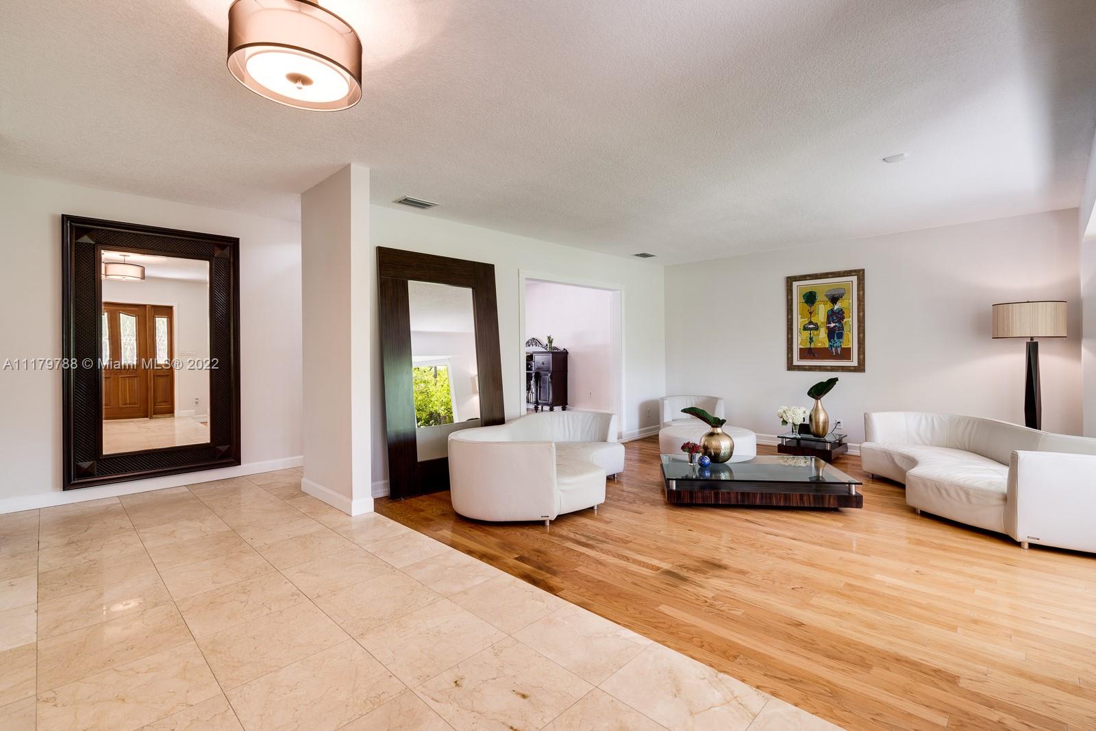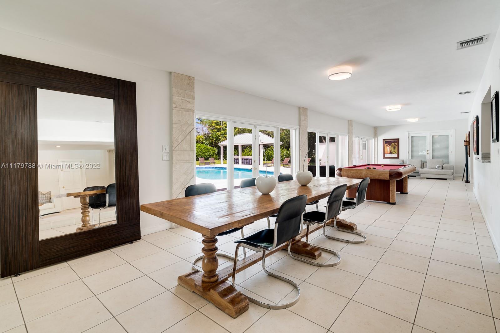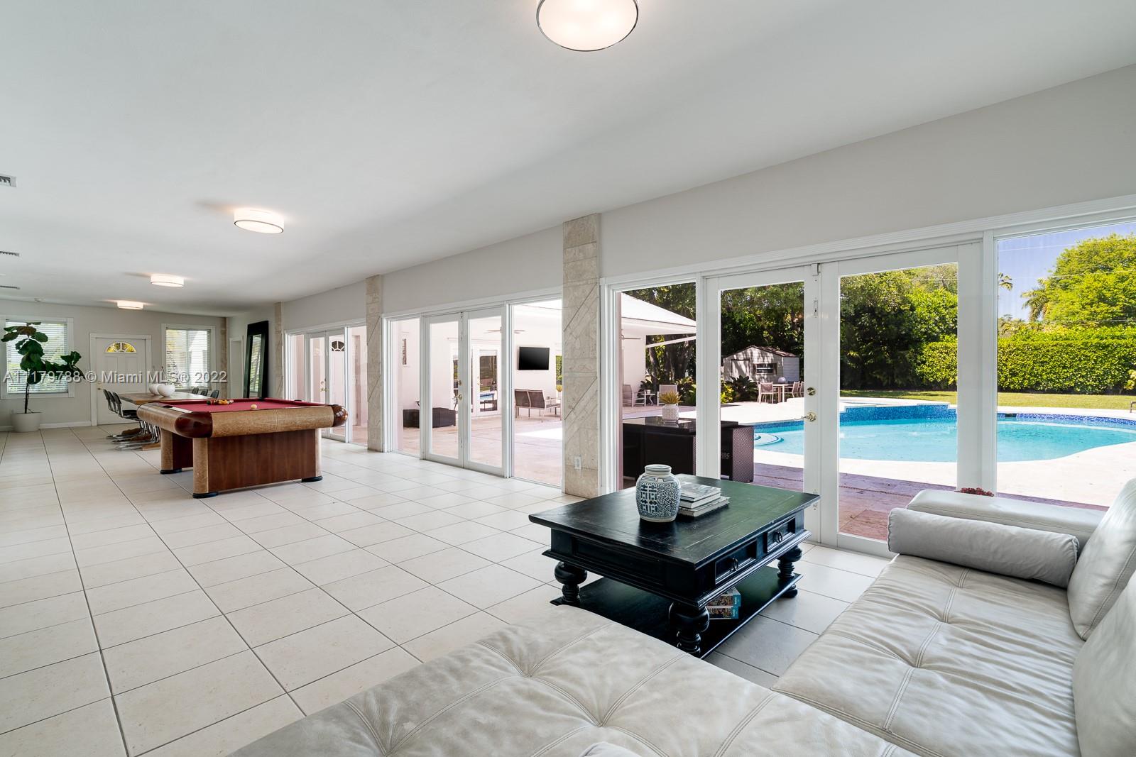 You will be charmed the moment you arrive at this wonderful home which sits on a magnificent and lush 37,156 sq ft property in highly sought-after N Pinecrest. This 6 bedroom / 4 bath split plan has an updated kitchen that opens to the family room. The formal living, dining and Florida rooms are all spacious and light-filled. French doors lead to large terrace with pool, a covered gazebo with wet bar & extensive manicured gardens - perfect for entertaining! The private primary suite includes two office / sitting areas and a substantial master bath & walk-in closet. Other special features include guest suite w/ separate entrance, gated 2-car garage, cabana bath & gorgeous oaks. Don't miss this unique opportunity that has infinite potential!