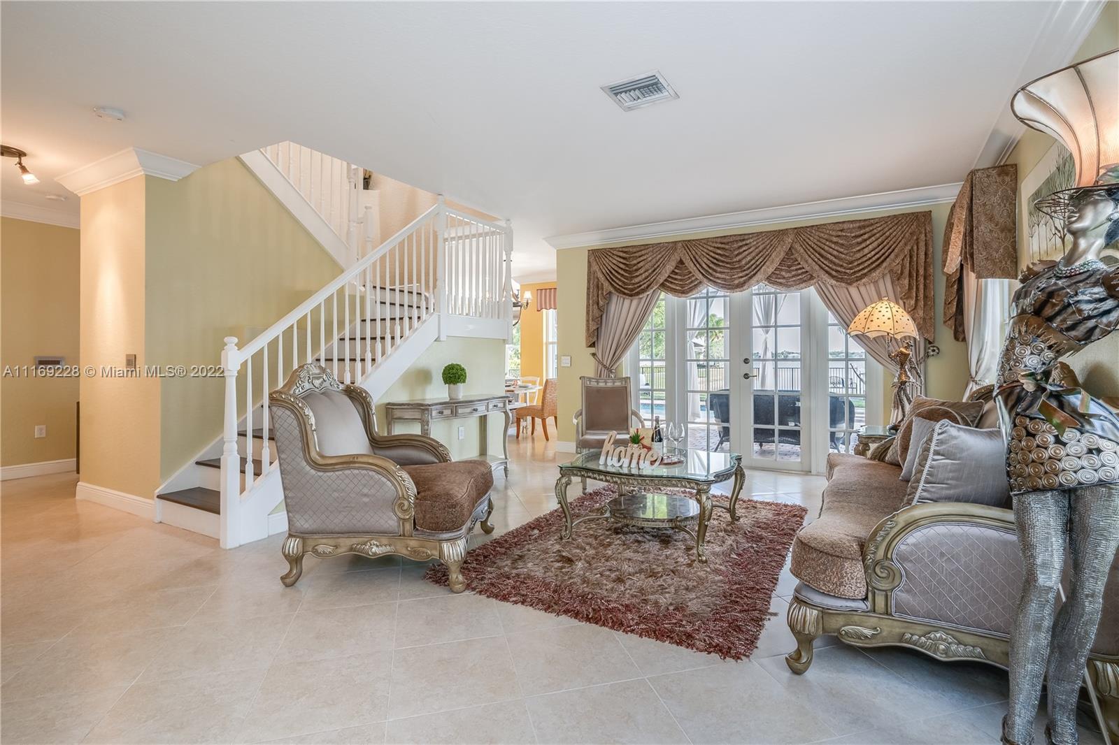 TSFT is proud to present the "Laurena". This magnificent Miramar residence sits on one the most premier lots inside the luxurious community of Sunset Falls. A massive and well distributed floor plan, this property offers nearly 4,000SF of living space and a jaw dropping waterfront lot. Welcome inside and be greeted by tons of natural light and stylish French patio doors over looking the beautiful Sunset Lake. Make your way onto the open concept kitchen featuring stainless steel appliances and wood cabinetry. One full bedroom and bathroom are located on the ground floor. Upstairs you'll find bamboo flooring and a stylish owner's suite. Built by GL Homes in 2007, Sunset Falls offers top tier amenities including a resort-style swimming pool & spa, tennis & basketball courts and a clubhouse.