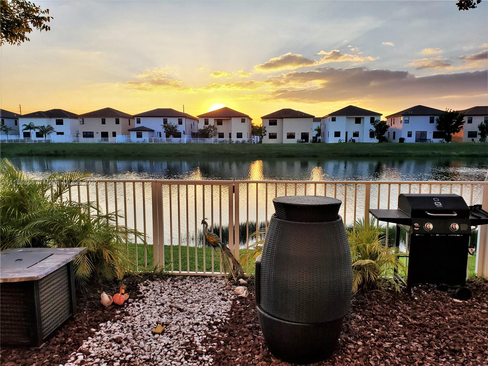 Beautiful home on the lake in the gated community of Bonterra. Come live in this 3 bed 2 1/2 townhouse with peaceful view of the lake and breath taking sunsets. Entertain and enjoy the fenced backyard, ideal for kids to play, gatherings, relaxation and more! The house has very elegant and modern features including, SS appliances, wood cabinets, washer and dryer on the second floor for your convenience. Master bedroom features double walking closets, dual sinks on master bath. Spacious second bedroom with walking closet. It has an attached garage, and driveway for 2 additional cars. The state of the art club house, has a full gym which include spinning room, a kids playroom, expansive pool, lounge chairs, a party room and more. Community with 24hour guard on gate.