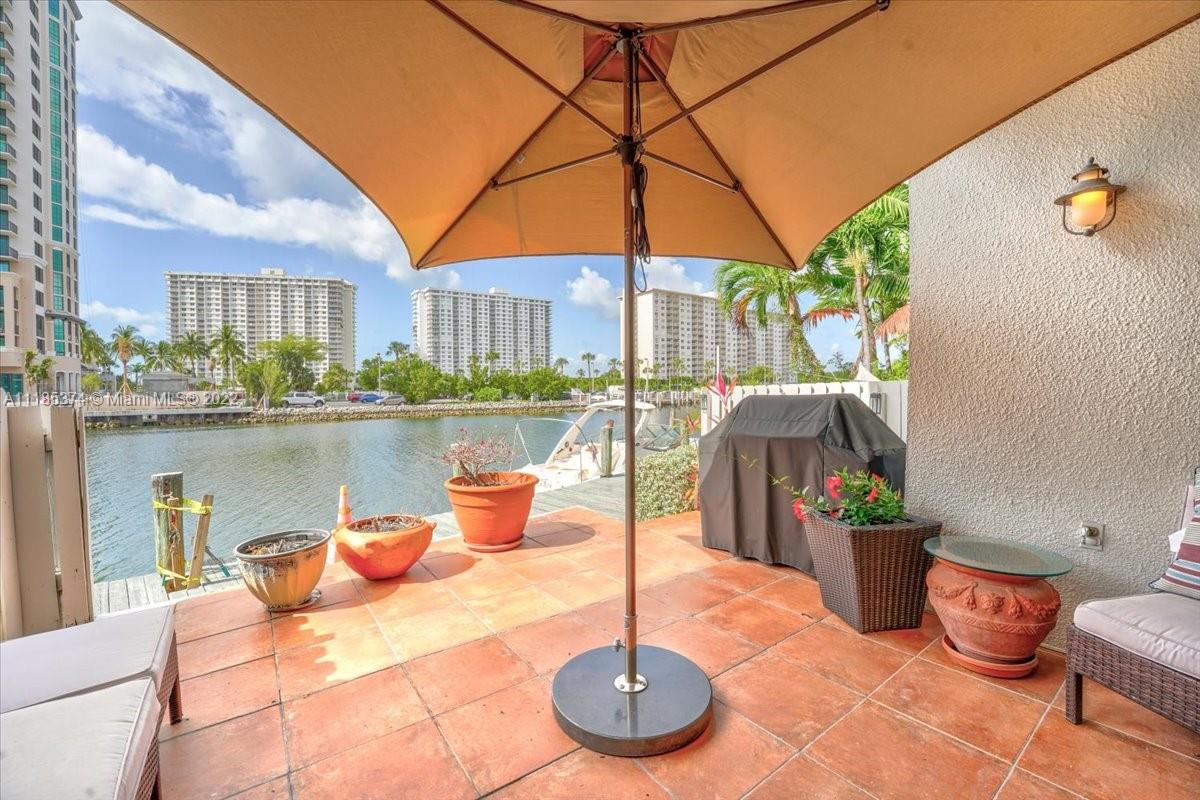 BACK ON THE MARKET. Buyer's financing fell through. A beautiful waterfront townhouse on a private Island in Sunny Isles Beach. 3 bedrooms, 2.5 Bathrooms plus Office/Den with skylight, Hurricane-proof doors and windows. Deeded boat slip, Ocean Access. Scenic 1 mile walking/jogging path along the canal. Great for entertainment and BBQ with spectacular Bay Views! Lots of amenities -- 4 tennis courts, racquetball, basketball court, 2 heated pools, kids play area. Full time management team on site. Walk to the beach just across Collins Ave. Sunny Isles schools are one of the best in Miami. This property will not last.