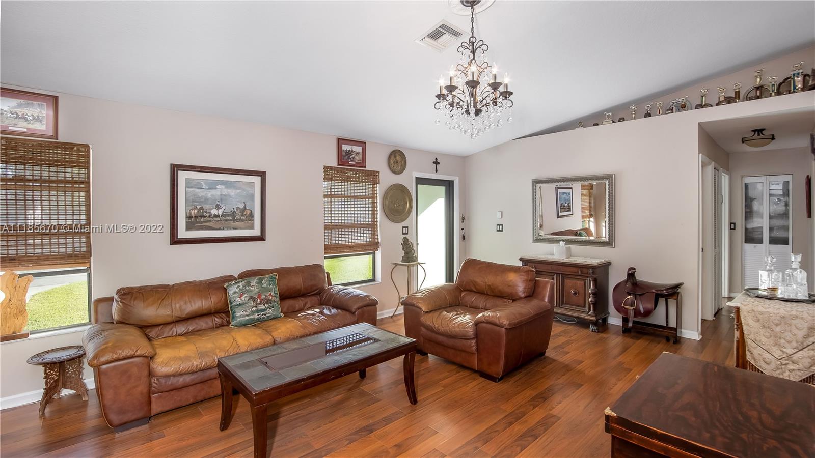 Rare, charming,country style home awaits you! Upon entry you will be welcomed by a spacious living room ideal for family gatherings or cozy movie nights. The home has generously sized rooms including master with recently remodeled en-suite. As you walk out of your oversized screened terrace,your newly constructed top of the line barn greats you. Barn features matted open aisles for air flow,3 stalls with large door openings to paddocks,large wash stall with 360 degree overhead hose,large feed room with plenty of storage,temperature controlled tack room, and much more! Enjoy your very own 15k sq ft private riding area. Conveniently located near 150 acre preserve which has equestrian trail,nature trail,picnic area, and more. Minutes away from major highways, A+ schools,shops,and restaurants.
