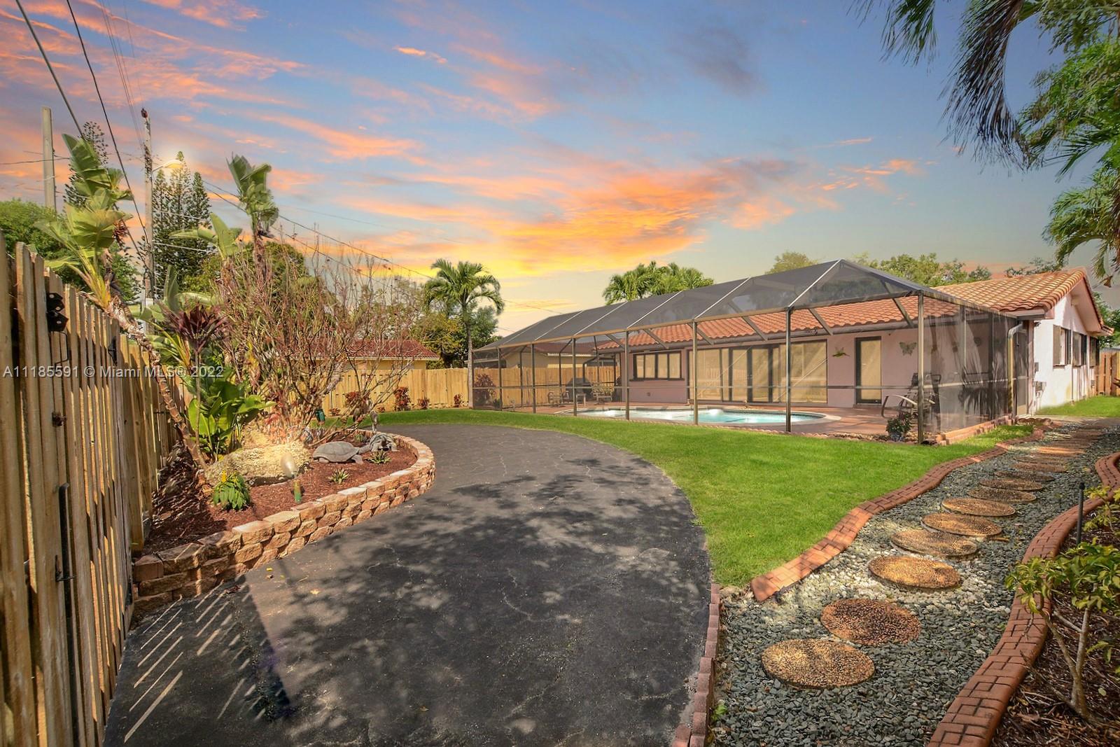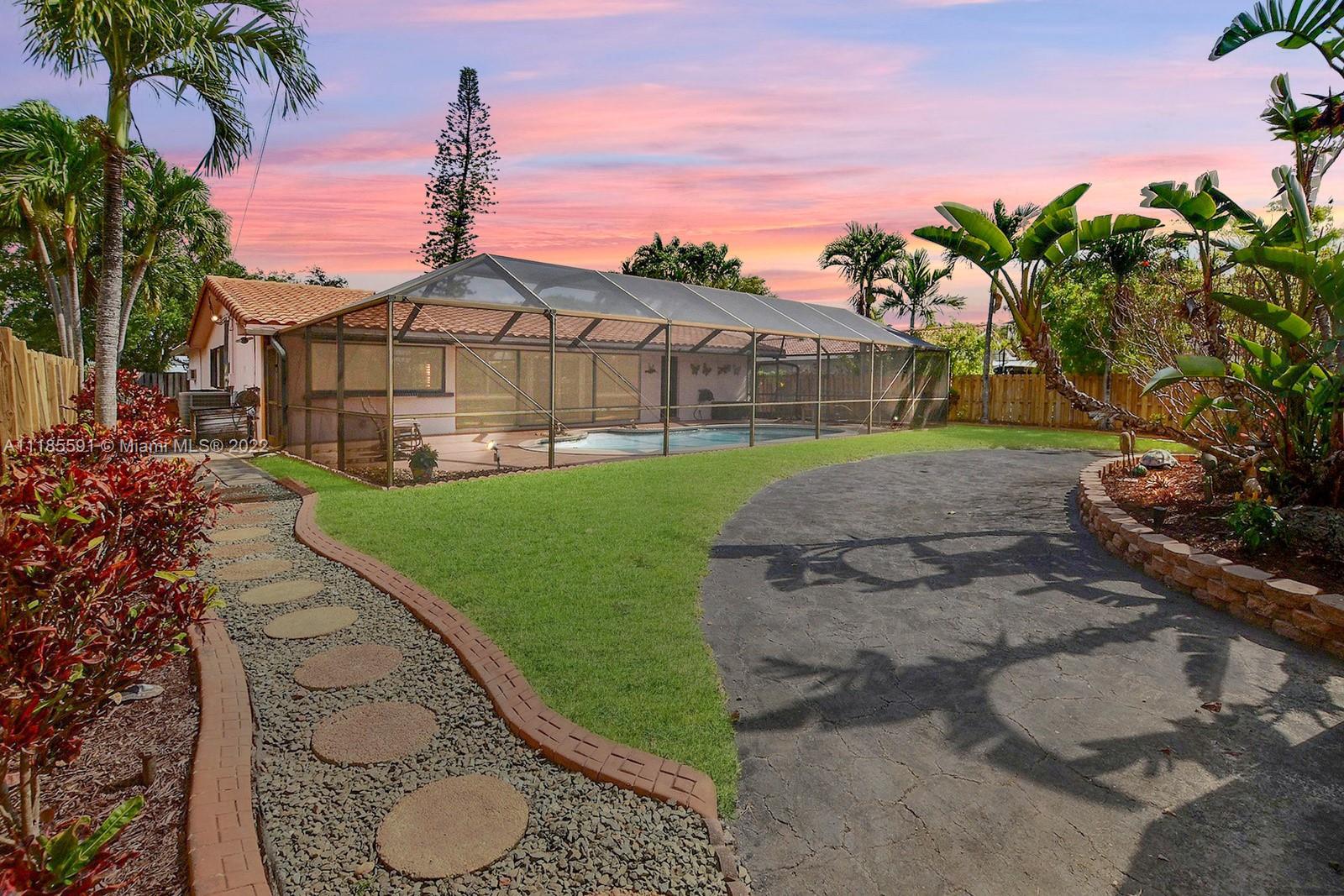 FABULOUS 3 BED, 2 BATH POOL HOME W PRIVATE COURTYARD ENTRANCE IN HOLLYWOOD HILLS. ENJOY POOL VIEWS THROUGH A FULL WALL OF FLOOR TO CEILING GLASS. SPECTACULAR CHEF'S KITCHEN HAS REAL WOOD CABINETS, GRANITE COUNTERS, ISLAND, STAINLESS APPLIANCES, GAS RANGE, DOUBLE WALL OVEN, CUSTOM HOOD, WINE FRIDGE, TRAY CEILING & BIG WINDOW W PASS-THROUGH TO THE PATIO. SPACIOUS PRIMARY SUITE W ENSUITE CABANA BATH, GLASS ENCLOSED SHOWER & CUSTOM VANITY. BEAUTIFUL FLOORING, PLANTATION SHUTTERS, CROWN MOLDING, RECESS LIGHTING & CEILING FANS. LARGE SCREENED PATIO W A SPARKLING POOL & PRIVATE REAR ACCESS TO A CIRCULAR DRIVEWAY, PERFECT FOR BOAT & RV PARKING. IMPACT WINDOWS & ACCORDION SHUTTERS, DIRECT GAS LINE FUELS DRYER, WATER HEATER & GENERATOR, LAUNDRY ROOM W SINK, 1 CAR GARAGE, NO HOA, CENTRAL LOCATION.