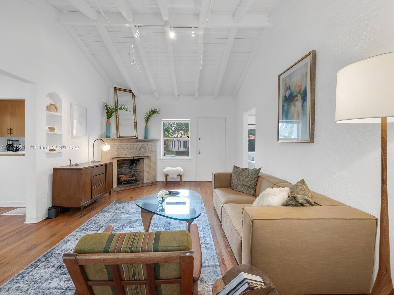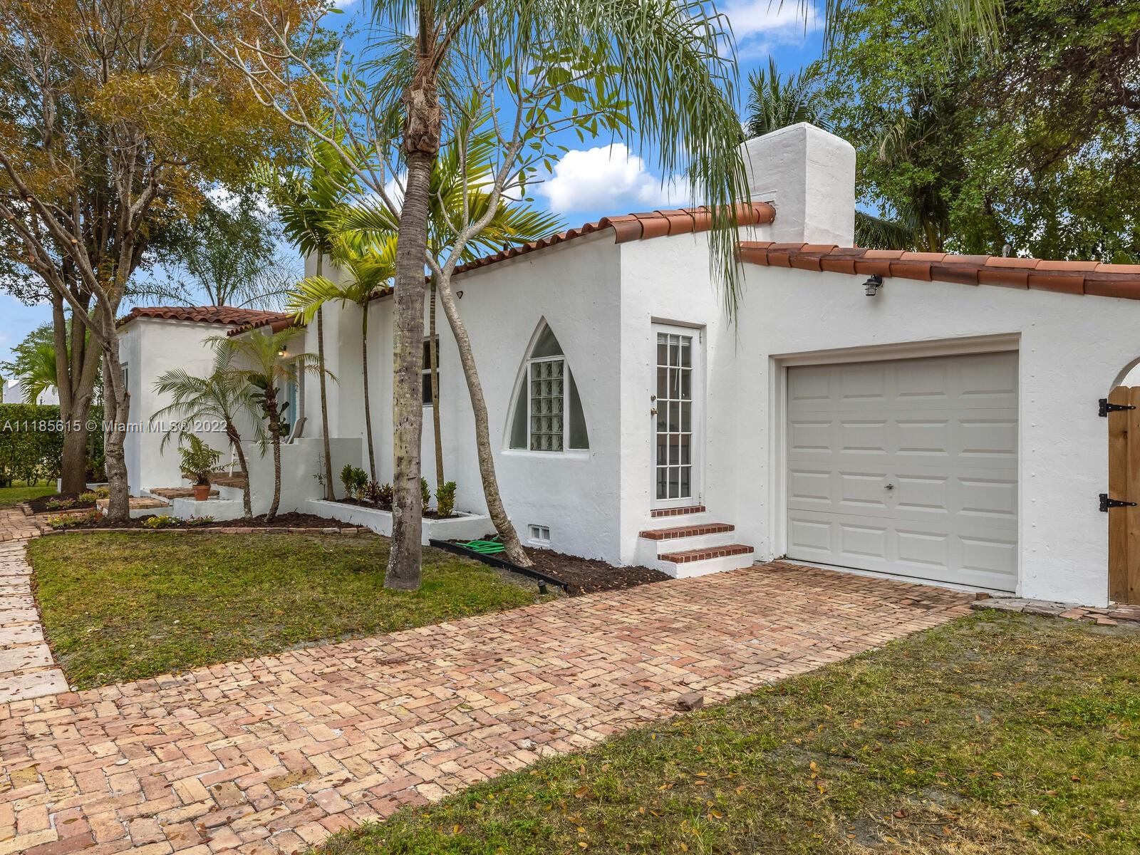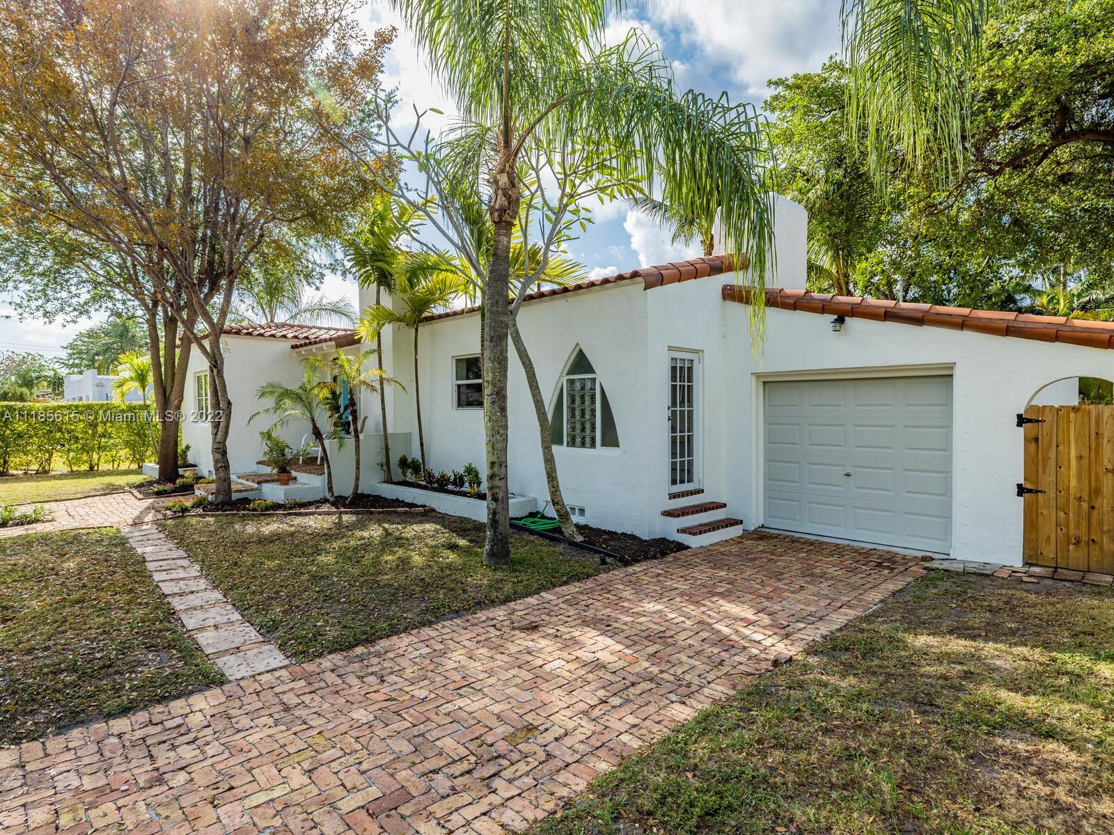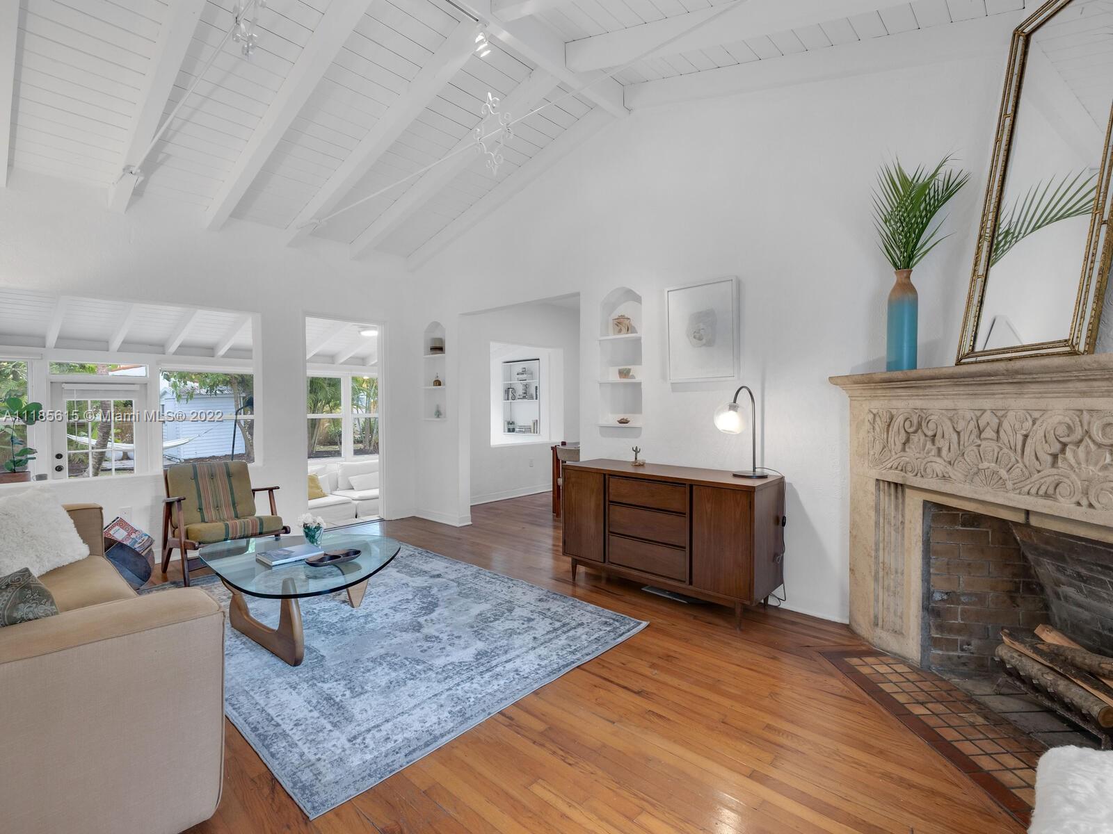 Welcome to Blossom House, the Majestic Mini Manor and Magical Gardens! Delight in vaulted living with conical soaring fireplace and hand-carved “blossoming flower” limestone mantle- a regal touch! New kitchen with hip “architectural plywood” cabinets plus spacious dining are great to create and savor dinner with friends and family. Bright, window-lined elongated media room opens to expansive, fantastic rear gardens with Napa Valley style deck to lounge, grill and dine! Enjoy lush landscaping of your home-escape with room for a pool. Split bedrooms— two on one side and a third plus bath on other. Bonuses: impact windows-doors, bright mini-office, hardwood floors and garage, all in a great location just a half-block to fab downtown Miami Shores restaurants and shops. Let your life blossom!