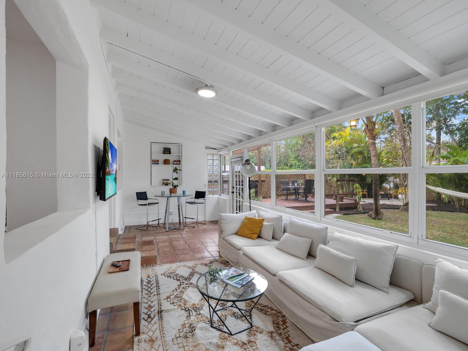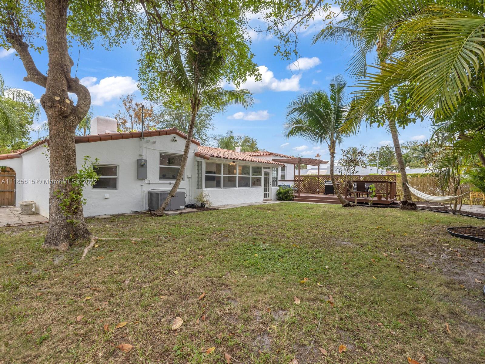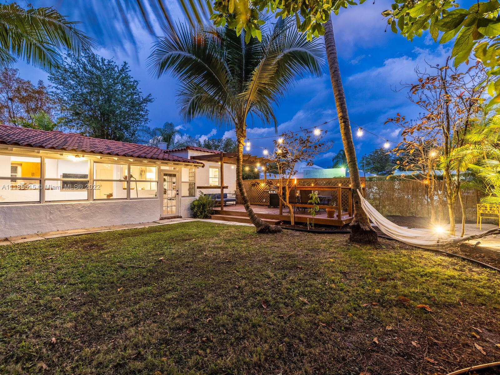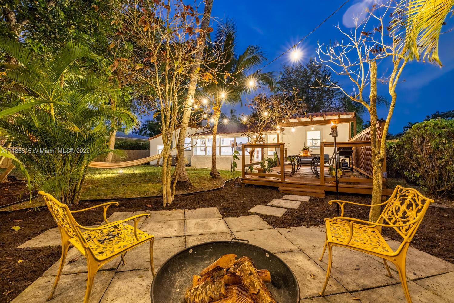 Welcome to Blossom House, the Majestic Mini Manor and Magical Gardens! Delight in vaulted living with conical soaring fireplace and hand-carved “blossoming flower” limestone mantle- a regal touch! New kitchen with hip “architectural plywood” cabinets plus spacious dining are great to create and savor dinner with friends and family. Bright, window-lined elongated media room opens to expansive, fantastic rear gardens with Napa Valley style deck to lounge, grill and dine! Enjoy lush landscaping of your home-escape with room for a pool. Split bedrooms— two on one side and a third plus bath on other. Bonuses: impact windows-doors, bright mini-office, hardwood floors and garage, all in a great location just a half-block to fab downtown Miami Shores restaurants and shops. Let your life blossom!