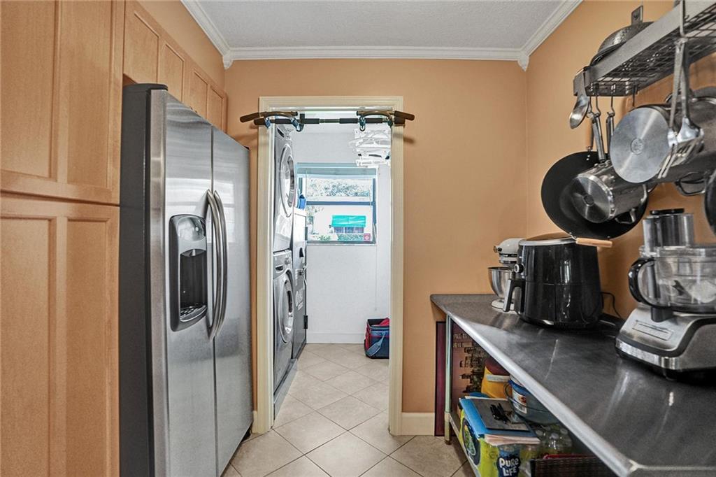 Nicely renovated 2 bedroom 2 bathroom home. Updated kitchen with Stainless Steel Appliances and plenty of storage. Combined dining and living room area great for entertaining. Side bar has wine and mini fridge. Master bedroom has a gorgeous custom closet and a bathroom that is just as lovely. Updated Shower with Digital shower controls and remote access. Laundry room with stackable full size washer and dryer. Back patio is screened in which is perfect for entertaining. No backyard neighbor, the community wall allows for plenty of privacy. Walking distance to synagogues and house of worship. Clubhouse and pool. New Roof: 2020 New A/C: 2020.