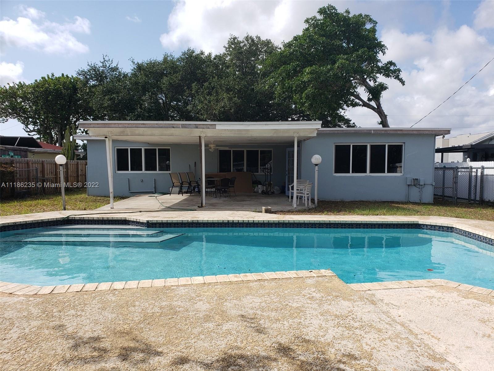 Nice 3bed 2bath home that has been enjoyed since the 1960th by the owner. Roof 2020. Could easy be turned into a 4bedroom. Has nice updated kitchen with granite counters, newer bathroom and hurricane windows. Nice Pool in backyard with a huge lot. Drive way in backyard from Alley.