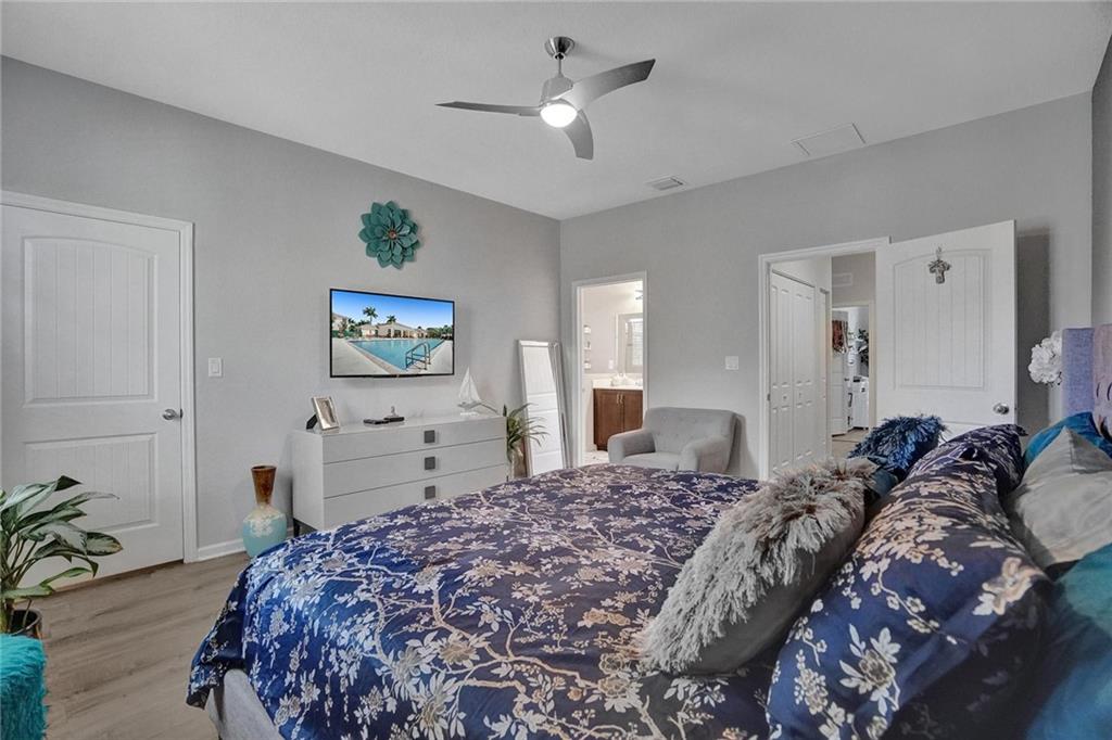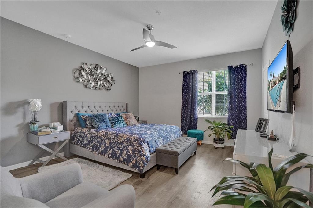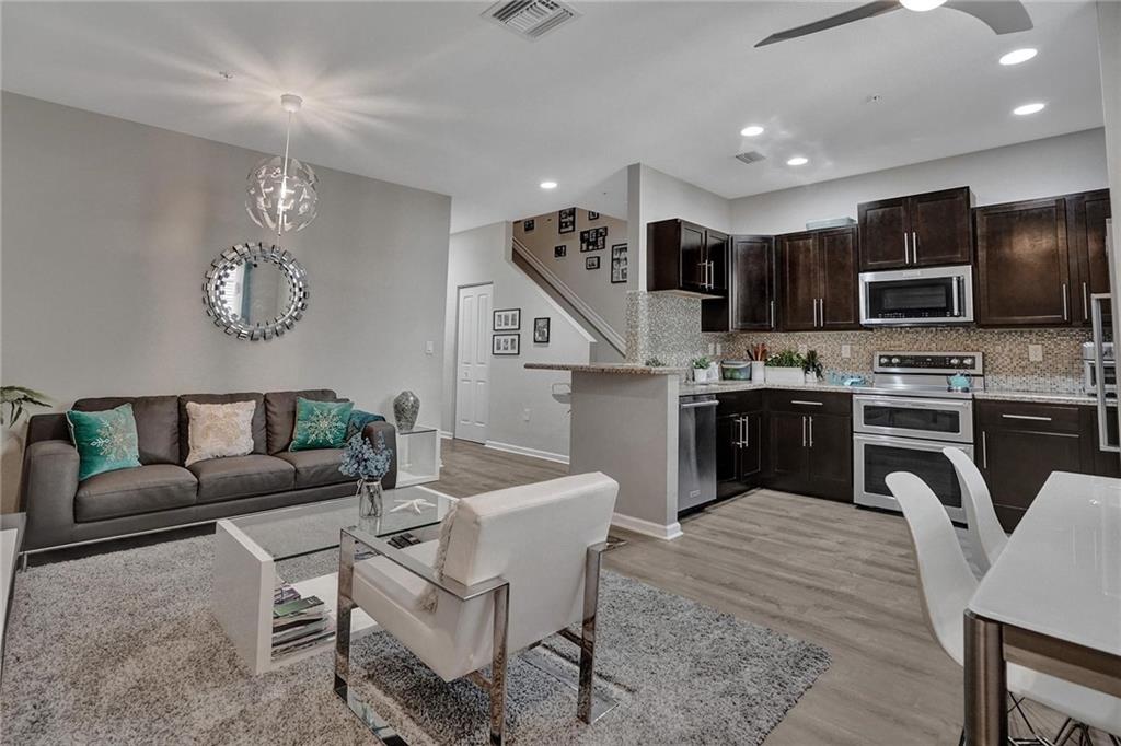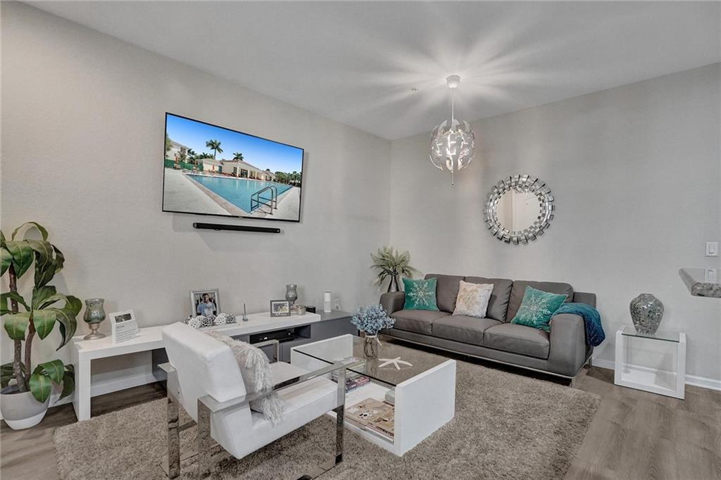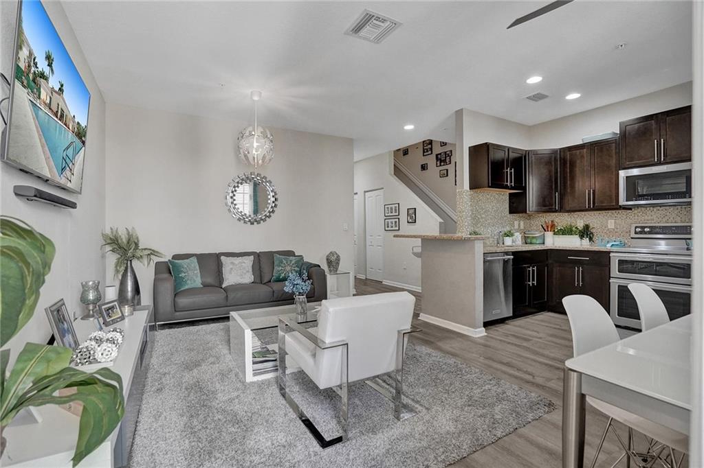 Desirable 3 bedroom, 2 1/2 bathroom corner unit townhouse in Cypress Grove with open floor plan perfect for entertaining. Gourmet kitchen with granite counter tops and Stainless Steel Kitchen Aide appliances. 3 bedrooms and laundry room upstairs. High impact windows and doors. Wood look flooring throughout. Large master suite with walk-in custom closet and upgraded master bathroom. LG HE washer and dryer. 1 car garage with epoxy floor finish. Enjoy the tropical grounds that include a jogging/walking path surrounding the lake, or enjoy the pool, gym, or clubhouse. Security guard on premise at this community located in close proximity to the beaches, shopping, nightlife, restaurants and schools.