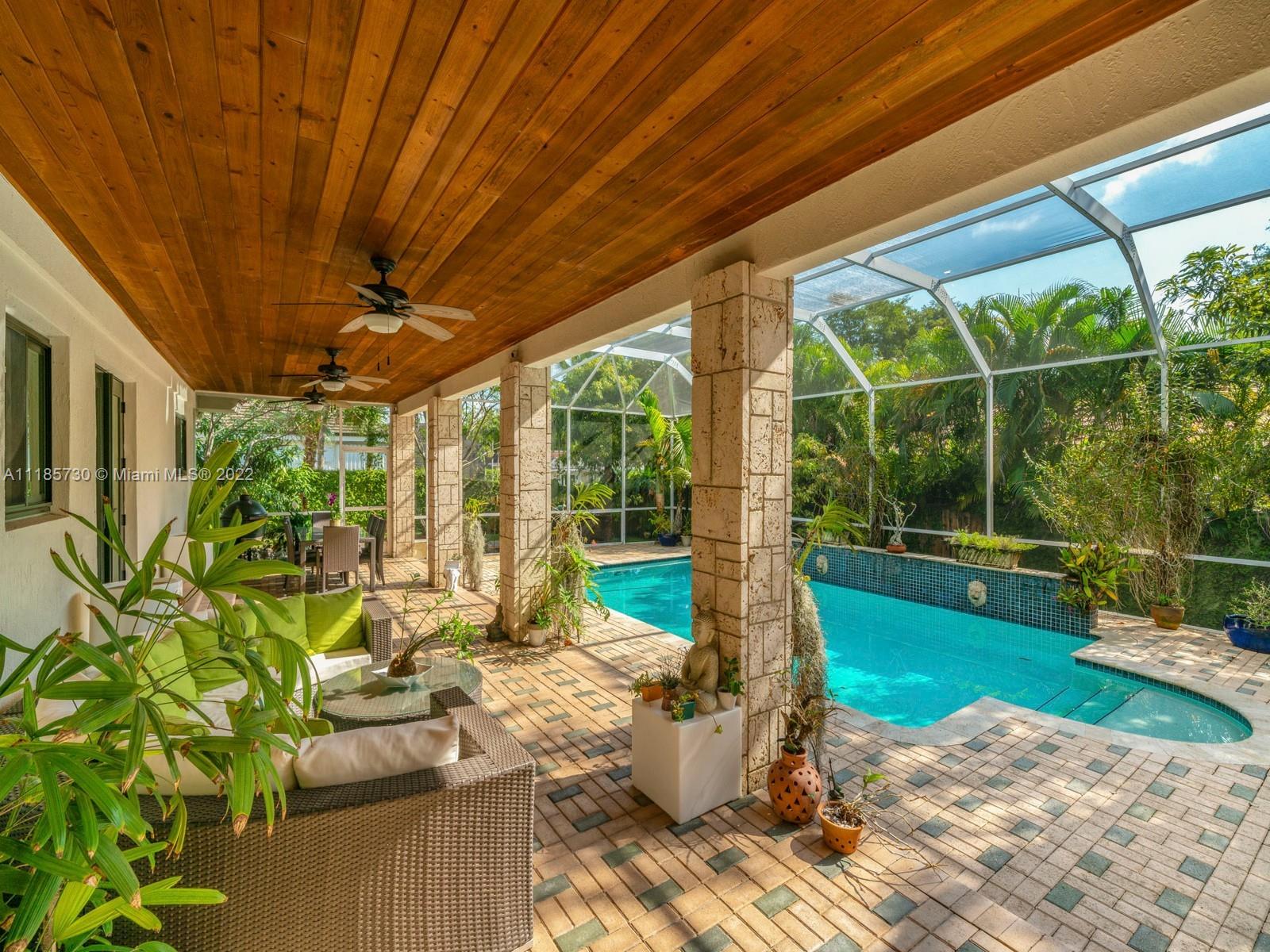 Gorgeous and completely renovated one-story home in highly sought-after Pinecrest by the Sea. An exclusive guard gated community offering a neighborhood park, pedestrian friendly roads, top municipal services, and an excellent voluntary HOA. Elegantly renovated move in ready home that includes 5 bedrooms and 5 full bathrooms plus home office/den and converted garage. Home features elegant interiors, spacious living areas, formal living and dining, family room adjacent to an updated kitchen with quartz countertops and stainless-steel appliances overlooking a beautiful pool surrounded with luscious landscaping. Features include impact windows and doors, travertine floors, saltwater pool, and Tesla charger. Beautifully elevated and oversized corner lot. Elite schools nearby