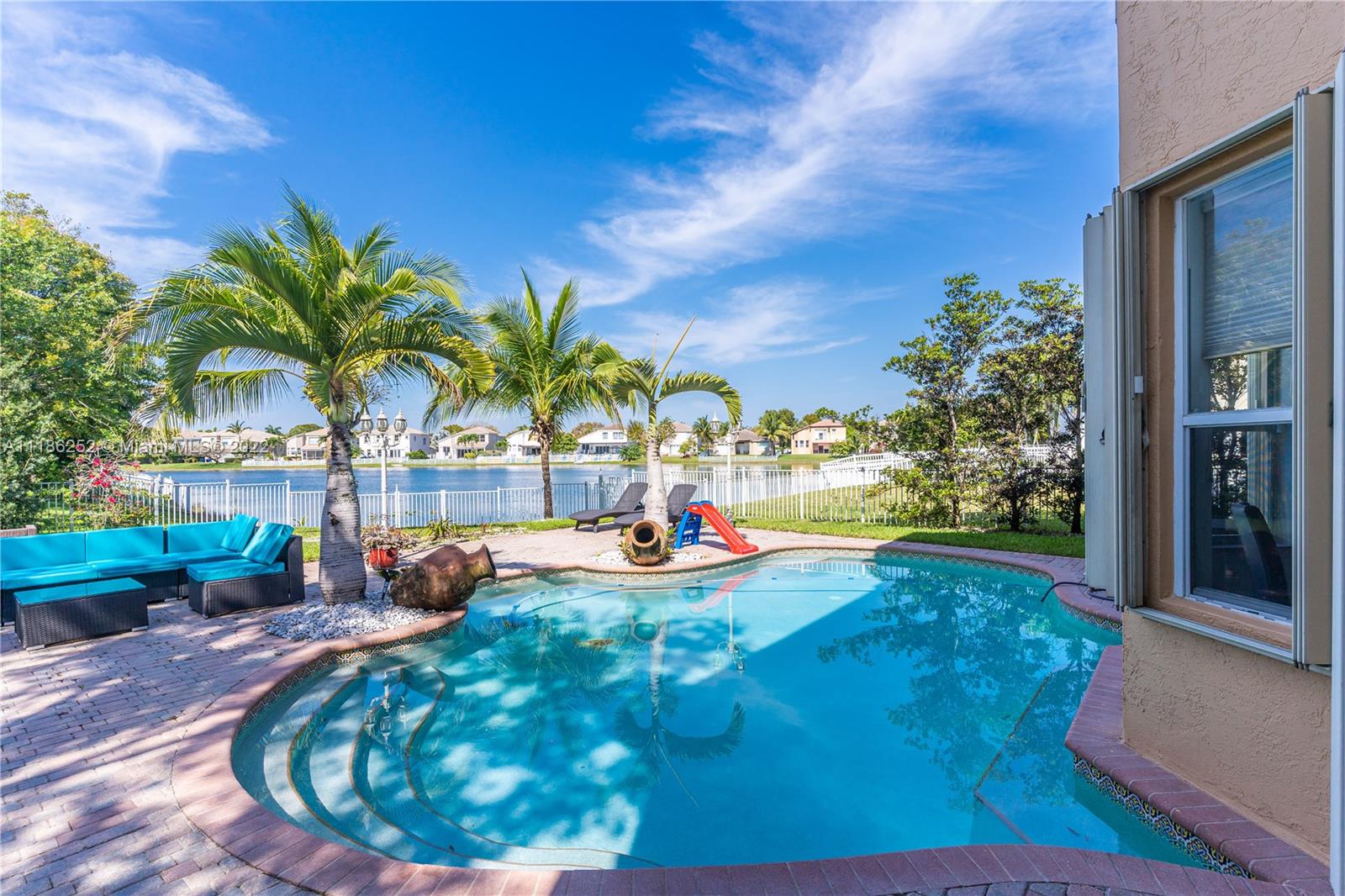 Beautiful Lake Pool Home in the beautifully maintained community of Riviera Isles !!! This amazing home has 4 bedrooms 2 1/2 PLUS a loft. Heated Pool-Large backyard - 9,559 sq ft Lot .Your Personal Tropical Oasis retreat for those long days at the office. Open floor plan with One bedroom on the 1st floor(Great for having family or friends over). Huge Master bedroom with Views overlooking the lake and pool, Crown molding, Accordion shutters, Walk out balcony in the loft area,Wine rack and so much more.Community pool-Basketball courts and more.Two A/c units were replaced in 2018 ,Recently changed tank less water heater and new pool pump.Property is immaculate .24 Hr Security Showing will only be done on Saturdays by appointment only 12-3 Pm Don't miss out on your own private oasis