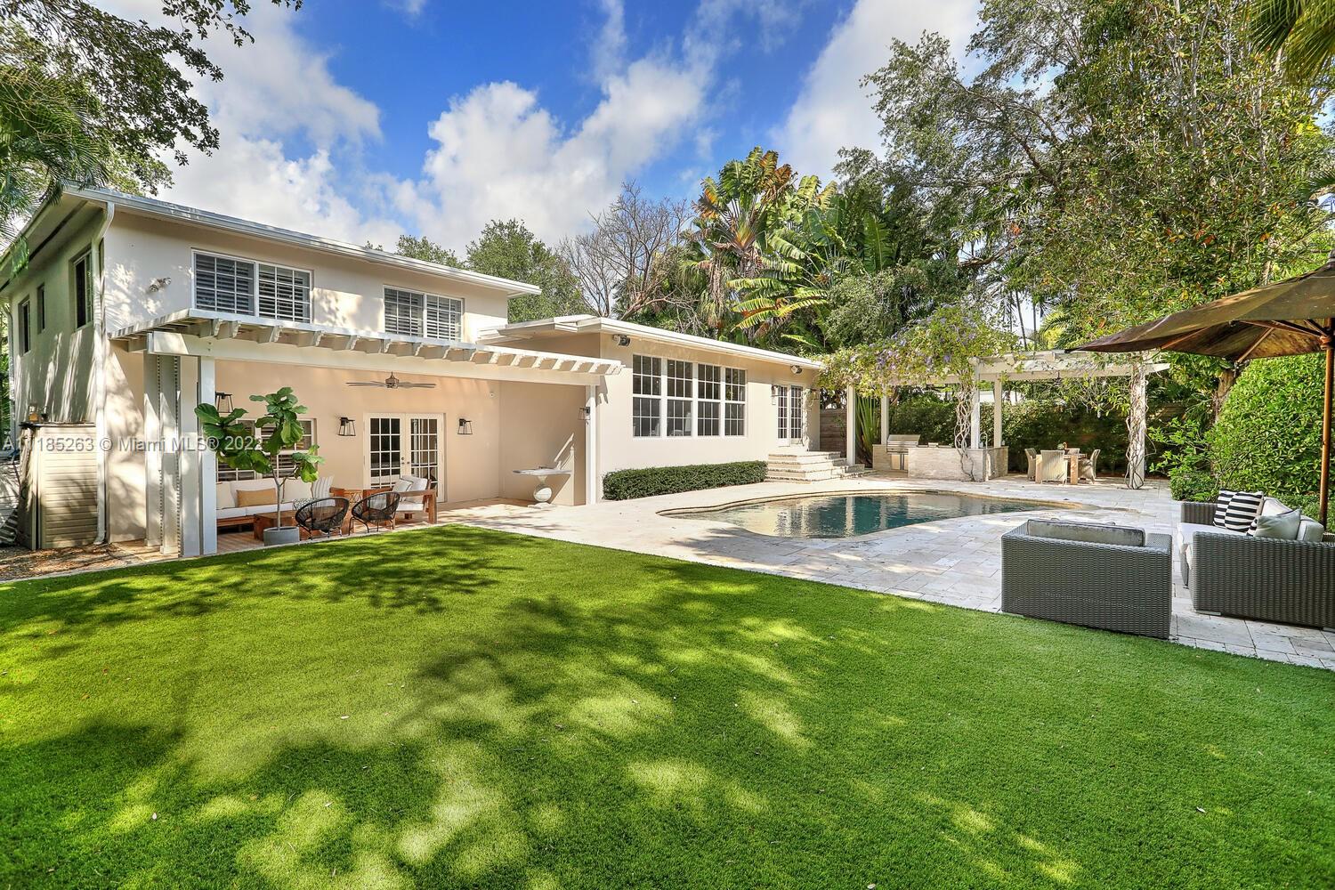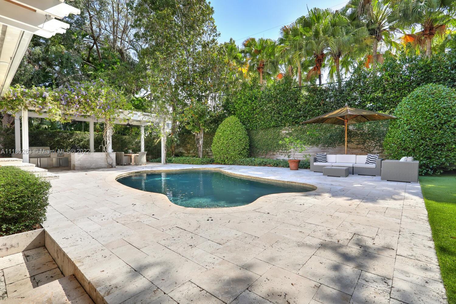 Lovely, walled & gated home on a quiet, tree-lined street just 1 block from Merrie Christmas Park. Light-filled living spaces feature wood & tile flooring, fireplace and custom built-ins & millwork throughout. Open floorplan layout offers 4BR’s/3.5BA’s + office/den. Extensively updated including: all impact glass, Surround sound system (inside & out), new roof, LED lighting, SWAT mosquito system & Smart Home features such as Nest thermostats. Stunning kitchen w/classic white wood cabinetry, quartz countertops, high-end gas range & charming breakfast room w/banquette seating. Ultra-private, resort-like backyard features new Summer Kitchen & pergolas, deep covered terrace and inviting, heated salt water pool. Close to the Grove village center’s boutiques, cafes and bayfront parks & marinas.