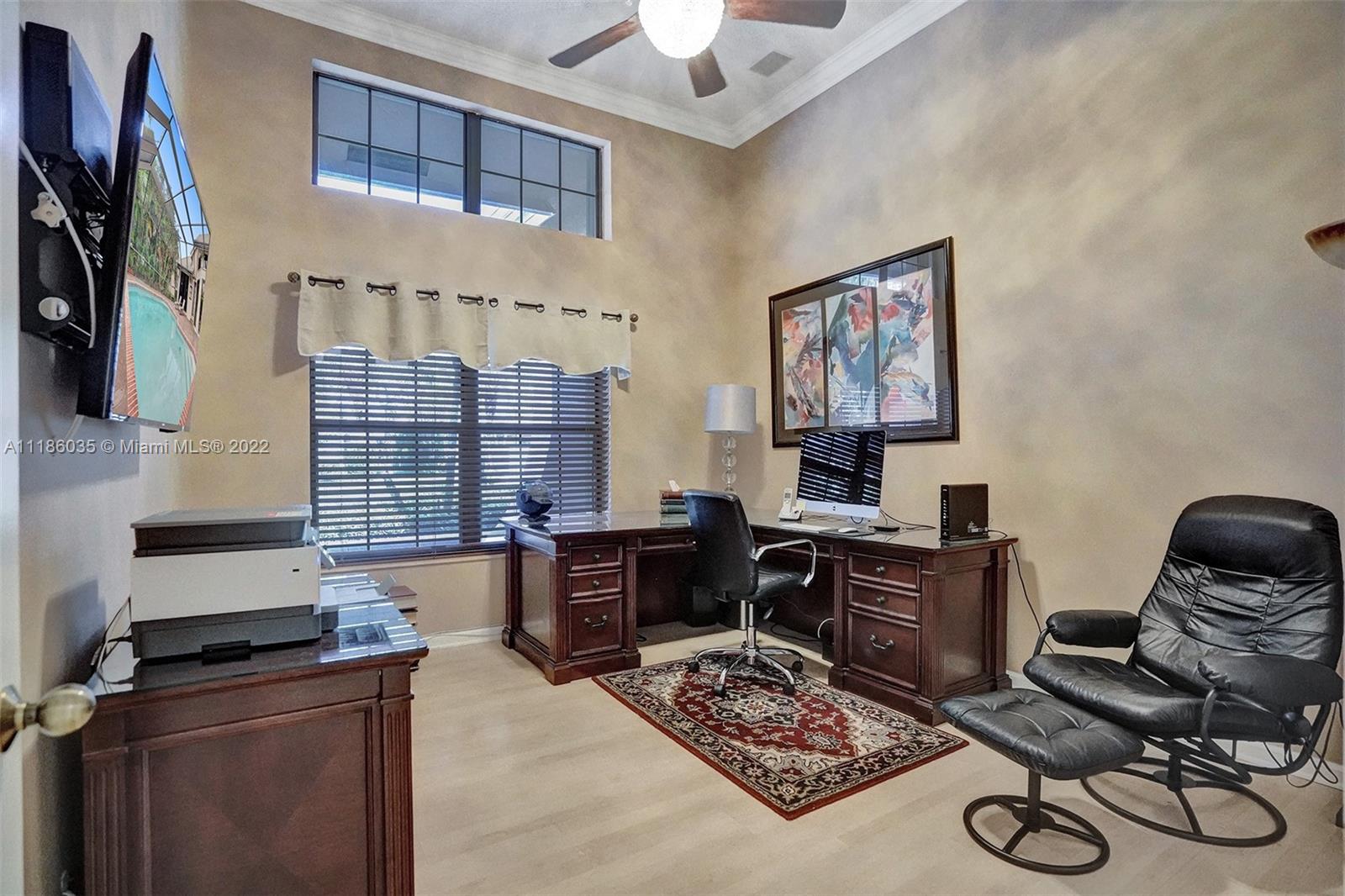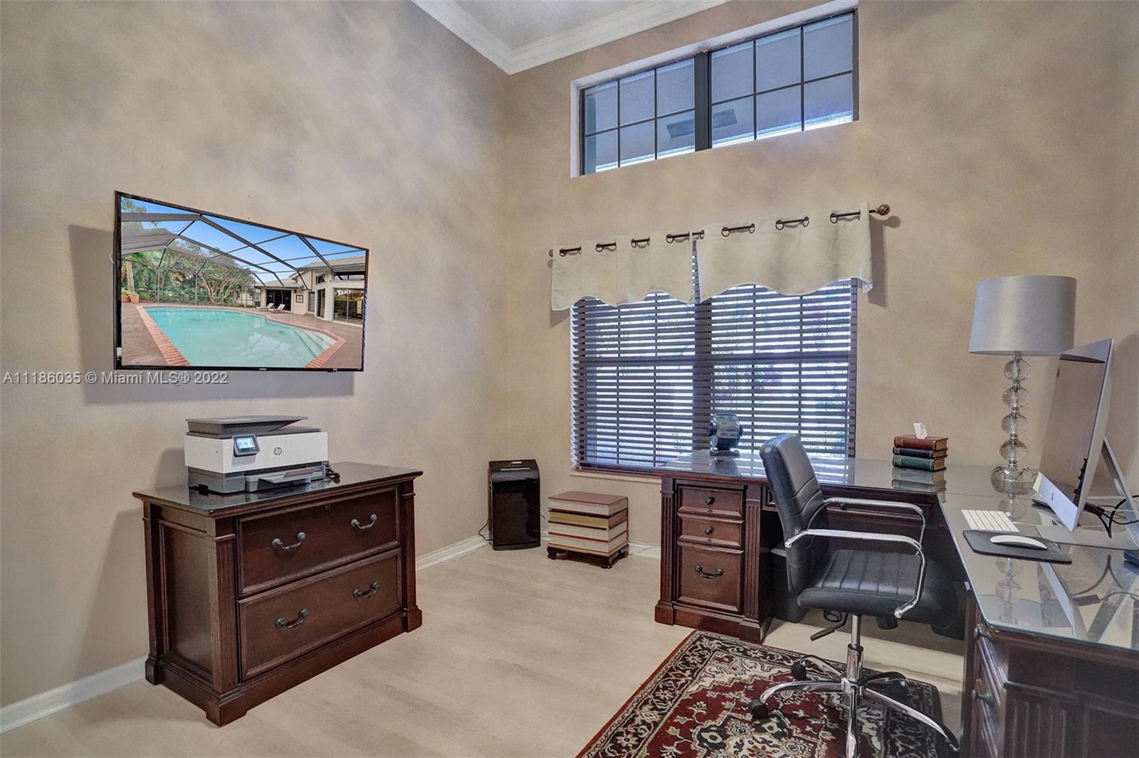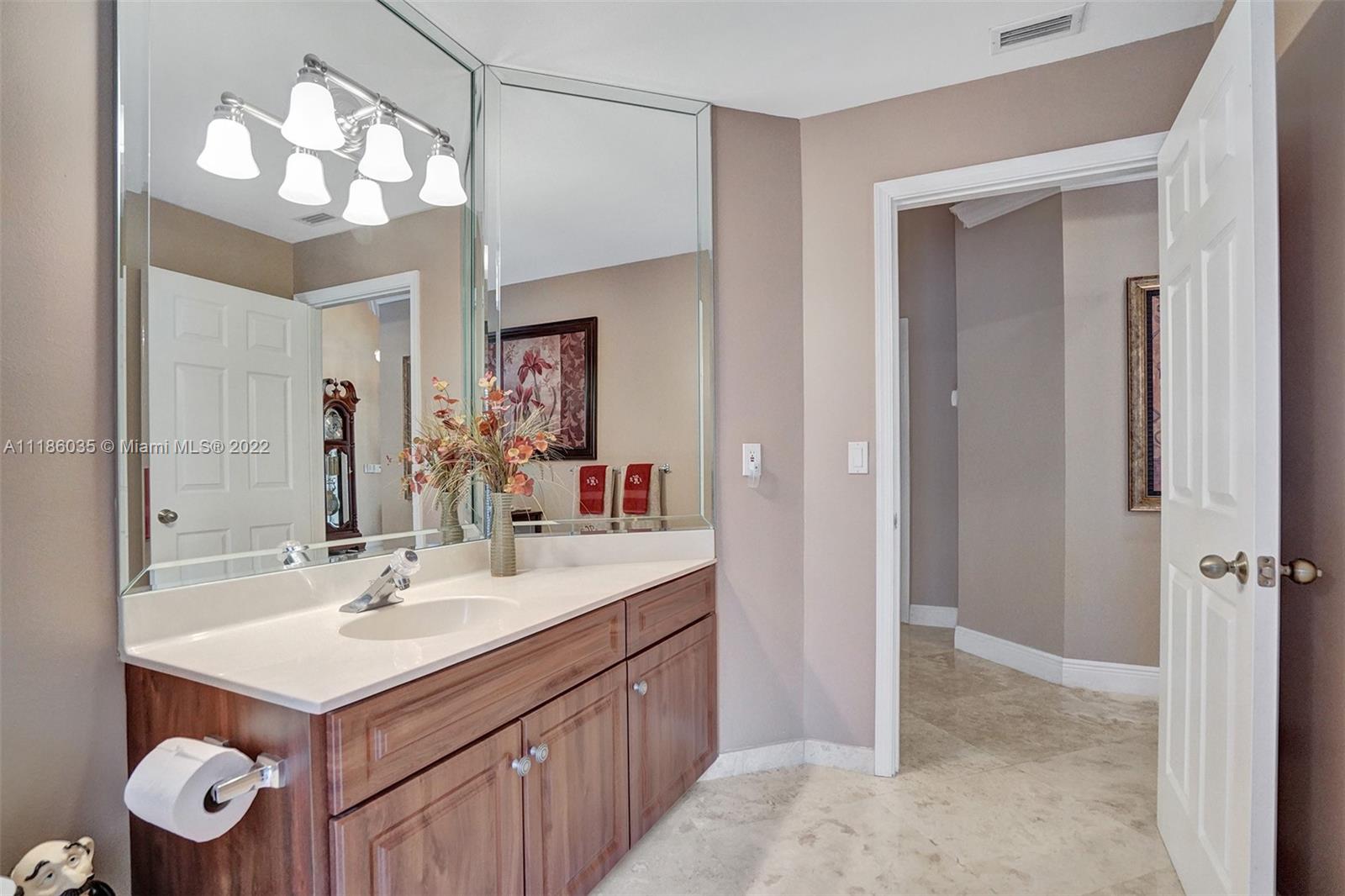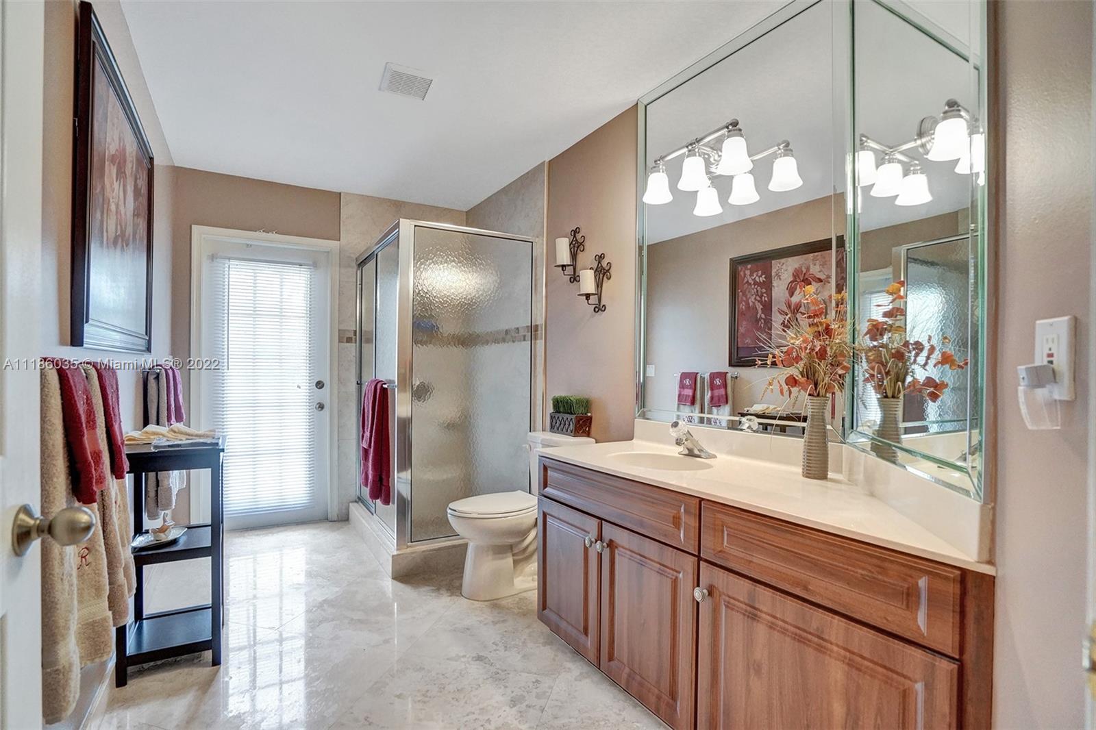 Turnkey home in the gated community of Palm Island. This home features 5 Bedrooms with 4 Full Bathrooms and 2 Half Baths. Great curb appeal sitting on an oversized 14,682 Square Foot lot on a Royal Palm Tree-lined street. Soaring ceilings in Living Areas. Marble floors flow through Living Areas with an elegant step-down Living Room. Gourmet kitchen with Granite countertops, Stainless Steel appliances, wall Oven, and two Pantries. Large owners Suite with Walk-In Closets and en-Suite Bathroom with Dual sinks and large Jacuzzi Tub and standing Shower. Privacy is hedged with lush mature landscaping surrounding the property encompassing the screened Pool Area and a Pergola Deck. True pride in ownership.