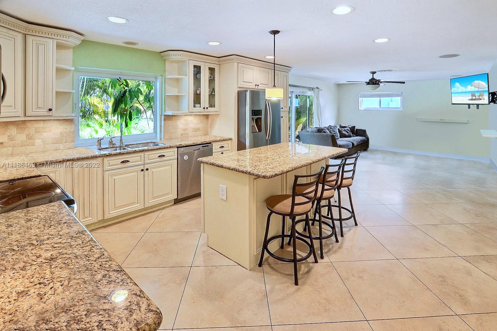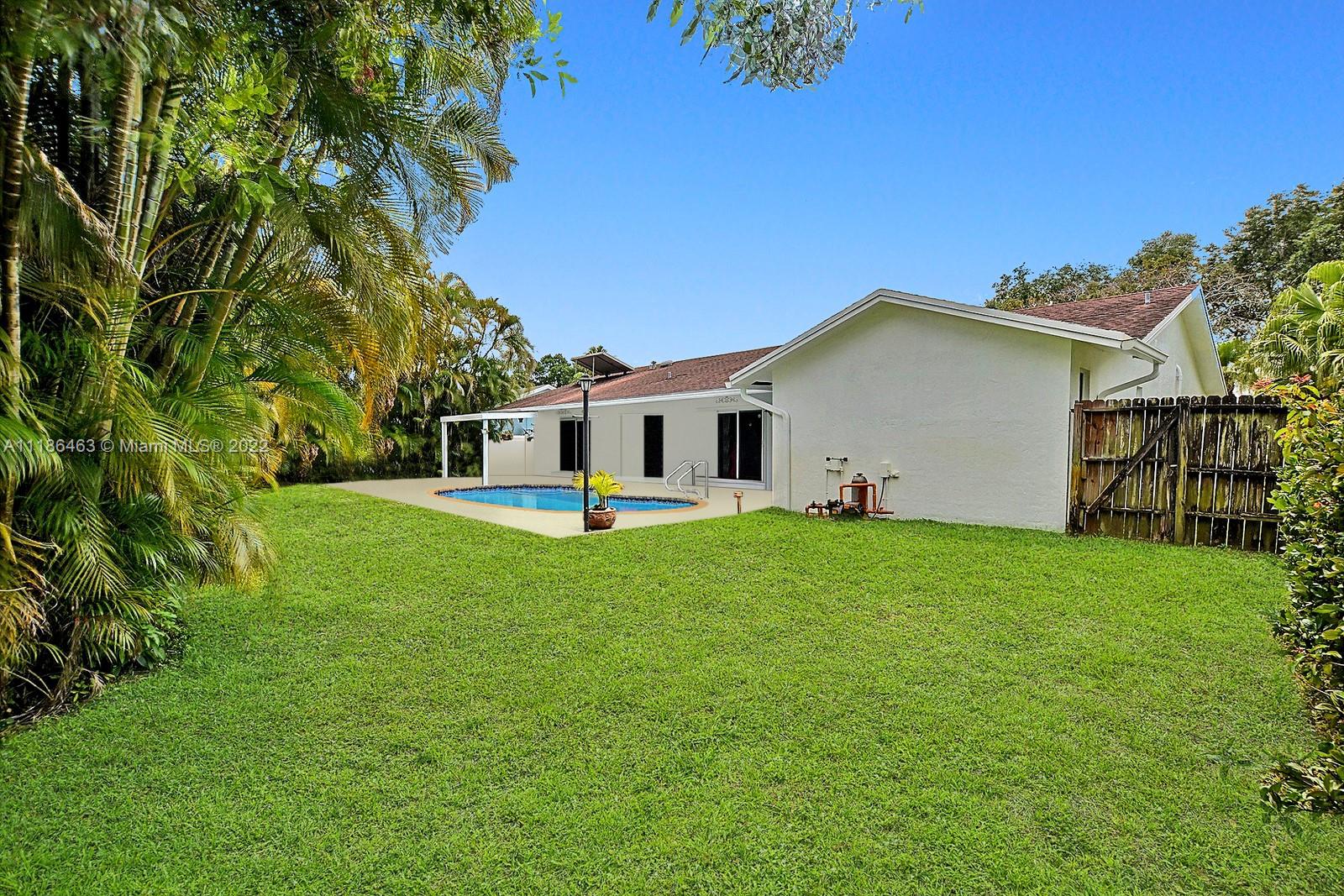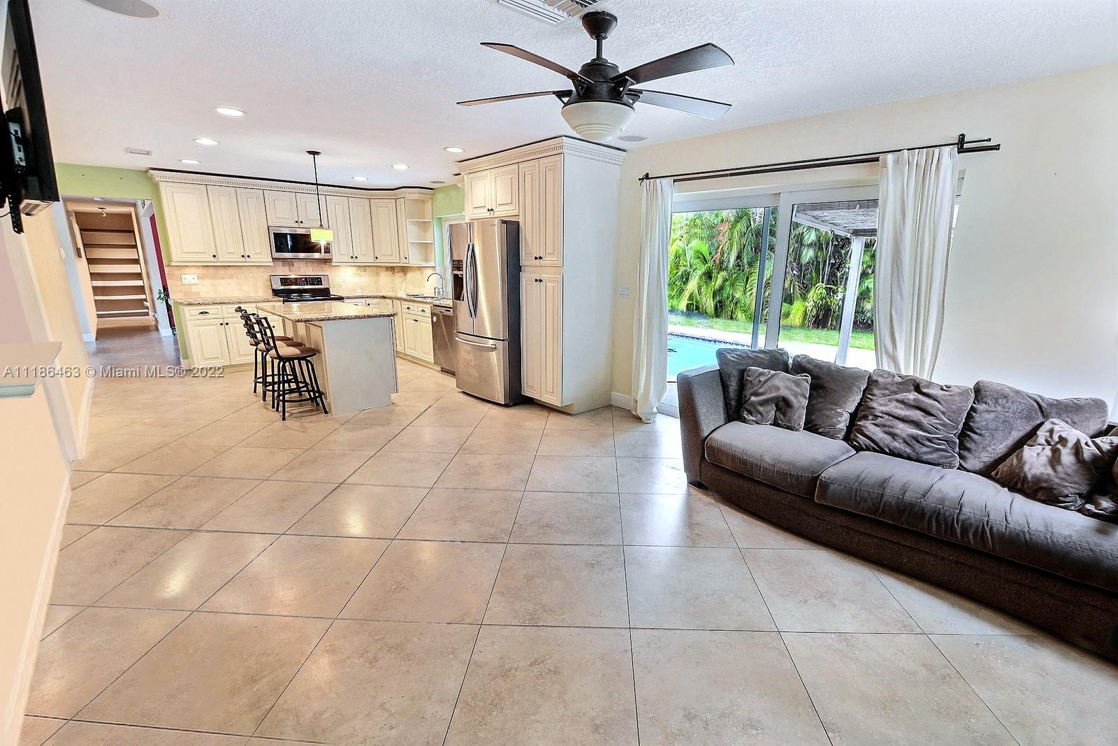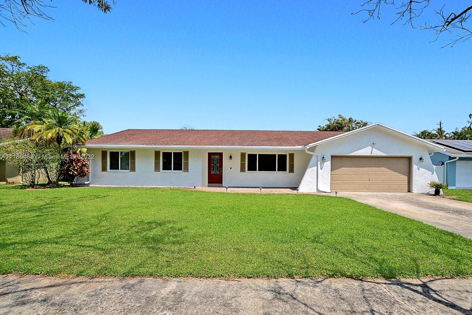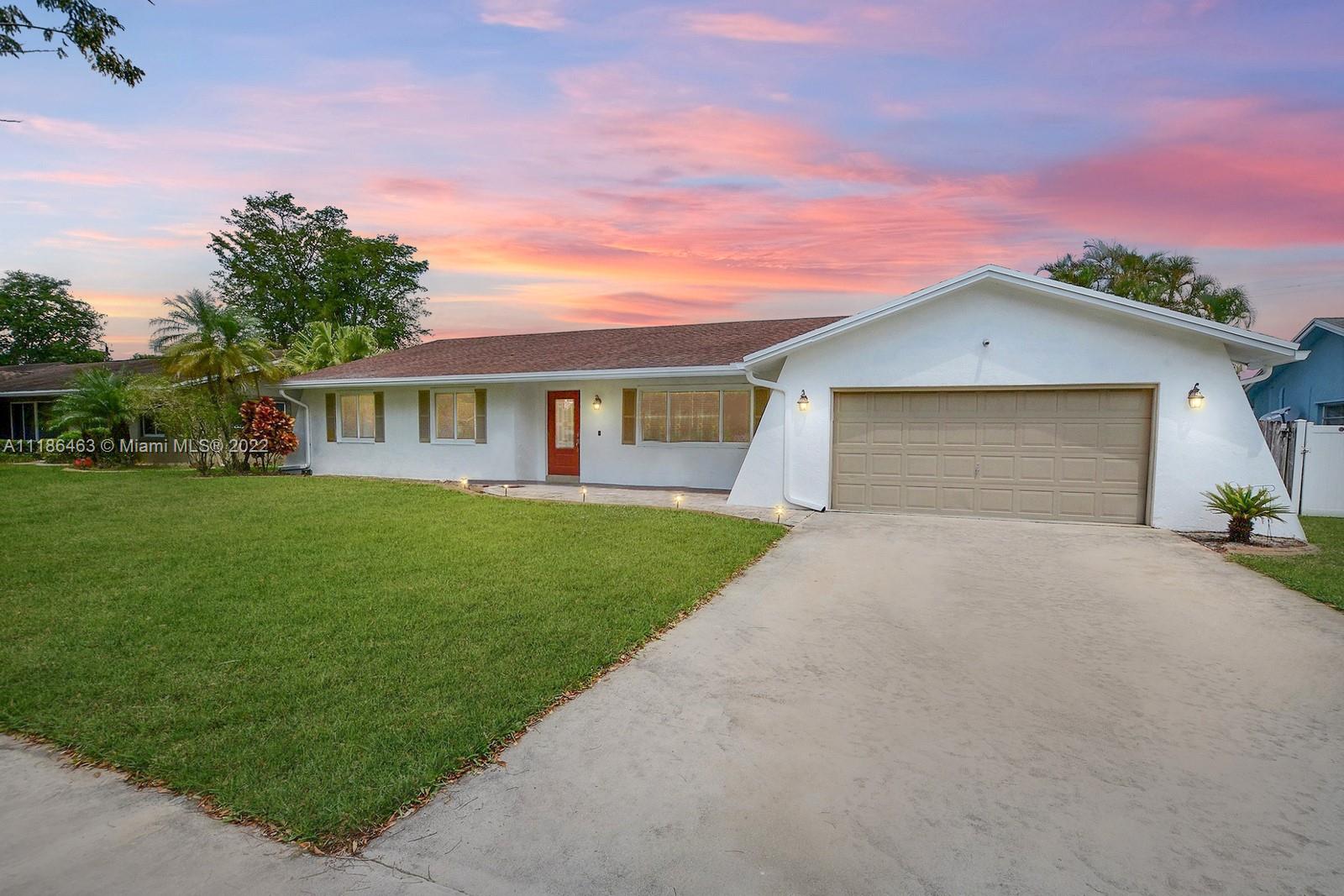 BEAUTIFUL 3 BED, 2 BATH RANCH STYLE POOL HOME IS LOCATED ON A CUL DE SAC STREET WITHIN THE WONDERFUL CITY OF DAVIE. A FRESHLY PAINTED EXTERIOR, 2 CAR GARAGE AND AMPLE DRIVEWAY WELCOME YOU INTO THIS LOVELY HOME. STUNNING KITCHEN WITH GRANITE COUNTERTOPS, DREAMY WHITE CABINETS, AND STAINLESS STEEL APPLIANCES. HURRICANE IMPACT WINDOWS THROUGHOUT. SPACIOUS PRIMARY SUITE OFFERS AN FABULOUSLY UPDATED ENSUITE BATH. PERFECT FOR ENTERTAINING, ENJOY ACCESS TO THE SERENE BACKYARD FROM THE DINING AND FAMILY ROOMS. THE LARGE, PRIVATE FENCED BACKYARD IS LINED BY NATIVE PALMS TO CREATE A TROPICAL POOL-SIDE OASIS. THE COVERED PATIO IS PERFECT FOR OUTDOOR DINING. WALKING DISTANCE TO DOWNTOWN DAVIE ALL ITS NEW DEVELOPMENTS AND MINUTES FROM THE HARD ROCK HOTEL AND CASINO. NO HOA.