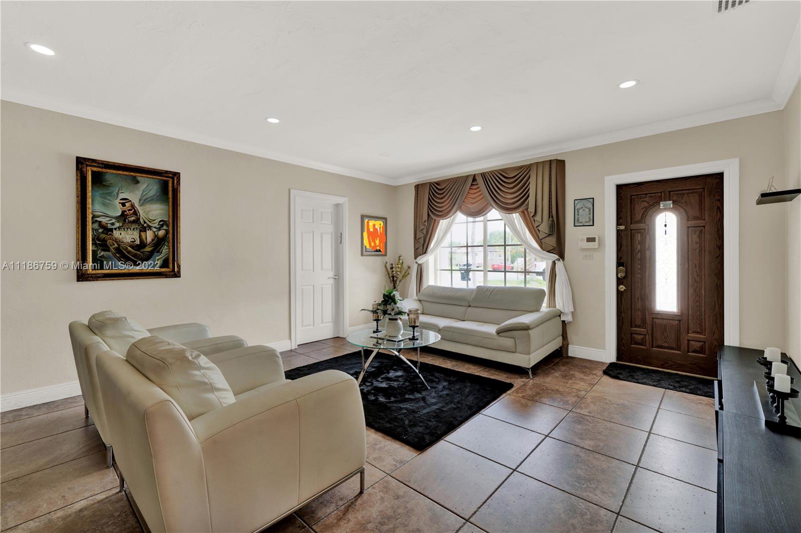 Beautiful home on a corner lot in a quiet and private culd-de-sac. Huge circular driveway. Oversized backyard with space to build a pool, park a boat or an RV. 4 bedrooms 2 bathrooms. Ceiling fans, stainless steels appliances,galley kitchen with 2 stainless steel refrigerartors included in the sale of the house. Fruit trees (mango & avocado) Just minutes of major highways, beaches and shopping malls