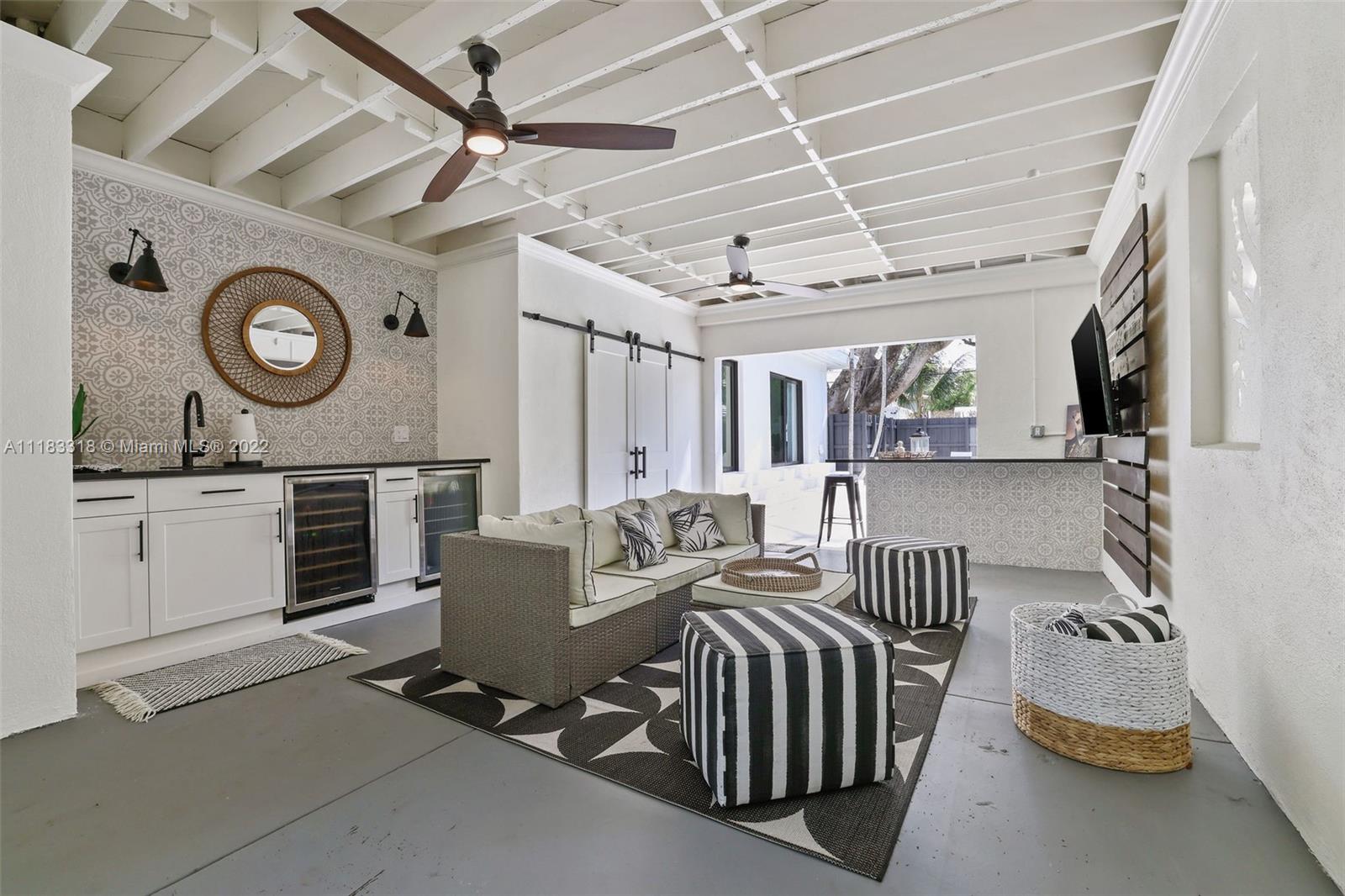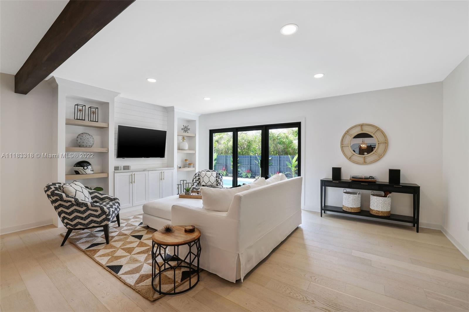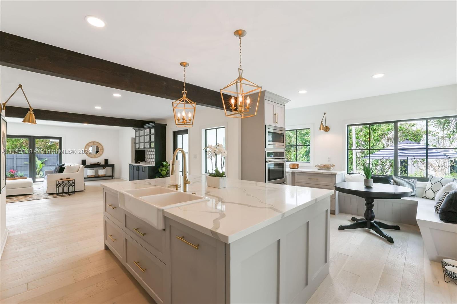 Fall in love with this stunning 4 BD 3.5 BA, 2757 SF home east of Biscayne Boulevard in exclusive Miami Shores. Completely renovated, thoughtfully curated & impeccably furnished, with furniture included in price! Amazing open floor plan with high ceilings & very spacious living areas with multiple built-in features. The beautiful kitchen is perfectly situated in the heart of the home with a massive calacatta island & custom built-in breakfast nook. Enjoy views to your brand new pool from your resort style Master Suite with custom walk-in closet. The Master Spa-Bath has a curbless shower & a his and hers sink vanity. Sip your mimosa & entertain poolside in your covered cabana. New impact windows, new plumbing, new AC, gas stove & water heater, custom laundry room & much more!