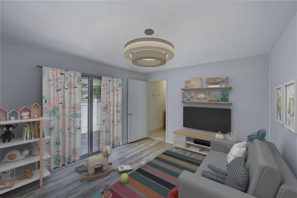 Key West Style Townhome located in the redeveloping zone of Pompano Beach. This complex is located just minutes from major highways, restaurants, shopping and the beach.The unit is located on the end of a row of 6 townhomes and has 4 bedrooms with one of them on the first floor with a full bath and sliders outside to the private backyard that is fully paved. You will not find a unit this large for under $600k.