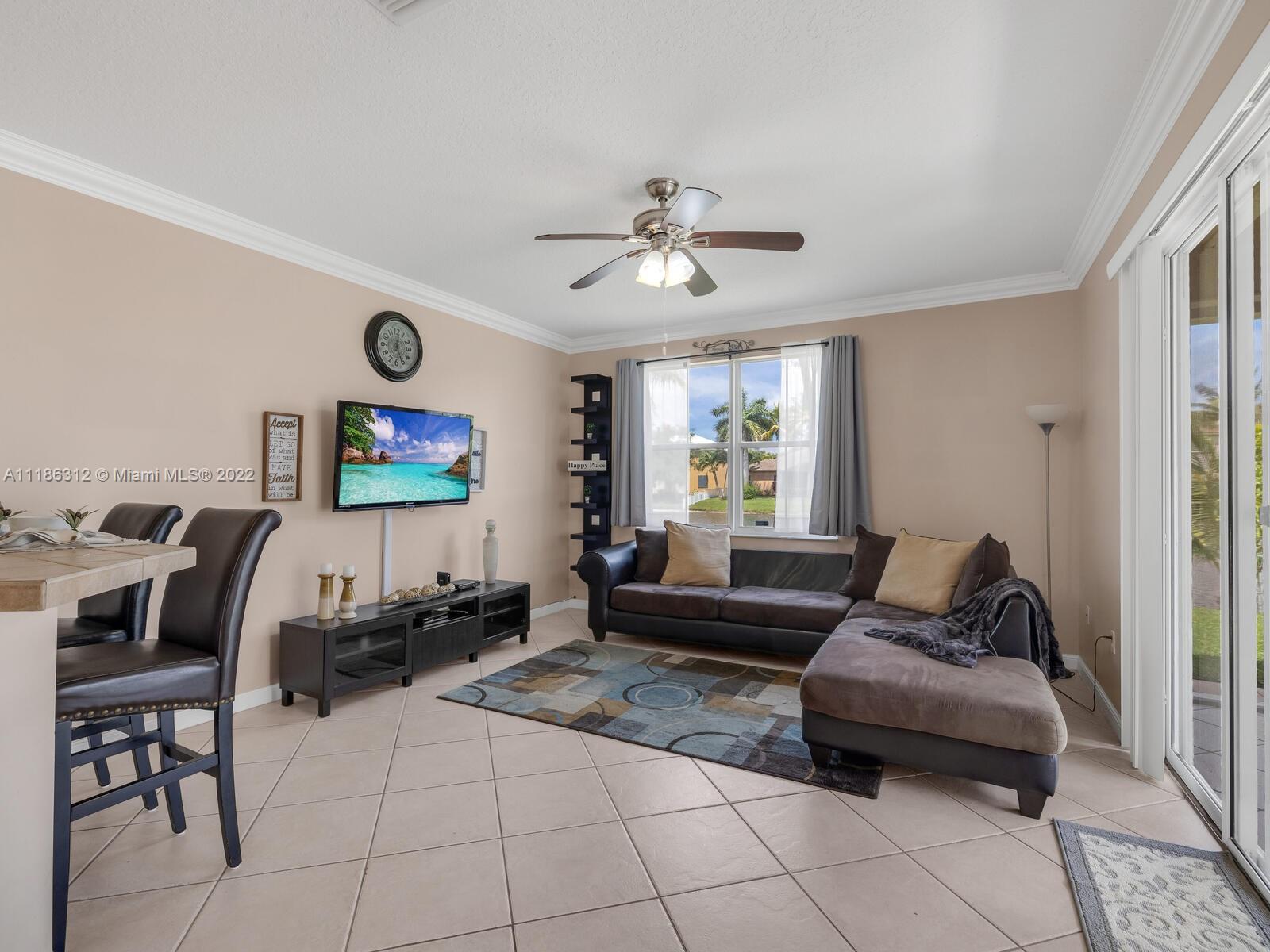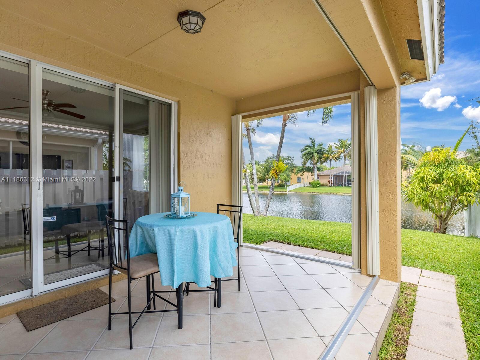 Spacious & comfortable lake front home! It’s breathtaking from the minute you drive up!! Bright & airy, it whispers “summer” all year round. Step into this immaculate home & you are greeted by volume ceiling and sand tone tiles throughout. Spacious formal living/dining area. Step outside to a covered patio overlooking the beautiful view. Patio can be enclosed with accordion shutters when needed. This home also boasts newly upgraded master bathroom! Large walk-in closet in the master bedroom, laminate flooring in all the bedrooms, an oversized kitchen & separate laundry room. The home is located steps away from the community pool, tot-lot and guest parking. Centrally located in West Miramar close to shopping, restaurants, & highways.