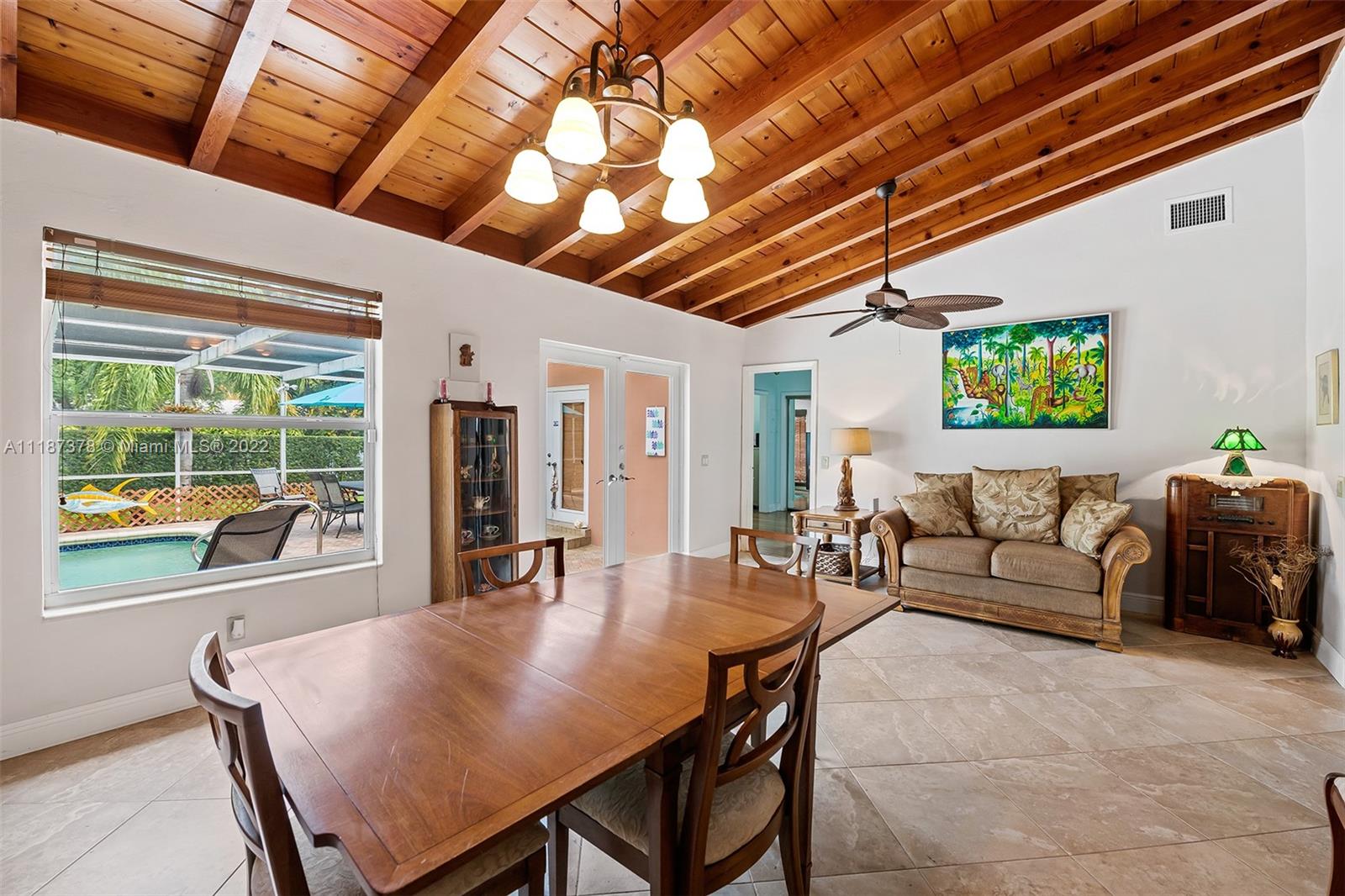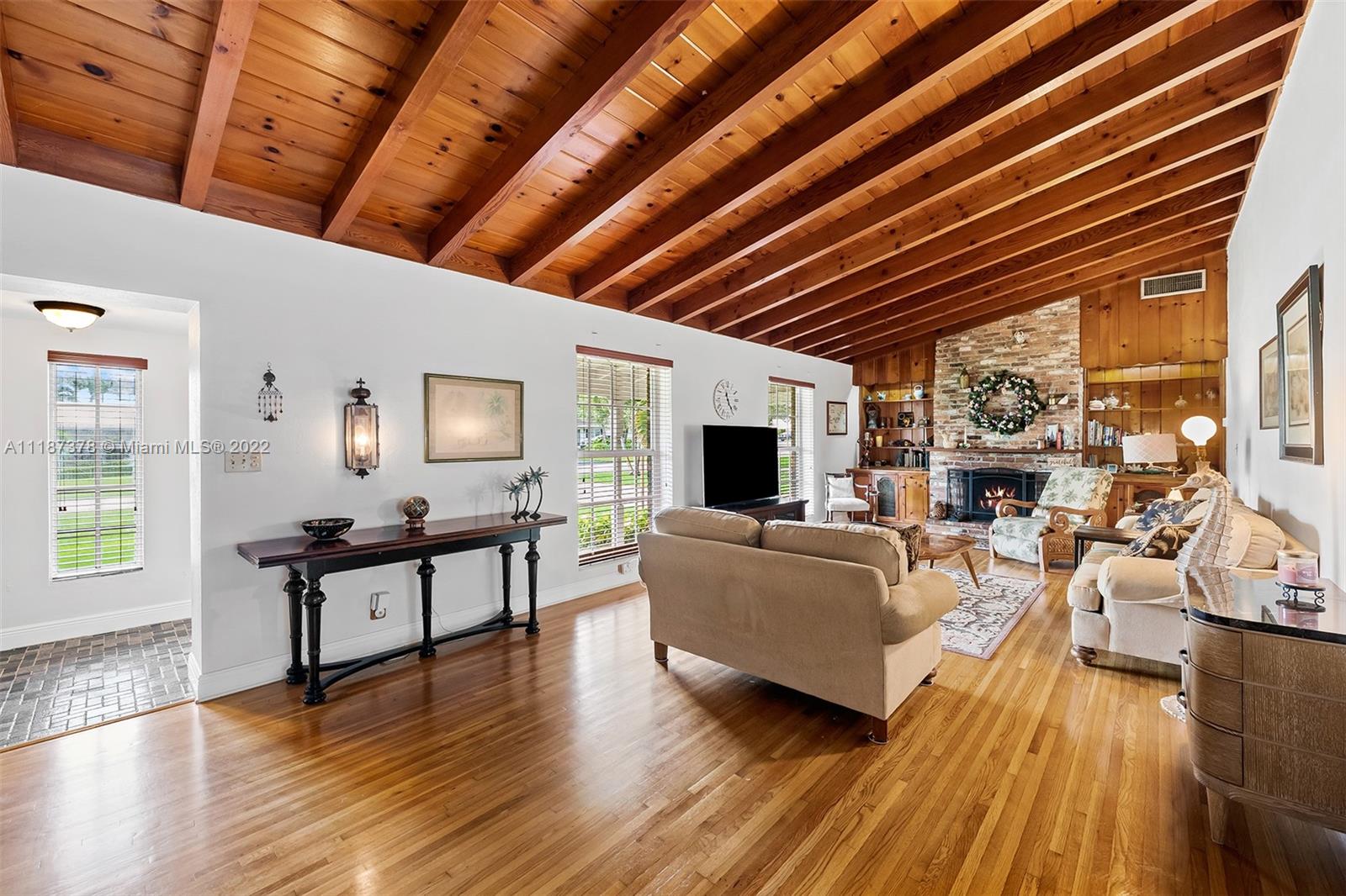 Remarkable property that is truly unique to the Hollywood Hills area! This home sits on a 12,000+ SqFt lot that is rare to find on the market. When you arrive you are greeted by a beautiful brick exterior, and when you step inside you are welcomed by an absolutely stunning vaulted exposed Dade County Pine ceiling. This 3 bedroom 3 bathroom house comes equipped with nearly all impact windows and doors, a large beautifully updated kitchen, updated bathrooms, large living spaces, a cabana bathroom, 2 car garage, and utility room. Prime location on a beautiful and quiet street. The house is proximate to the beach, the airport, places of worship, I-95, the turnpike, the Hardrock and in between Miami and Ft Lauderdale. Showings on Thursday, April 28th starting at 10:30am, please use show assist.