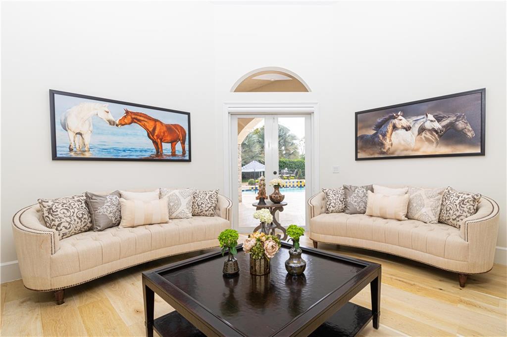 This custom built beautifully renovated residence sits on a builders acre with lake views and very lush landscaping. Featuring 5 bedrooms, 4 and 1/2 bathrooms, plus a very large theater/media room with built in surround sound. Gourmet kitchen includes all custom built wood cabinetry, quartz countertops, top of the line appliances - SubZero, Viking, Miele, butler's pantry and custom built in large wine cooler. Solid mahogany wood doors with high end fixtures, white oak wood flooring throughout, all solid wood closets and cabinetry in all bathrooms, all hurricane impact window and doors, new pavers, new camera system, new fence, new a/c, brand new roof and so much more! All TV's are included in this truly meticulously maintained turn key residence.