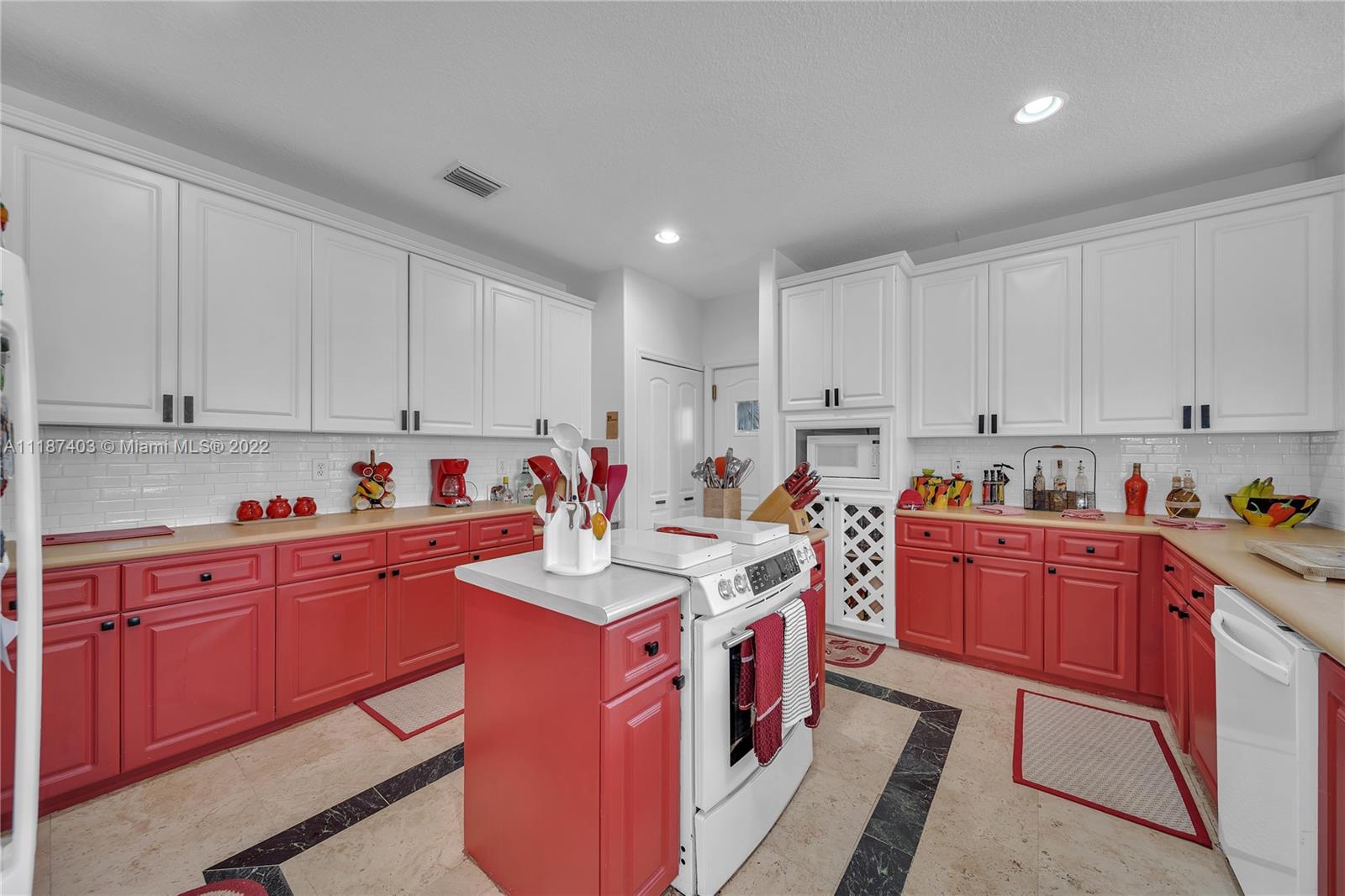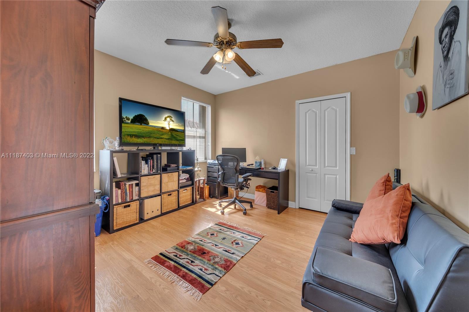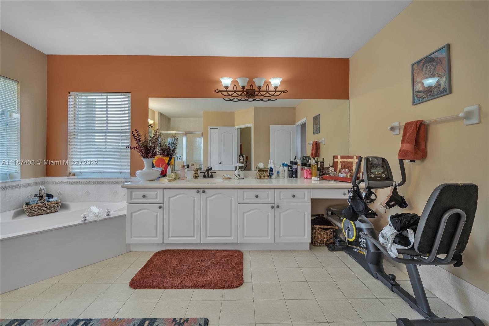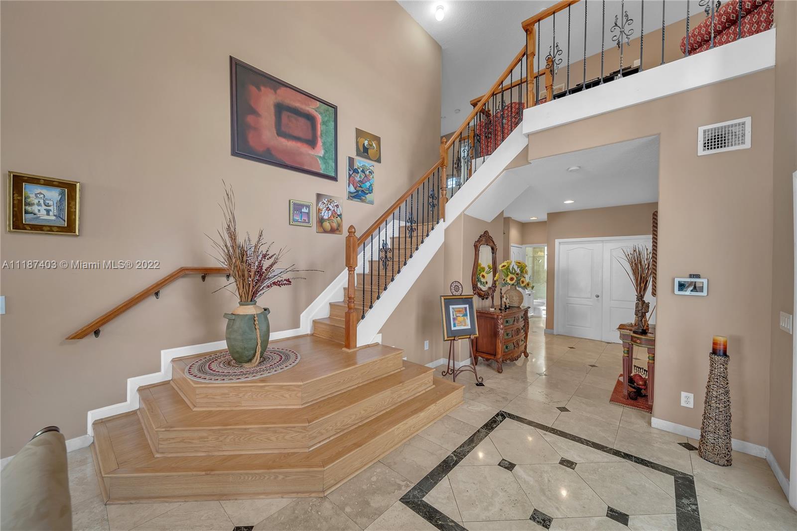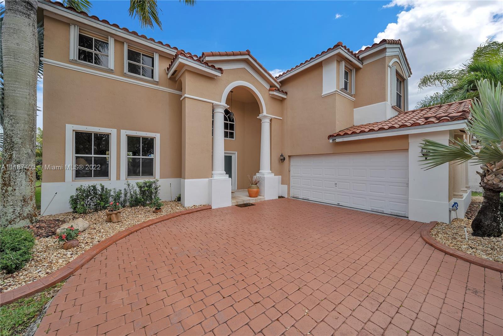 A large tropical oasis located in the center of Miramar, this sizable single-family home is located in the beautifully manicured and quiet neighborhood of Tahiti Isle at Nautica. Built in 2000 with two floors of 3,670 livable sq. ft., this home boasts 5 large bedrooms with 4 full baths, tons of closet space, beautiful stone tiles on the ground floor, and laminate wood in the bedrooms, and has wide-open spaces for entertaining. Hurricane accordian shutters throughout, modern interior with dramatic vaulted ceilings, bright and open living room and kitchen. A quaint breakfast nook leads to an open-air porch overlooking a scenic waterway, and is surrounded by greenery facing a protected bird sanctuary. The neighborhood features 24/7 gated security, gym, tennis & basketball courts, & more!