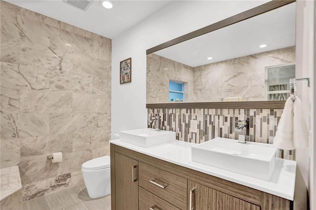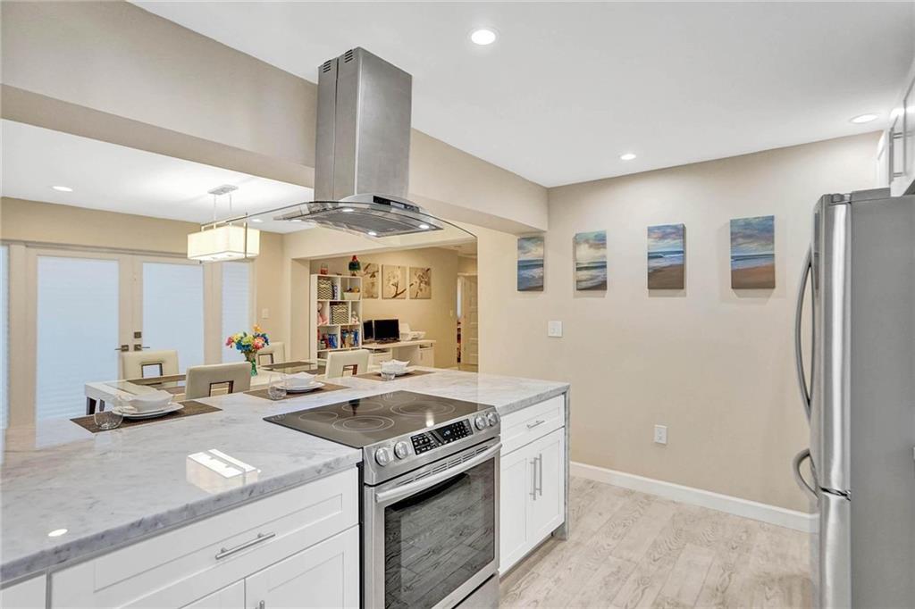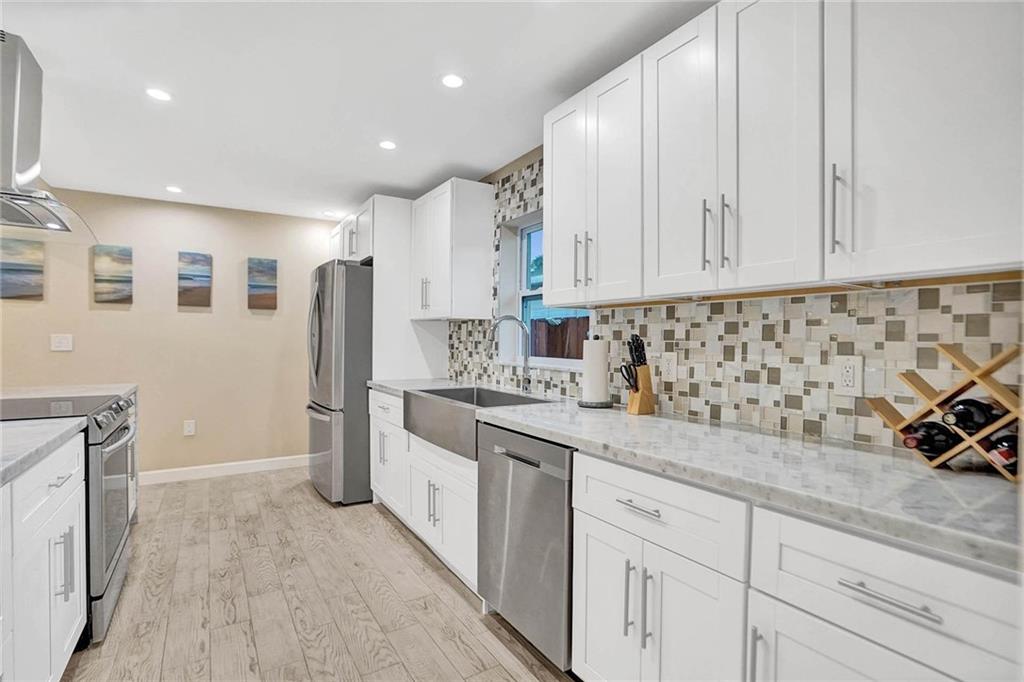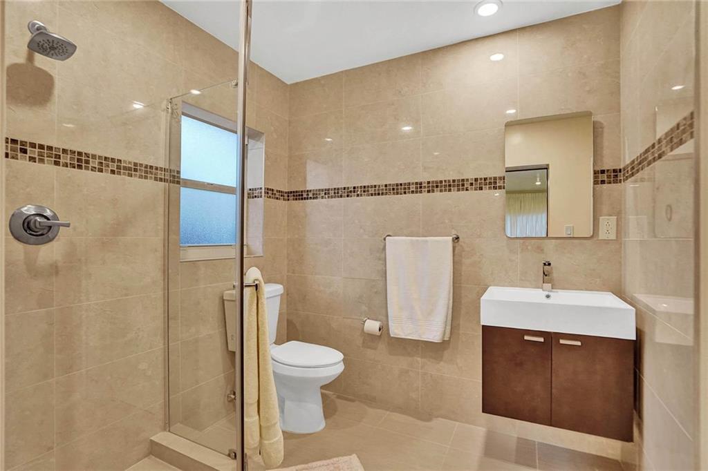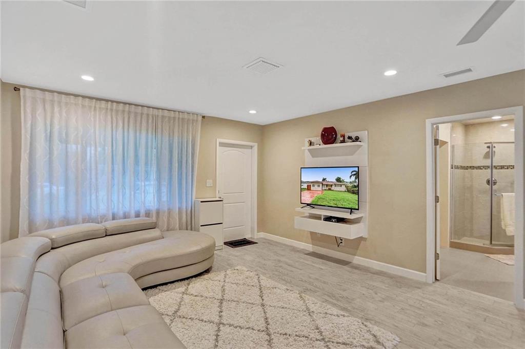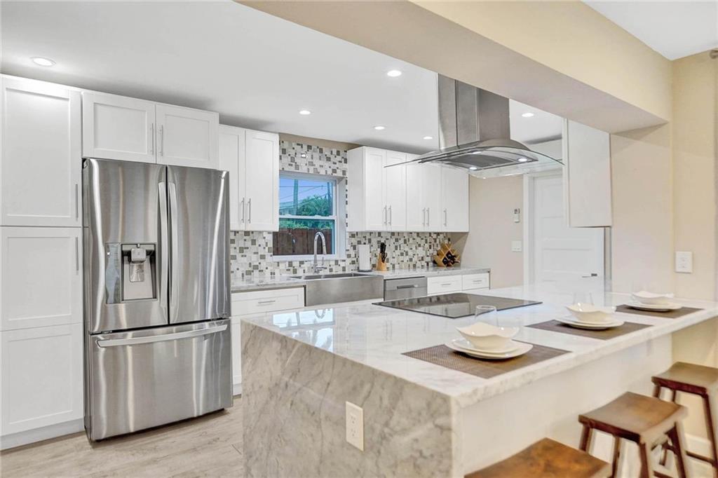 Stunning home, newly remodeled in 2017 with impact windows, plumbing, electrical, fenced in backyard, paved patio. Open floor plan with modern upgrades. Kitchen has wood white cabinets, pantry, s.s appliances , apron-front kitchen sink and marble countertops. Laundry room has front load washer/ dryer and plenty of storage . Very spacious master suite with a walk-in closet. Master bath offers floor to ceiling marble tile, modern double vanity, linen closet, soaking tub, oversized shower. Wood look tile throughout, recessed lightning, lots of natural light. Fourth bedroom has a separate entrance, extra parking space , full bathroom and a kitchenette . It can be used as in-law quarters or as a rental. Perfect location close to the downtown area, parks, golf course, shopping and the beach!