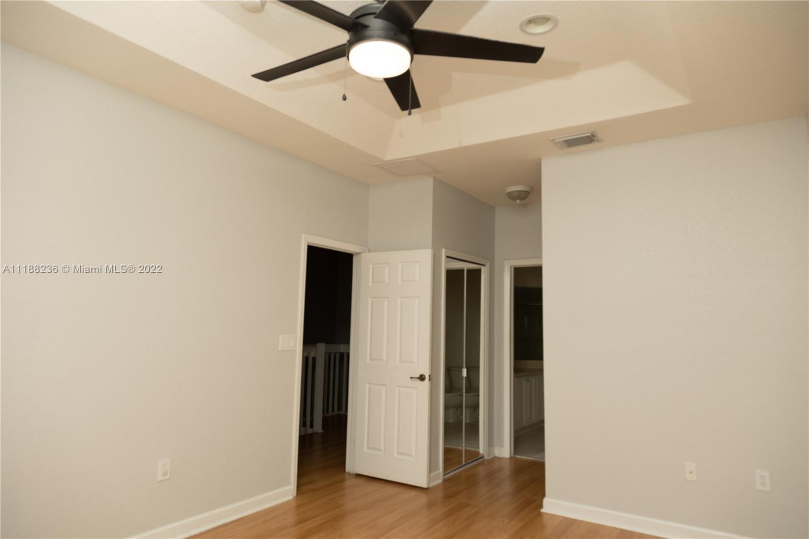 Spacious 2-story 4 bedroom/2.5 bath with 1 car garage in the Antilles community at Islands at Doral. Move-in ready. White tiles on the first floor and laminated wood on stairs and second floor. Kitchen with granite countertops. Beautiful fenced patio with garden area. Master bedroom 2 other rooms have a walk-in closet. Community features a beautiful clubhouse, 2 pools, fitness center, tennis and basketball courts, guest parking and multiple playgrounds for kids.