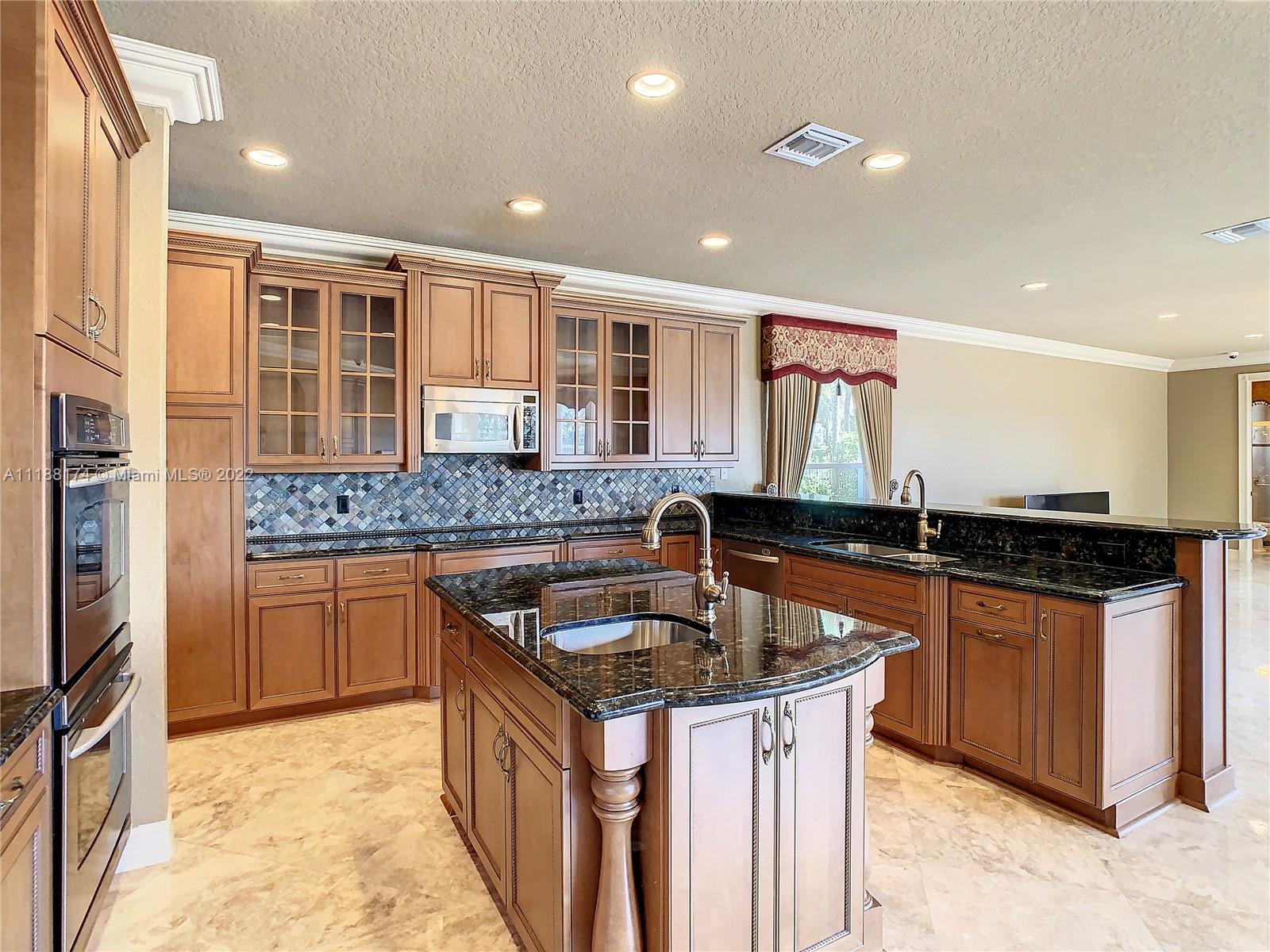 Live in one of Davie's most splendid, gated communities. An elegant, well-appointed home, impeccably maintained, only one owner! Also, the largest model in Long Lake Ranches. 24-foot vaulted ceilings, a grand sweeping staircase, marble floors and custom carpets, custom his/her closets, and a gourmet kitchen with double dishwasher drawers, double ovens, main and prep sinks and center island with storage. This luxurious home features 6 bedrooms and 7 full baths. Each bedroom has its own private bath, and 1 cabana full-bath for guests. The first floor features the primary ensuite with sitting area, an office and a second bedroom/bath. Second floor has a media room, a bonus/game room, and 4 other bedroom ensuites. Lovely pool/spa, landscaping and lake views. The perfect retreat to live.