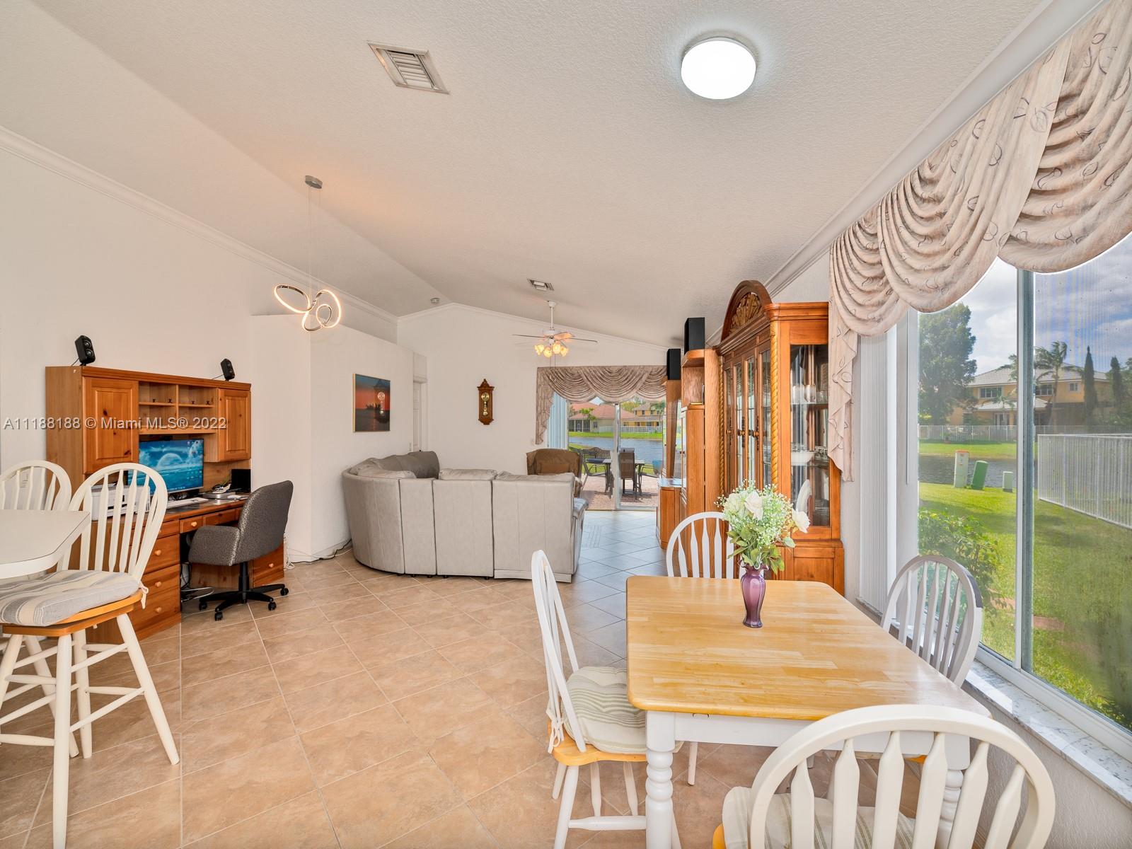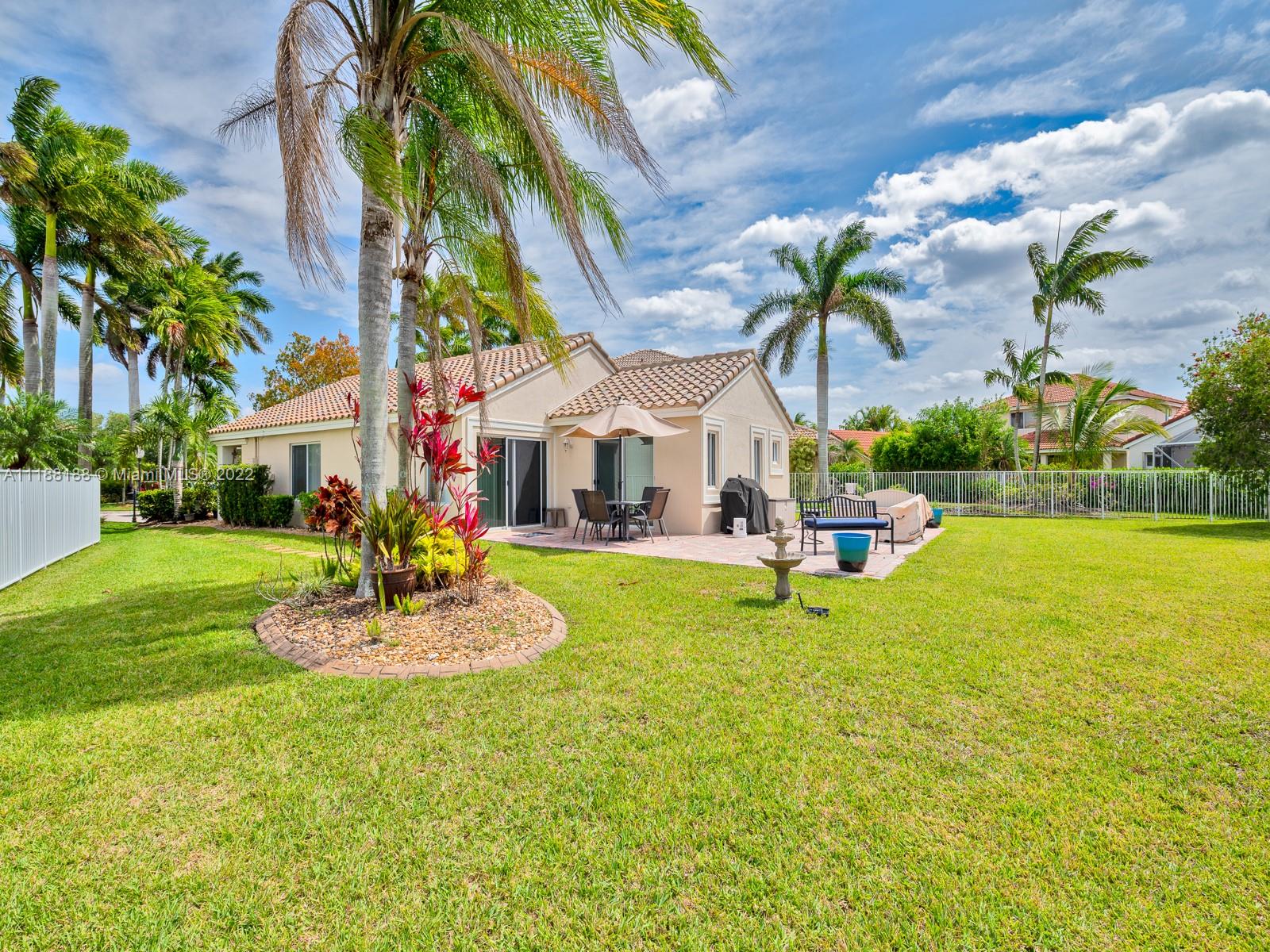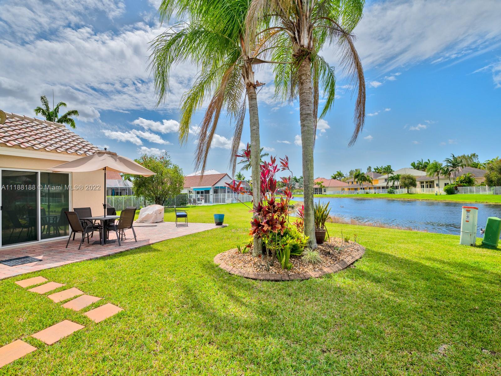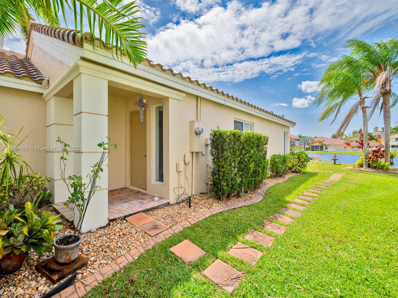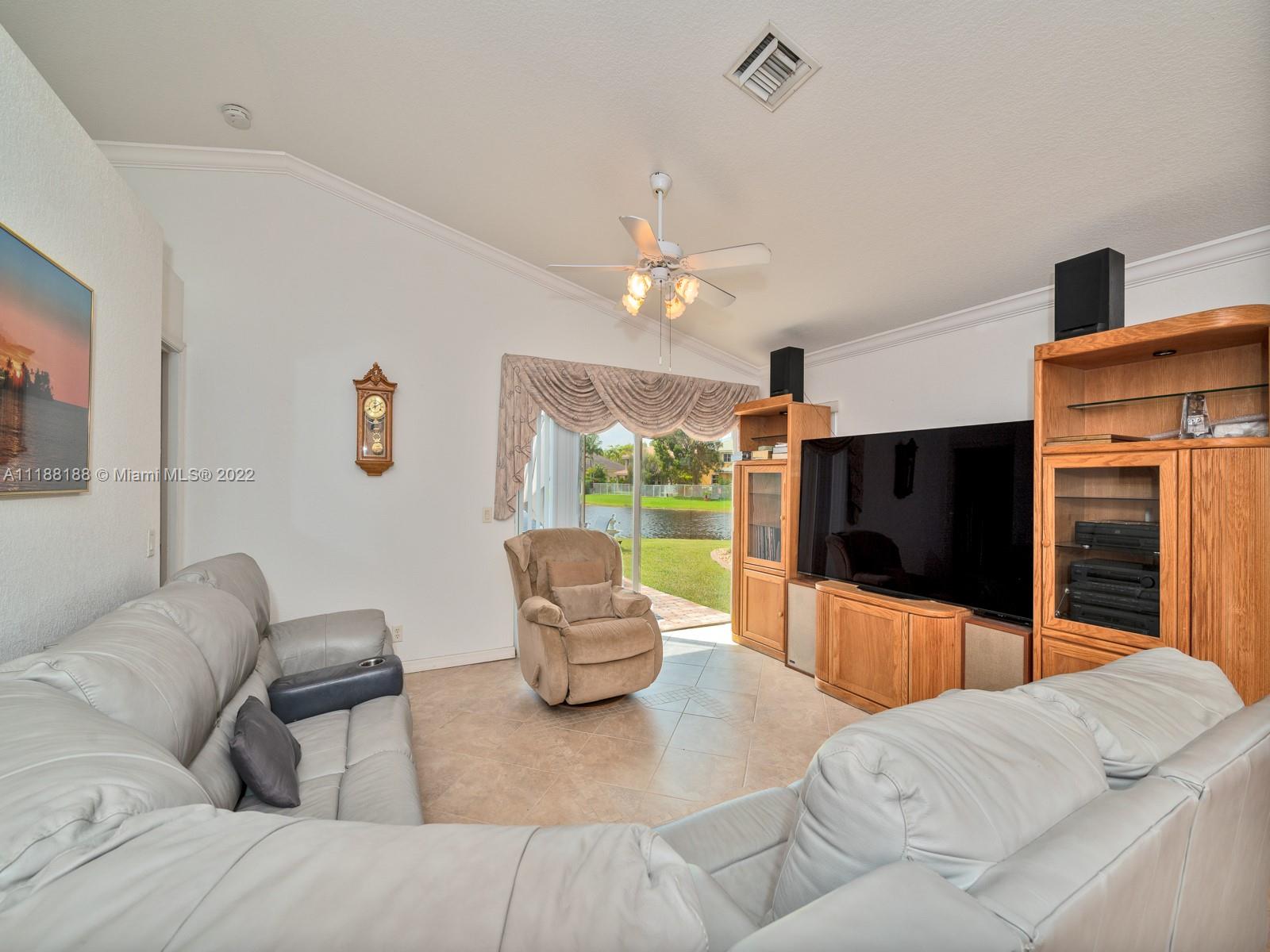 Welcome Home! Wonderful lakefront home overlooking a beautiful lake. Enjoy your morning coffee and a lovely sunset with this peaceful view. Here is your chance to own a 3 bedroom single family home with a tech 2 car garage with flooring and wall system. A lot of natural light with an open floor plan. A hardwire network computer system, 6-year-old AC (still under warranty), and 6-month-old roof (with warranty). This community has 2 gates, offering easy access. EXCELLENT SCHOOL DISTRICT (A+). The community is known for its amazing recreation: 3 pools, mini-golf, community clubhouse, basketball, tot lot, & more with low HOA! 24-hour guard and convenient location to highways and a short drive to Ft. Lauderdale airport and to the beach.