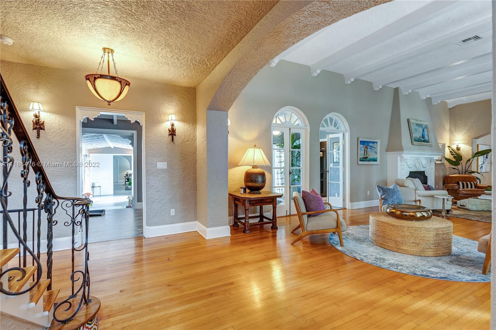 One of a Kind, Spectacular Mediterranean Estate situated on an expansive 19,200 SF corner parcel inclusive of towering oaks, a spacious main house+attached guest house. Main residence w/an impressive grand living/dining room, 6bds,5 full baths &2 halves. Custom details throughout such as the 14th pecky cypress ceiling, ironwork, French Doors & remote fireplace. Window-lined poolside loggia leads to renovated guest house w/separate kitchen, laundry, living/dining, office & 2nd master. Walled grounds w/cover terrace, porte-cochere, full impact glass, heated saltwater pool w/built-in infinity jacuzzi & full house generator. Includes plans for a detached 2 garage. A true masterpiece!!