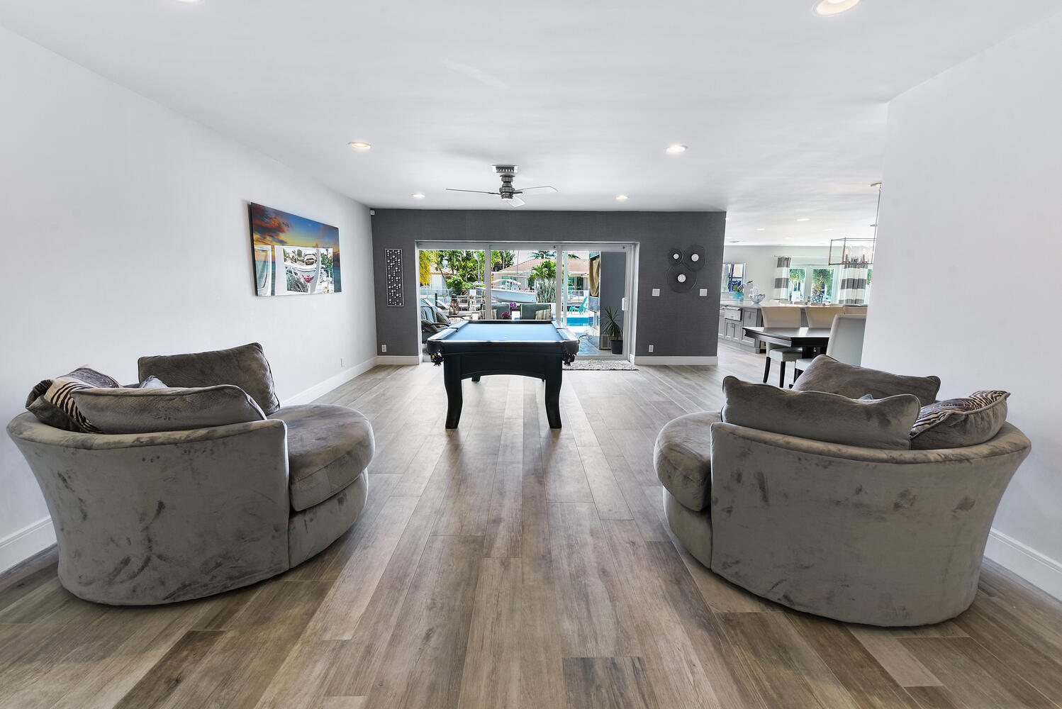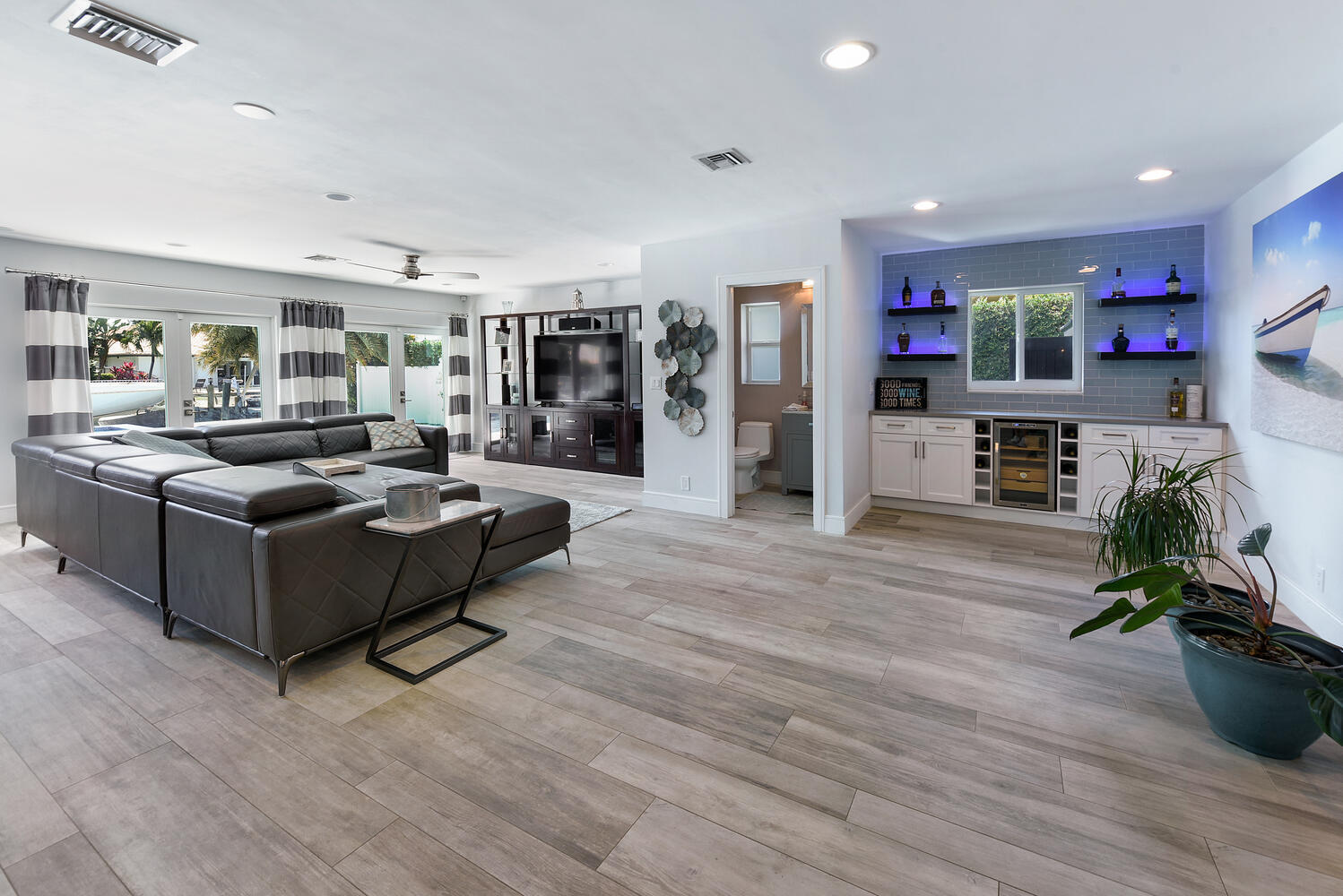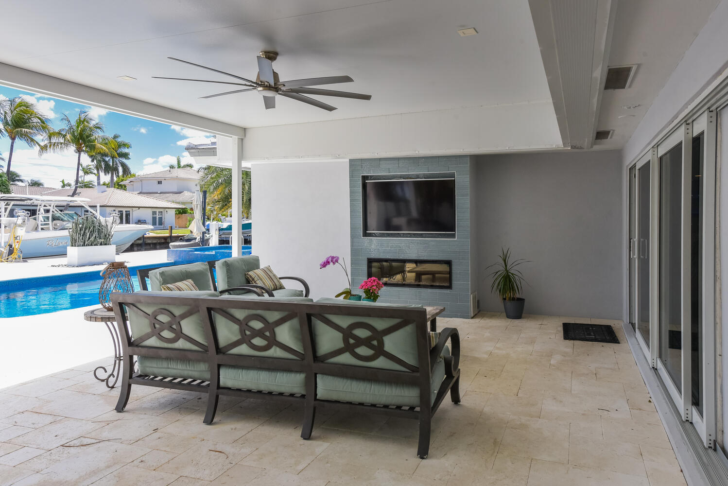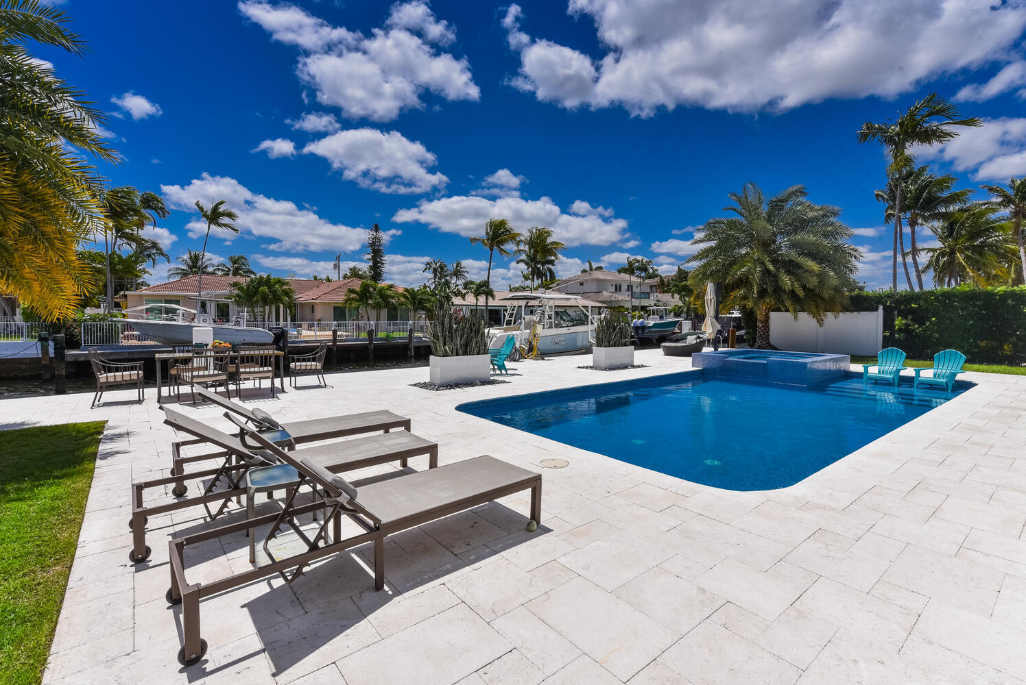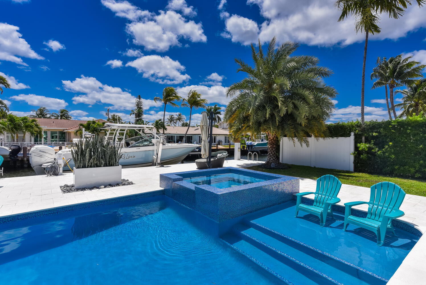 Completely Remodeled Waterfront Home Located In Coral Ridge Country Club. Property Is 3rd Home From Point, Providing Wide Intracoastal Views. Open Floor Plan, Large Designer Kitchen With Viking And Sub-Zero Appliances. Kitchen Includes Wine Refrigerator And Custom Bar Includes Cigar Refrigerator. Resort Style Patio And Salt Pool With Sun Shelf & Hot Tub, Extended Patio Roof Covers Summer Kitchen, Fireplace And TV. Large Exterior Entertainment Space, New Seawall, 85 ft Raised Dock With Tumbled Marble Pavers & 16k lb Boat Lift. Impact Windows & Doors, 500 Gallon Propane Tank That Services Viking Range, Pool Grill, Hot Tub And Water Heater. Roof 2020Master Suite Is Privately Tucked Away On 2nd Floor.