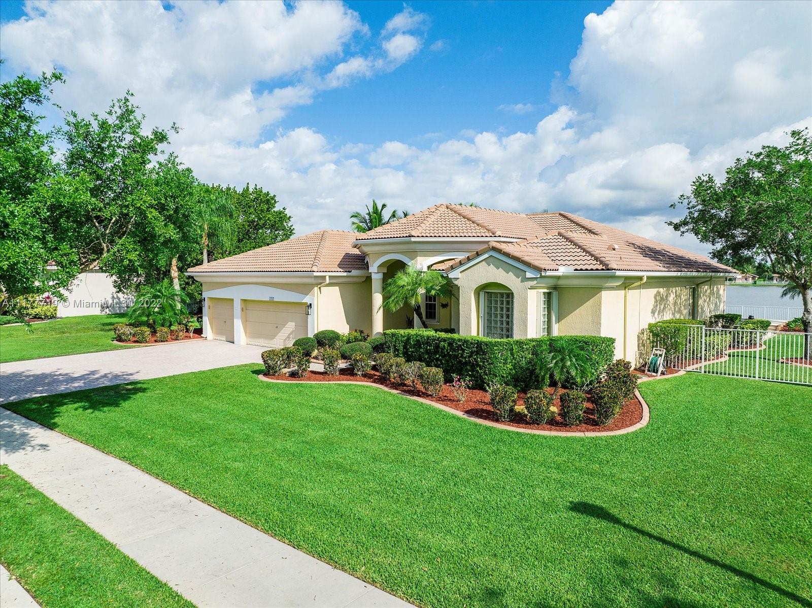Your only opportunity to own a marvelous lakefront home! This home has been well taken care of and constantly maintained. The sprawling home located in the gated community of Highland Ranch Estates in Davie and offers a desirable open floor plan, high ceilings, and expansive lakefront views. The home includes 4 bedrooms and an office/den, 3 car garage with plenty of built-in storage. Master bedroom has a sitting area. Large master bathroom has separate tub and shower, hers & his toilet. Large, gourmet kitchen equipped with multifunctional cabinets, Corian countertop, double oven, kitchen island and other stainless appliances. Enjoy the stunning lake front view from your master suite, living room, and family room. Pool with Jacuzzi in the fenced private backyard overlooking 43 acres lake.
