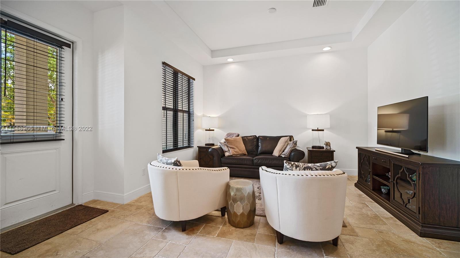 Fabulous modern townhouse in a prime location in Downtown Doral. This move-in ready tri-level townhome has 3 bedrooms/3 baths upstairs with a half bath on the entry level which opens up to a spacious kitchen w/stainless steel appliances and living/dining area. The 2nd floor has a large owner’s suite with walk-in closet and spa bath as well as 2 extra bedrooms. The third level has a separate living area with a full bath that can be converted to a 4th bedroom and a roof top terrace w/built in summer kitchen, excellent for entertaining. Close to A+ rated elementary schools, Miami airport and shopping malls.