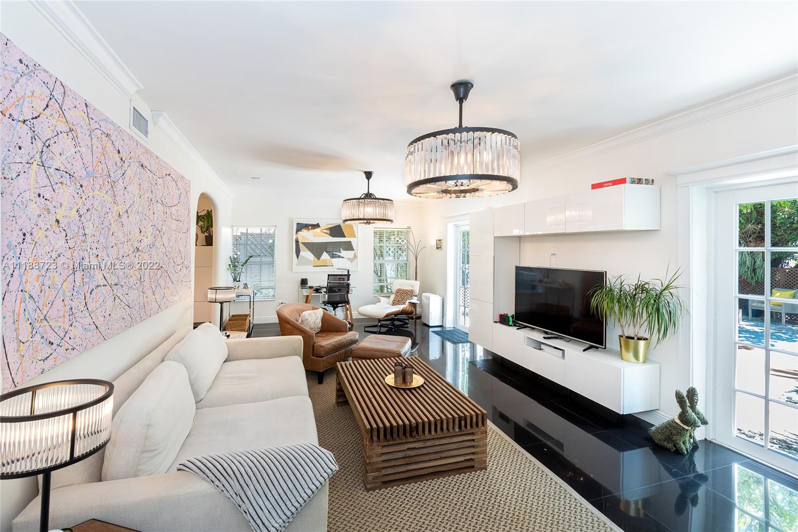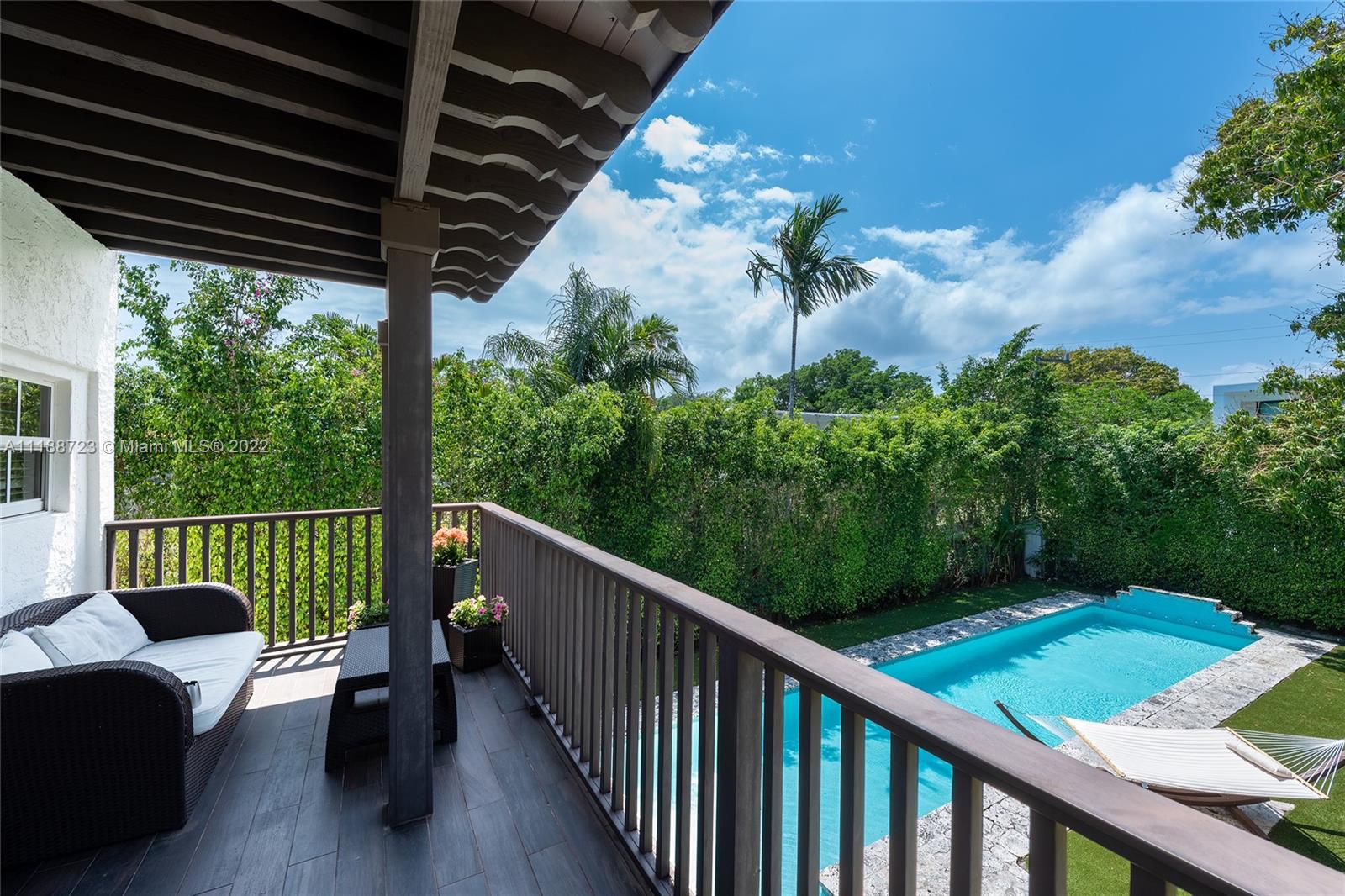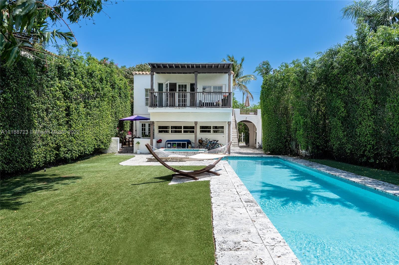 Sweet and charming describes this gated 1923 updated 3 bedroom, 2 ½ bath home. Sitting on a 7,500 SF lot, the home features a fabulous kitchen overlooking the backyard, a large lap pool surrounded with Keystone. A large historic mango tree that was planted by John S. Collins. Wonderful home for entertaining with outside space in front of home and flow through to the back open space, plus upstairs terraces. Great location, the home has hurricane impact resistant windows and doors.