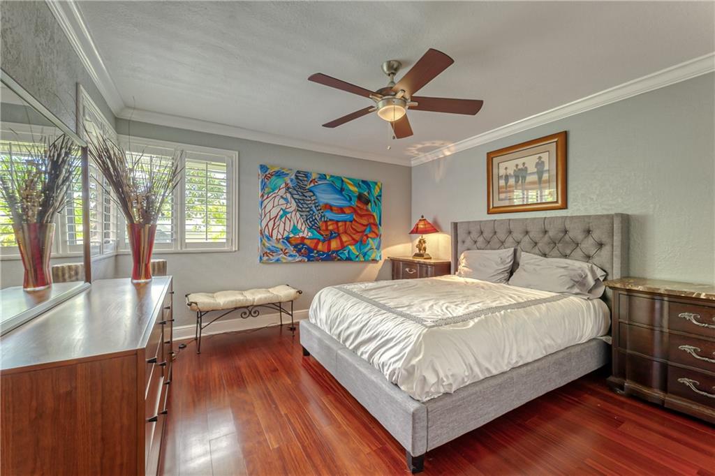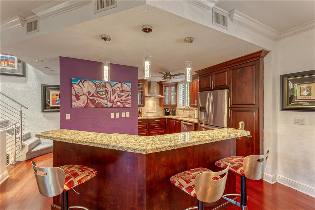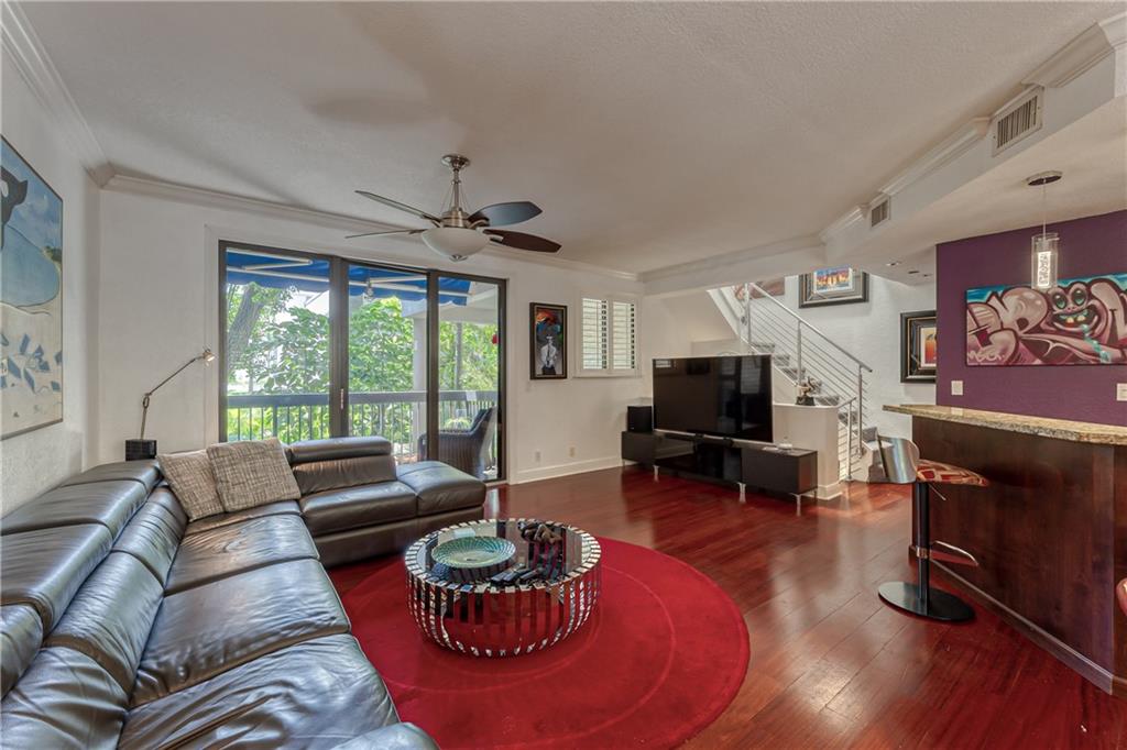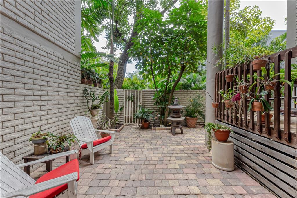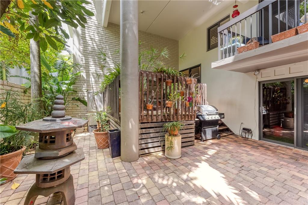 Natural light pours into this wonderful Victoria Park townhome - originally 3 bedrooms / 2.5 baths. The 3rd bedroom now opens up at the top of the stairs for a comfortable den / office area. Plantation shutters throughout. Lots of outdoor spaces with a balcony off the living room, an elevated deck, and a patio on the ground level. Home has all impact windows, sliding doors, and garage door. Kitchen with convection oven, wine cooler, Jenn-Air: hood, ovens, and cook top. Association put on new roofs in 2018. Townhouse has new AC system and hot water heater both in 2019. This unit is "outside the gate" which means the owner can park 2 cars in the driveway, in addition to the 2 car garage. Bring your two pets and enjoy the good life here!