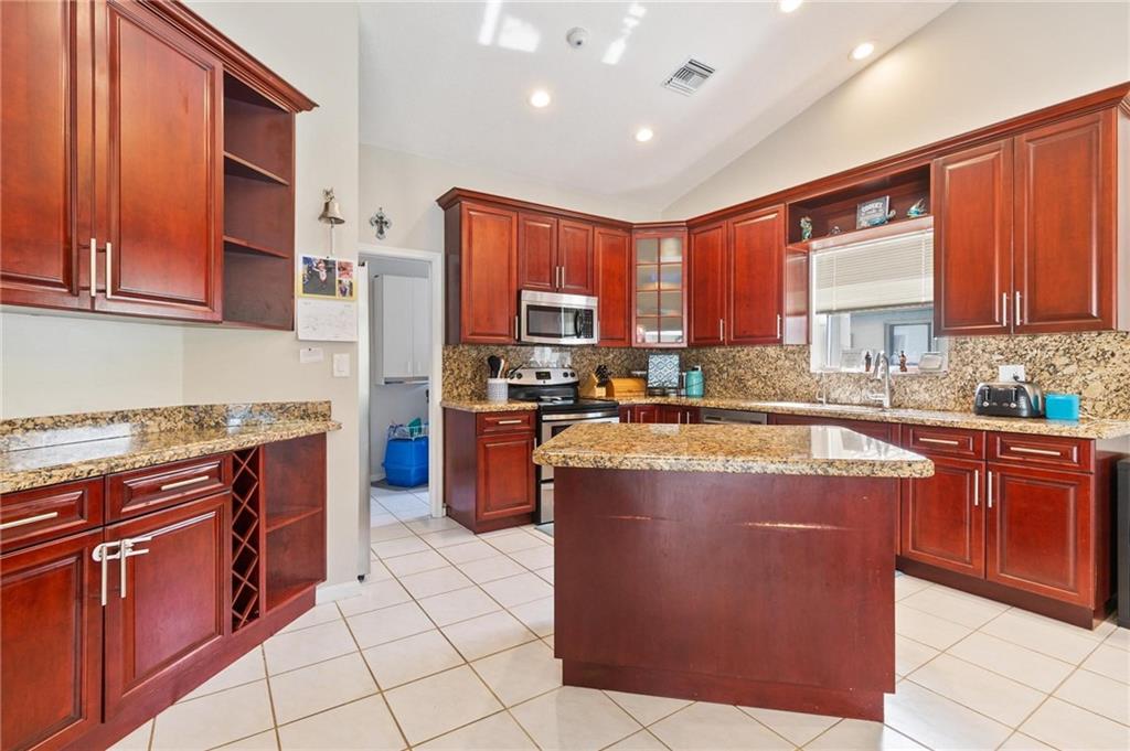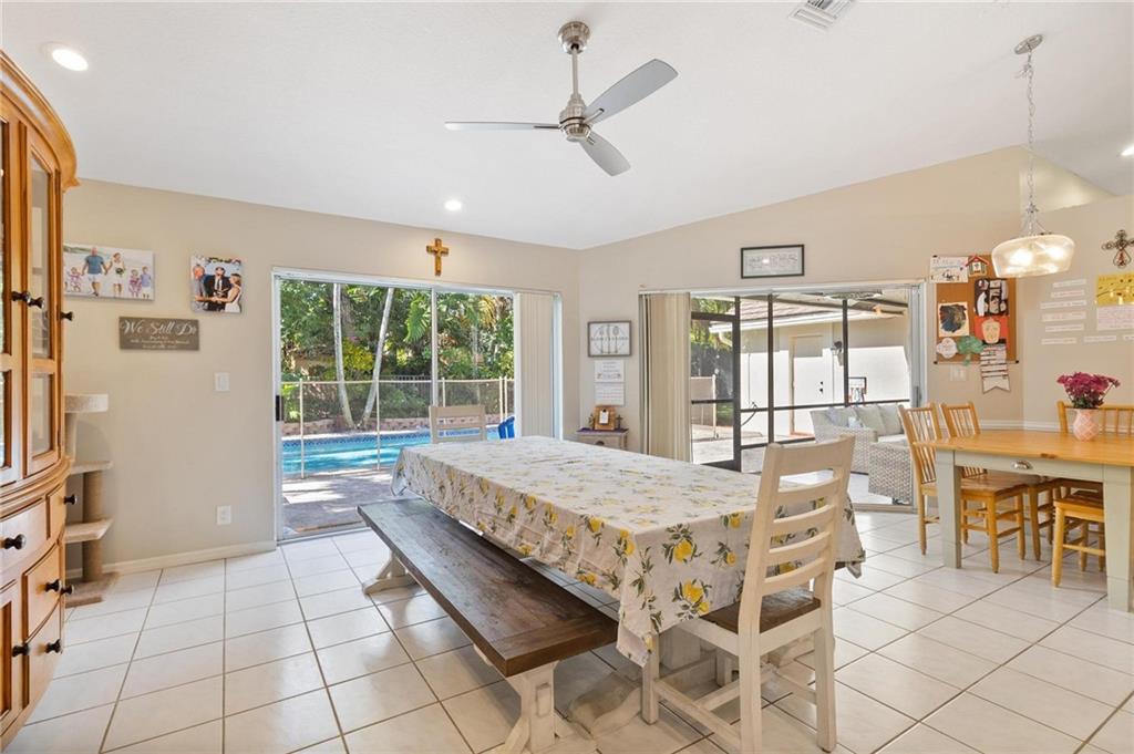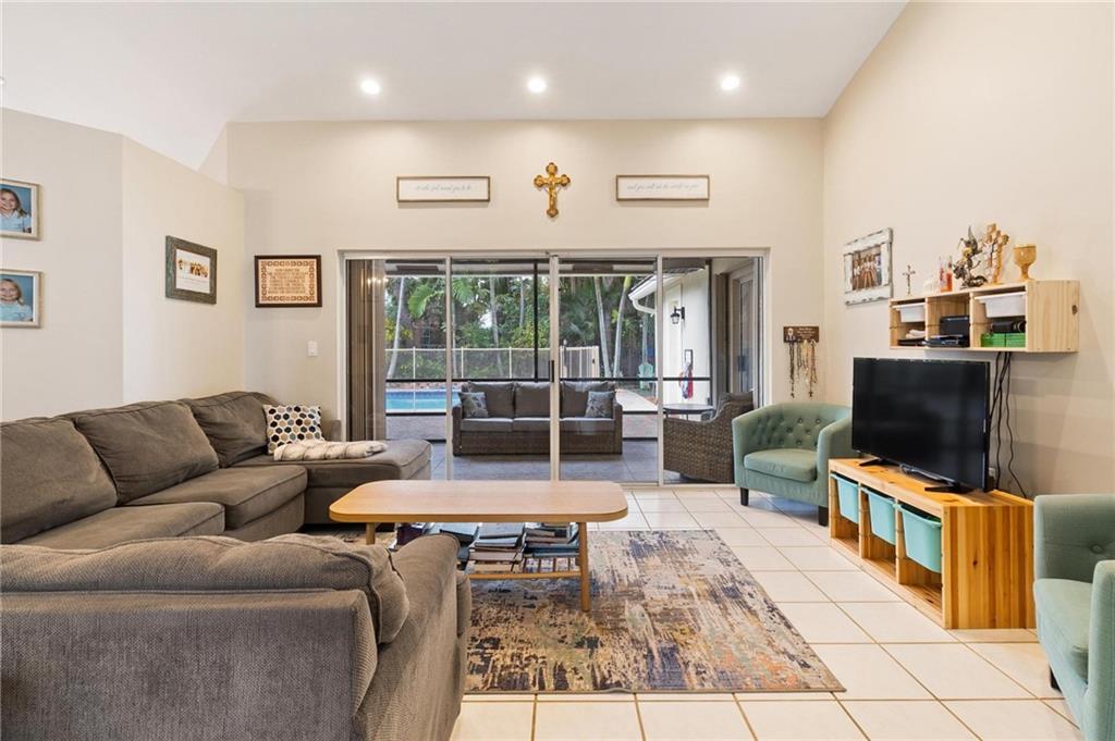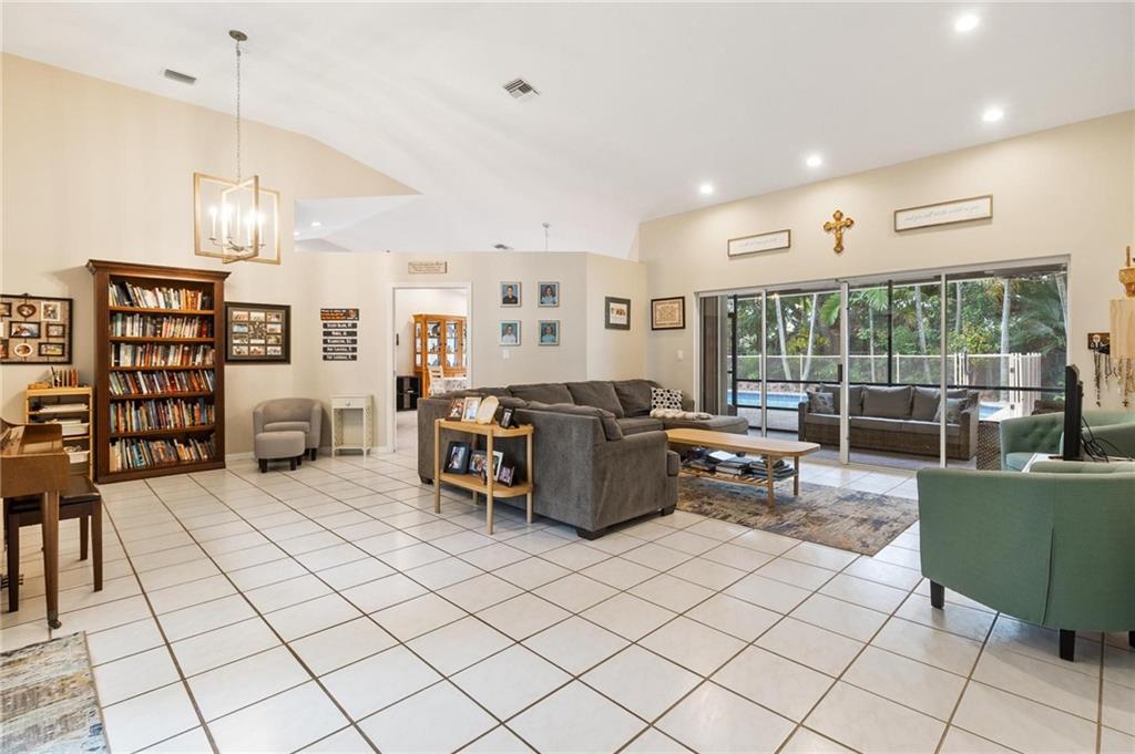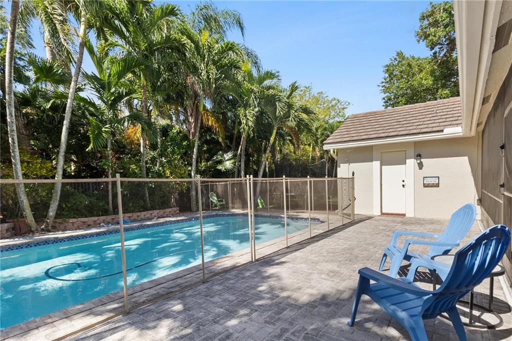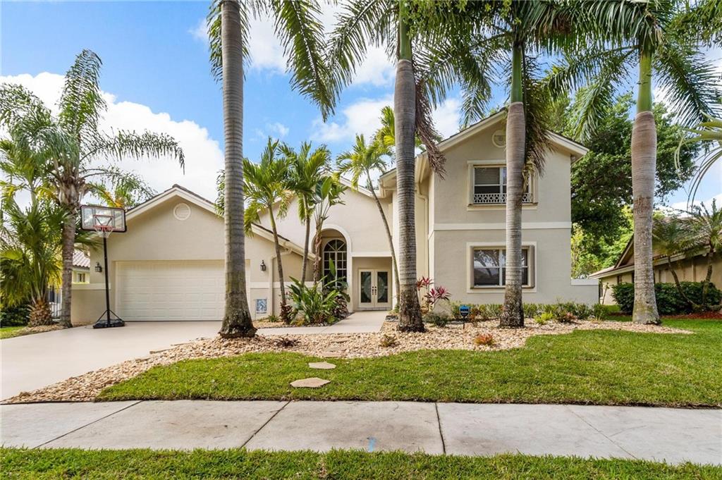 Country Isles Executive Homes/Oaks II in the heart of Weston. Immaculate sought after 5 Bedroom 3 Bathroom Pool Home. Great room with vaulted ceilings leading to screened patio overlooking the pool. Granite countertops, kitchen island and family room. Laundry room leading out to the 2 car garage. Primary bedroom conveniently located downstairs with cabana style bathroom shower and large tub. Two additional bedrooms and full bathroom downstairs. Two bedrooms upstairs with full bath. Paved backyard patio, fenced pie shaped lot with side yard. Gorgeous tree lined streets adjacent to park and elementary school.