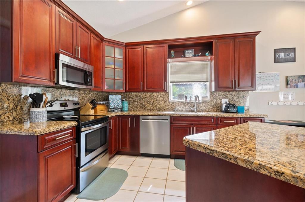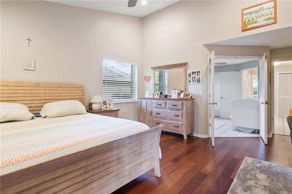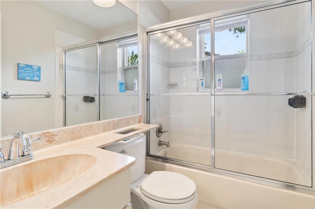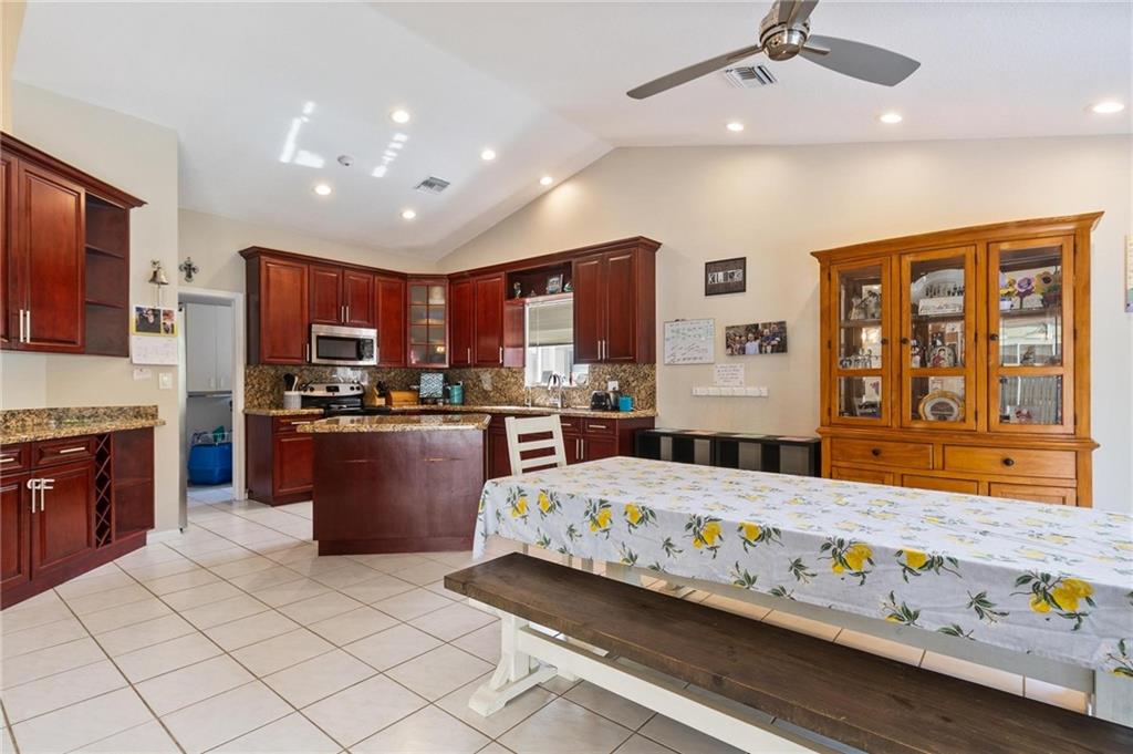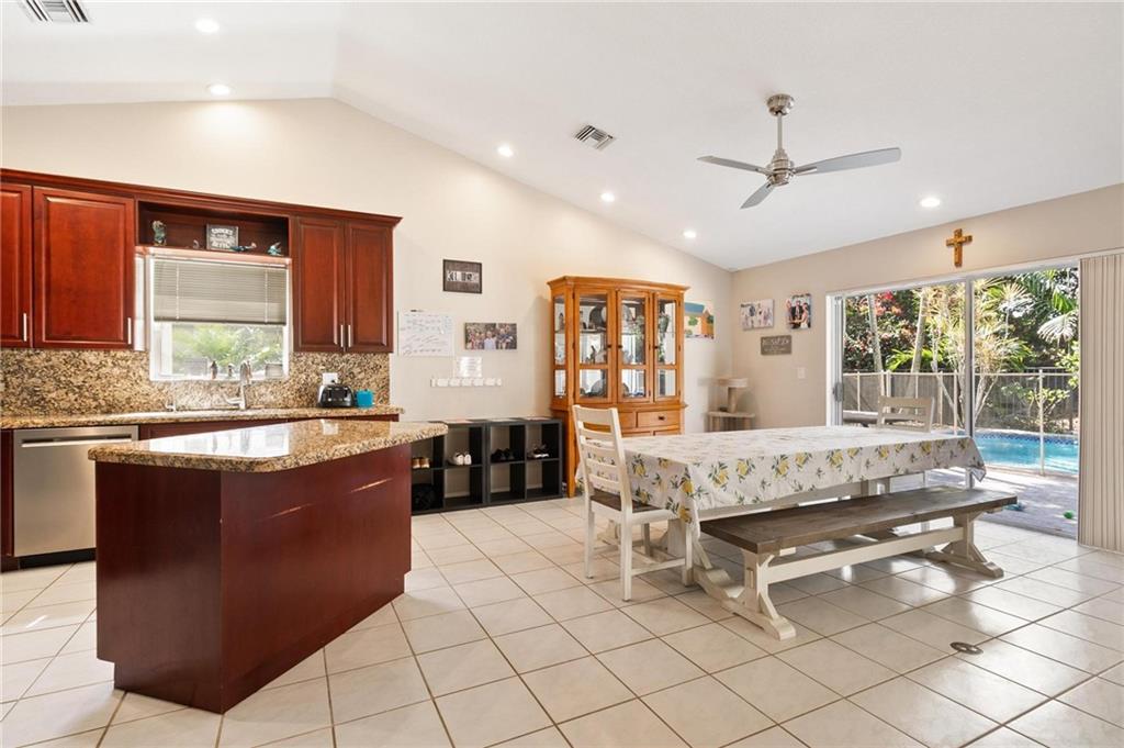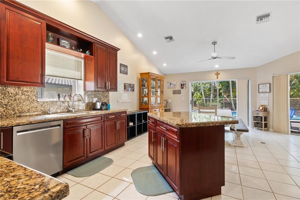 Country Isles Executive Homes/Oaks II in the heart of Weston. Immaculate sought after 5 Bedroom 3 Bathroom Pool Home. Great room with vaulted ceilings leading to screened patio overlooking the pool. Granite countertops, kitchen island and family room. Laundry room leading out to the 2 car garage. Primary bedroom conveniently located downstairs with cabana style bathroom shower and large tub. Two additional bedrooms and full bathroom downstairs. Two bedrooms upstairs with full bath. Paved backyard patio, fenced pie shaped lot with side yard. Gorgeous tree lined streets adjacent to park and elementary school.