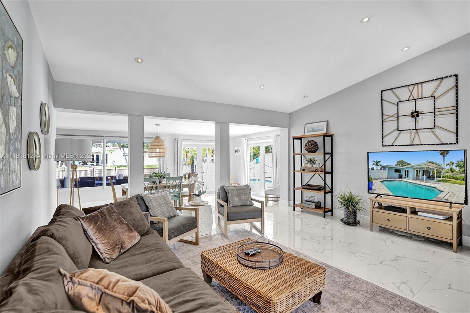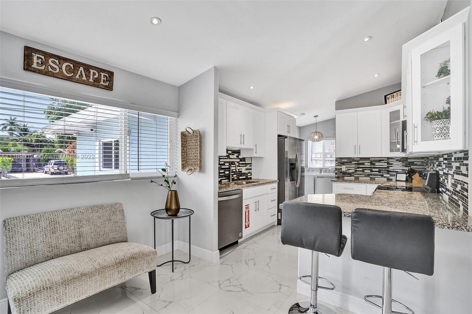 Live where everyone vacations! This stunning Lauderdale Isles home has been operated as a legal vacation rental since 2016 and has been meticulously maintained. Recently remodeled, the 4 bed/3 bath home boasts an open floor plan with vaulted ceilings and a seamless design that truly brings the outdoors in! The kitchen features white shaker cabinets, SS appliances and granite counters. The property is situated on 70 ft of water frontage with direct ocean access and no fixed bridges. Countless renovations in recent years include: new A/C (2019), new impact windows in (2019), new pool heater, salt water system and pool pump (2020), dishwasher and dryer (2020) and new gutters (2020). Multiple offers received - all offers due by April 19th at 6 pm.
