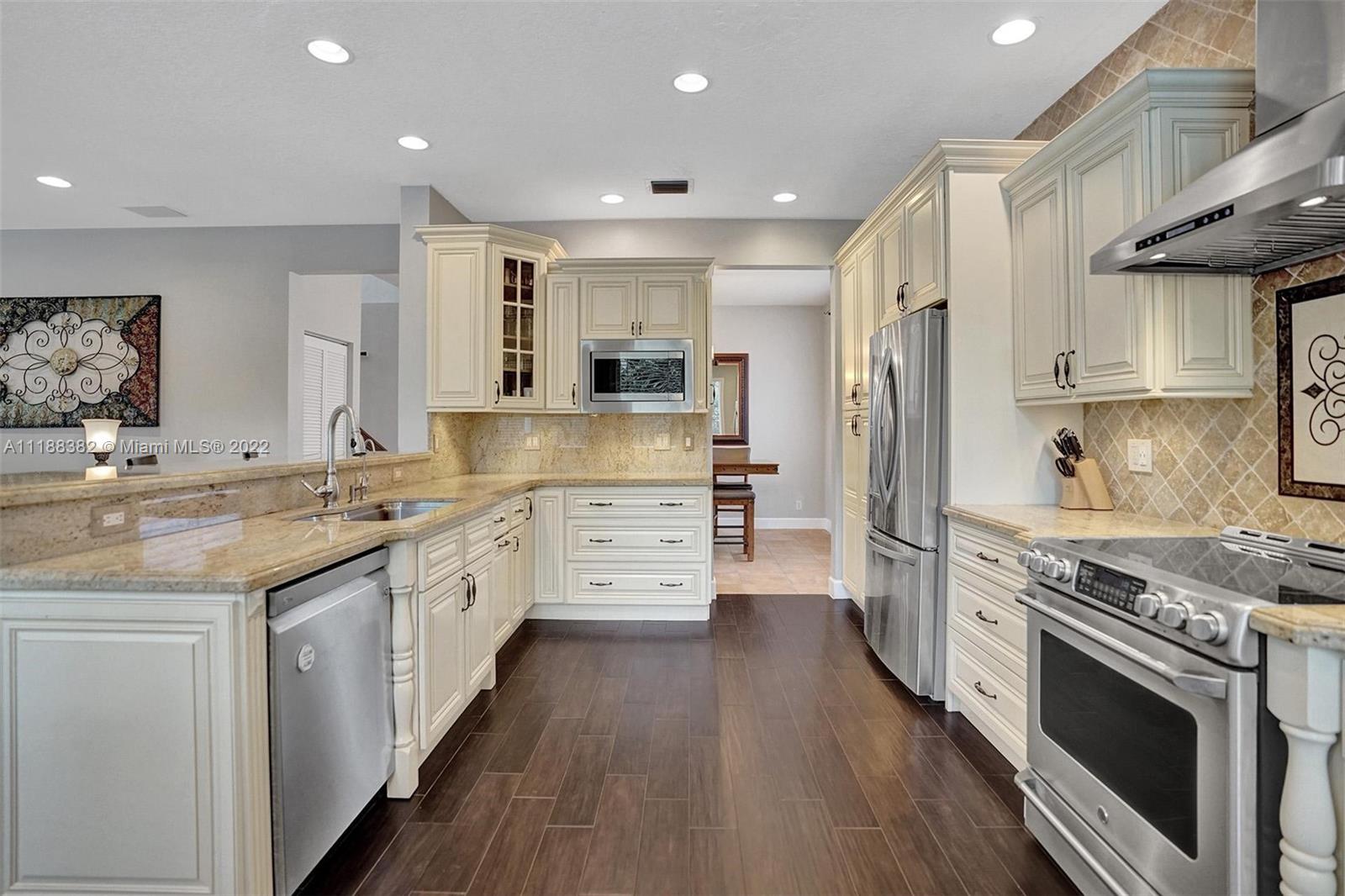 3,002 sq ft Liv Area of pure Luxury! Move-in-ready property w/ Resort-Style Saltwater Pool, fully fenced & privacy hedged. Located in the highly desired community of Camellia Islands. 5 Bedrooms plus 3 Full Baths, 2 Car Garage w/ Oversized Pool. BRAND NEW Roof (2022) & All New Gutters, Full Accordion Hurricane Shutters. Freshly painted Exterior & Trim. BRAND NEW Landscaping front & back. Freshly painted interior. Updated Kitchen w/ White cabinets, granite countertops with new dishwasher, & microwave. featuring a 256-bottle Wine Chiller. Full Bed/Bath first floor. Garage w/ AC, ceiling storage w/ new floor and paint. Brand New A/C's, NEW Pool Pump, upgraded Sprinkler system. Pergola with SmartTV. Barn Doors, LED lighting, New light fixtures. A+ schools! Corner lot in Cul de Sac