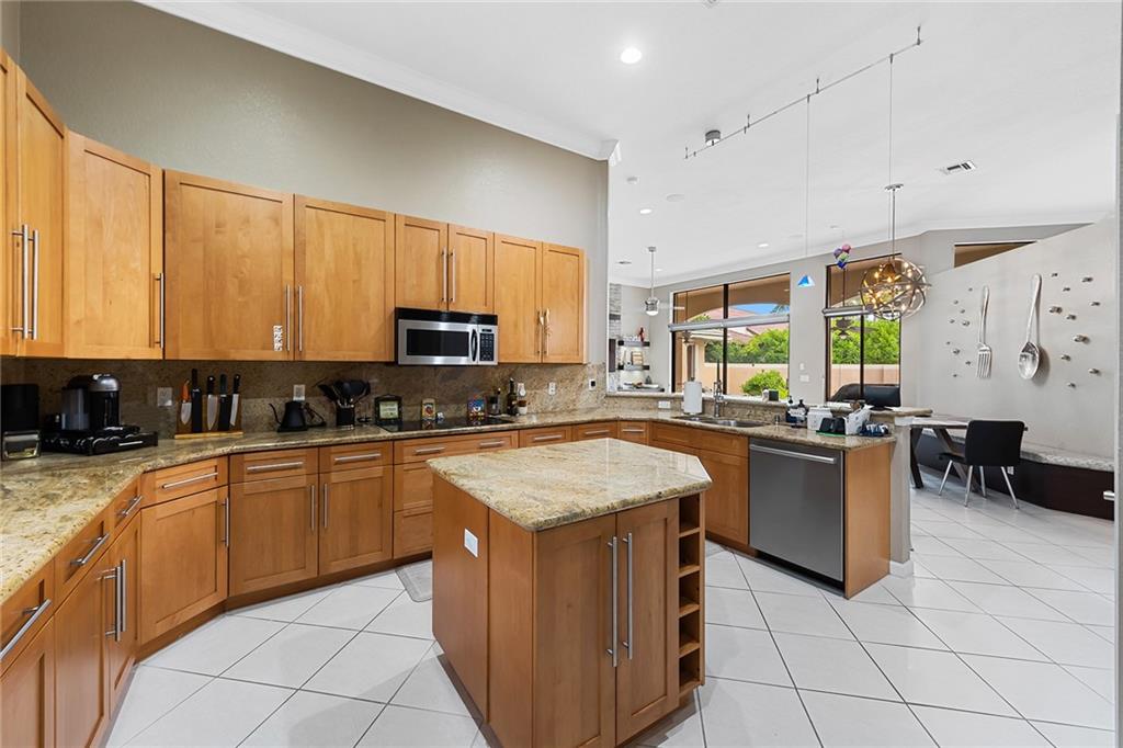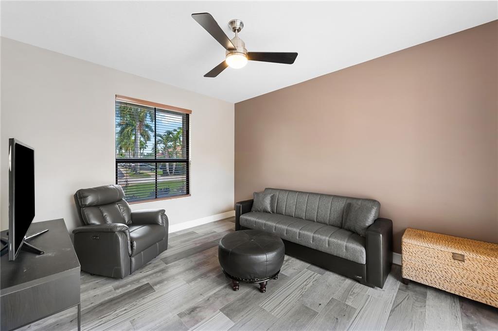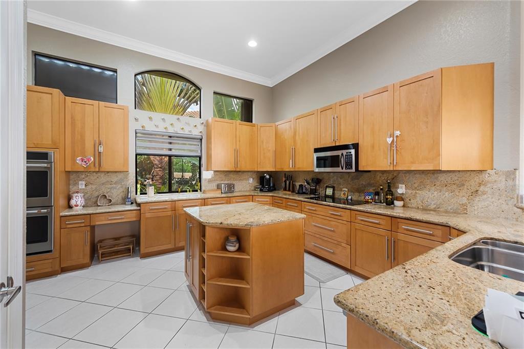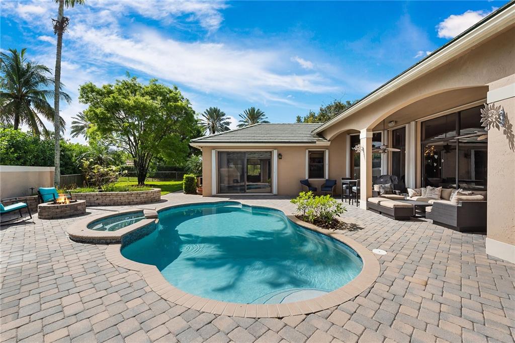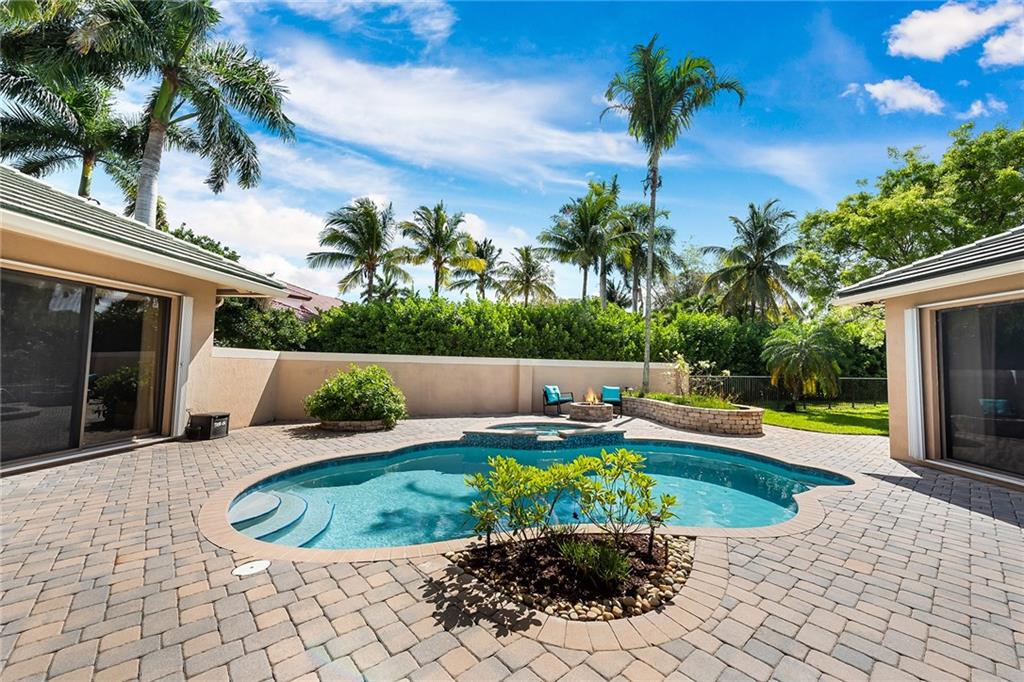 Welcome Home! This 7 bedroom, 5 bathroom home will fit all of your needs and more! With one of the largest lots on the block, it is perfect for indoor/outdoor living. The pool and courtyard area is expansive and great for entertaining. Kitchen includes newer appliances. Family room has beautiful built in cabinetry and shelving and the living room TV is included with the home! Primary bedroom has his/hers closets. Main house has 3 bedrooms and 2 bathrooms upstairs, 3 bedrooms & 2 baths downstairs. The pool/guest house includes a full bathroom, new A/C, new flooring. 3-car garage. Impact windows/Accordion shutters for storm protection. Community amenities: community pool, tennis courts, fitness center, guarded gates and security.
