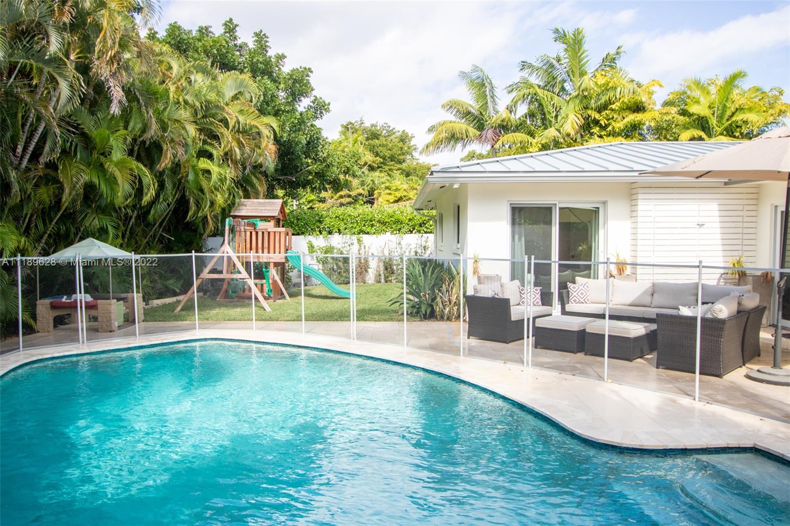 One of the nicest homes available in Harbour Inlet. Totally renovated and sold furnished, this 4 BR/3 BA, 2 car garage single story home offers high quality modern designer finishes. 2019 remodel included new electric, plumbing, underground plumbing, impact glass, roof, HVAC, heated salt water pool, generator and more. The interior features high quality fixtures and finishes including modern kitchen with Jennair appliance package with 48” built in refrigerator, laundry room with 2nd refrigerator, Samsung automation system, Sonos sound and more. Highly desirable Harbour Inlet neighborhood is within close proximity to the widest beach in Fort Lauderdale and within walking distance to restaurants and beach clubs. Minutes to Las Olas/downtown, airport, cruise port and all major roads.