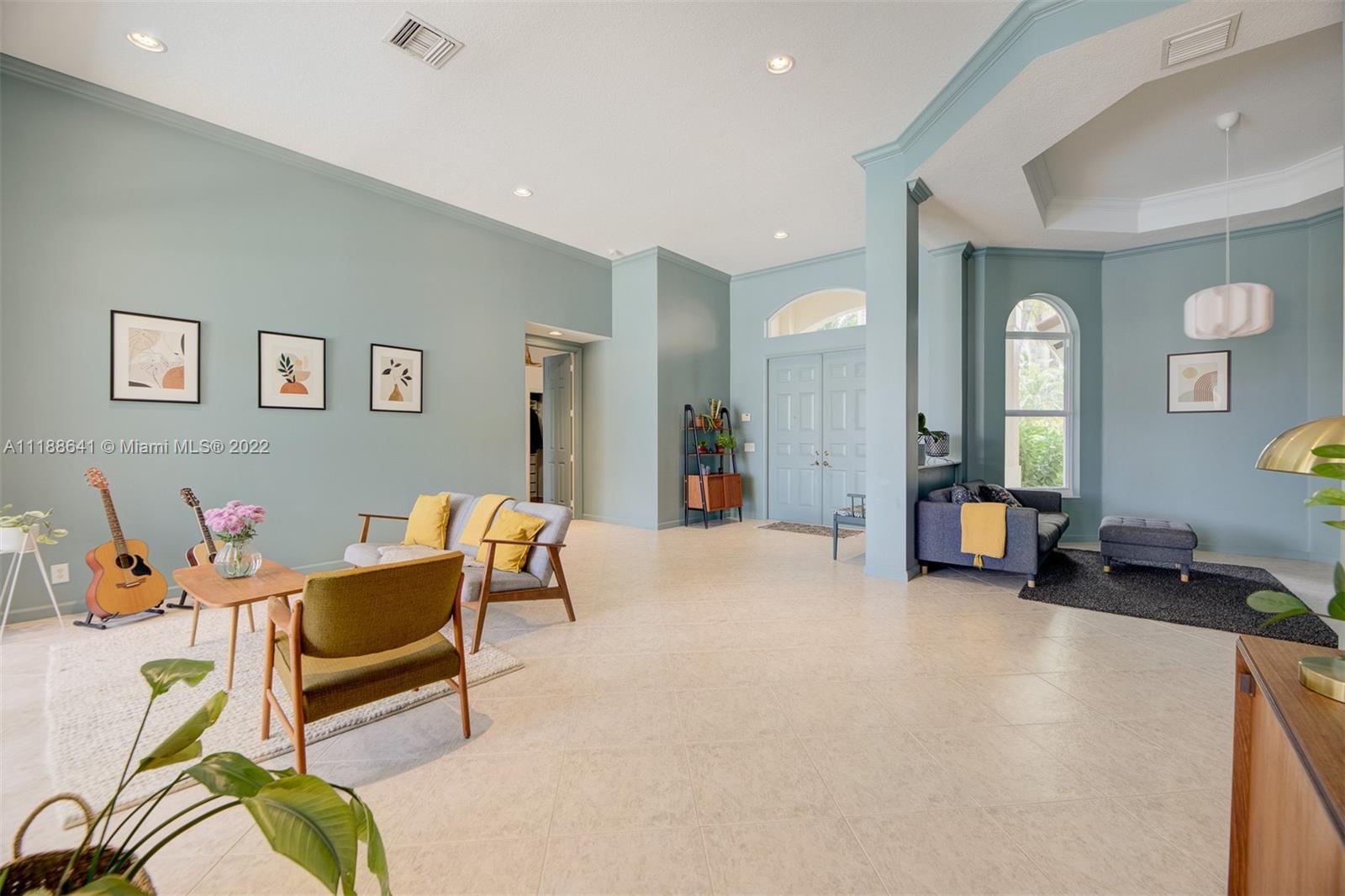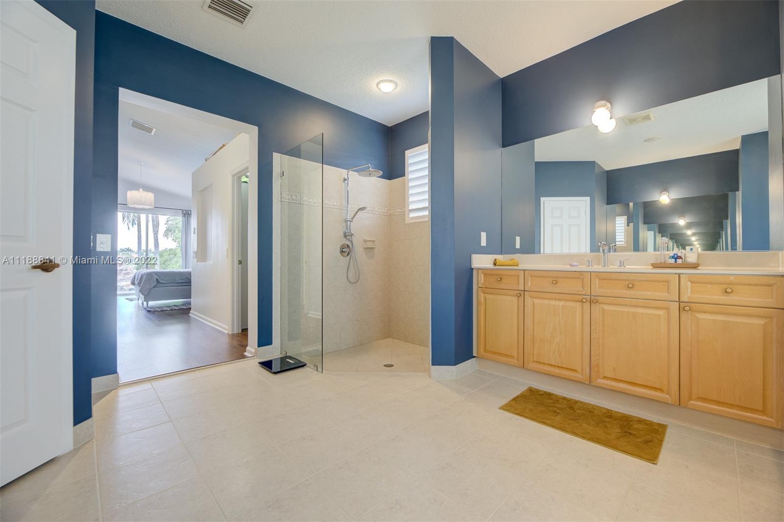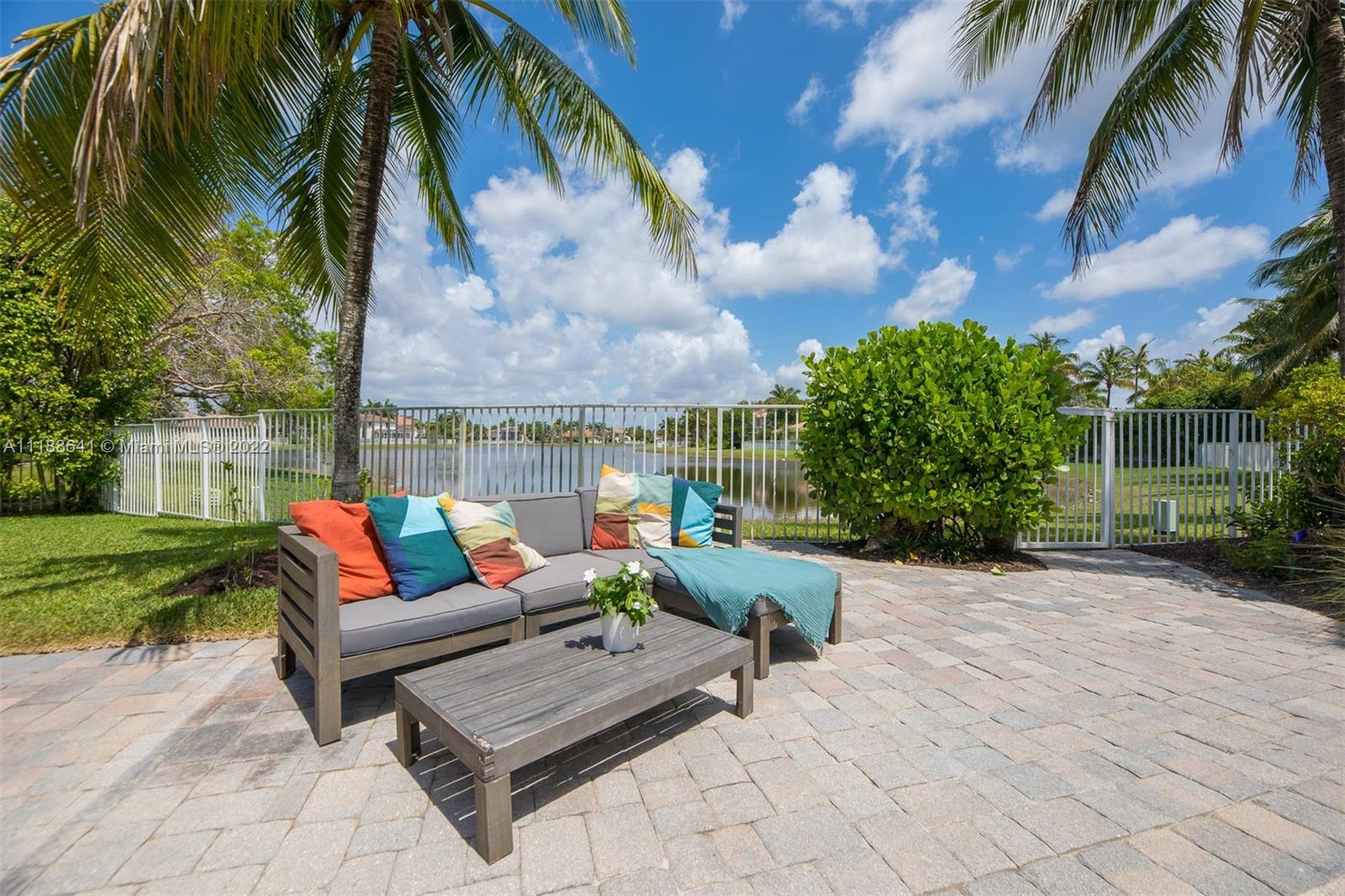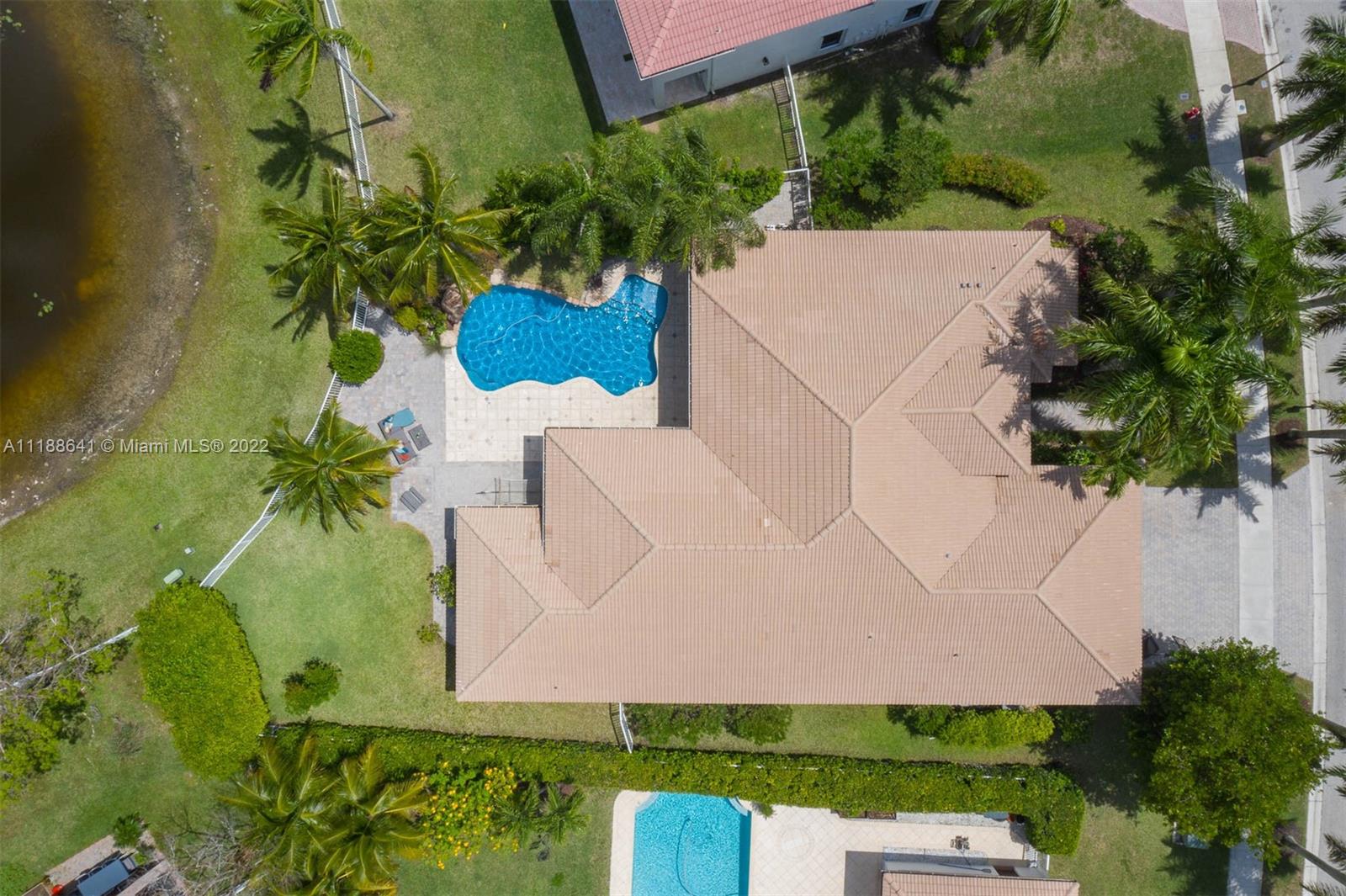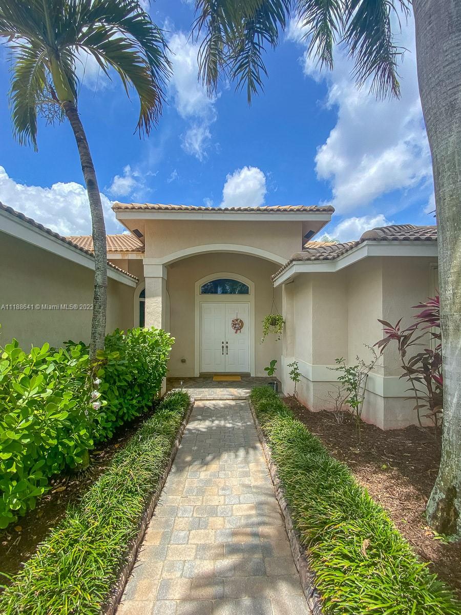 Imagine your family & friends gathering on this beautiful patio watching the sunset. Swim in the free form pool and enjoy the waterfall and this picturesque view of the lake. When you walk through the front door you will be in awe of the open floor plan with vaulted ceilings and gorgeous natural lighting. Multiple living areas and the triple split floor plan on 3879 sf provide plenty of room for entertaining. This well maintained home features a fully remodeled kitchen,renovated bathrooms,California closets,newer AC,complete Accordian Shutters,partial Impact windows and Plantation shutters. Nestled in the prestige subdivision 'The Cove' in Savanna, Weston. This highly desired community has resort style amenities, low HOA and is located in one of the best school districts in Broward County.