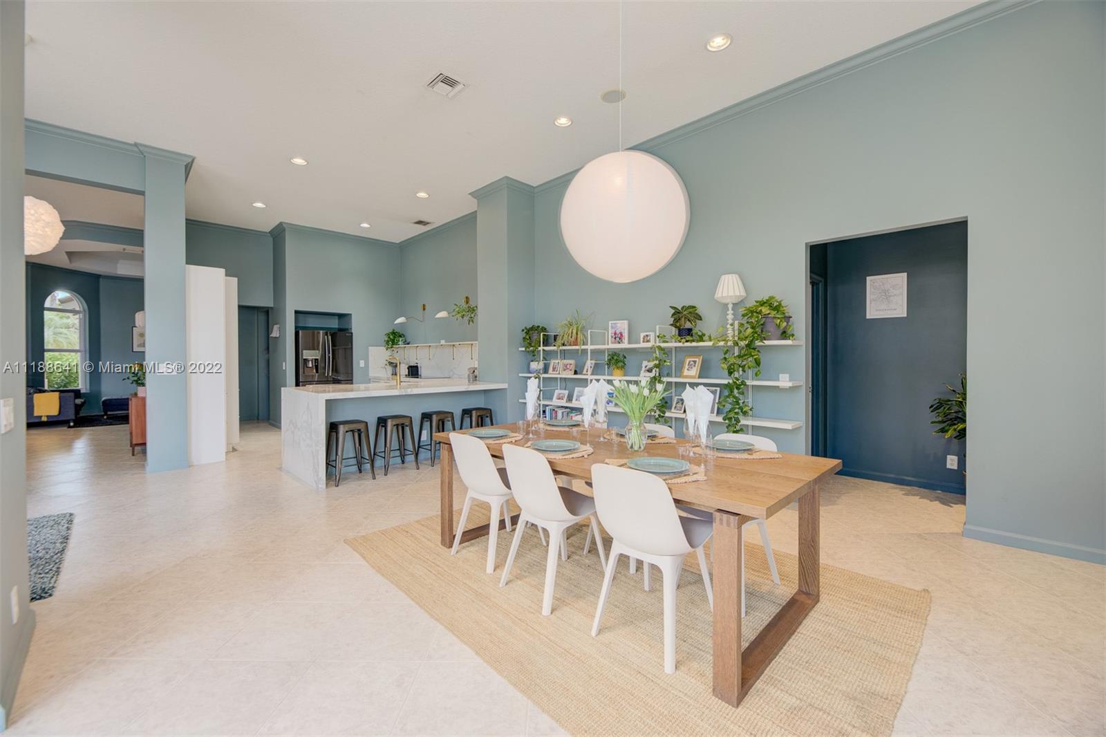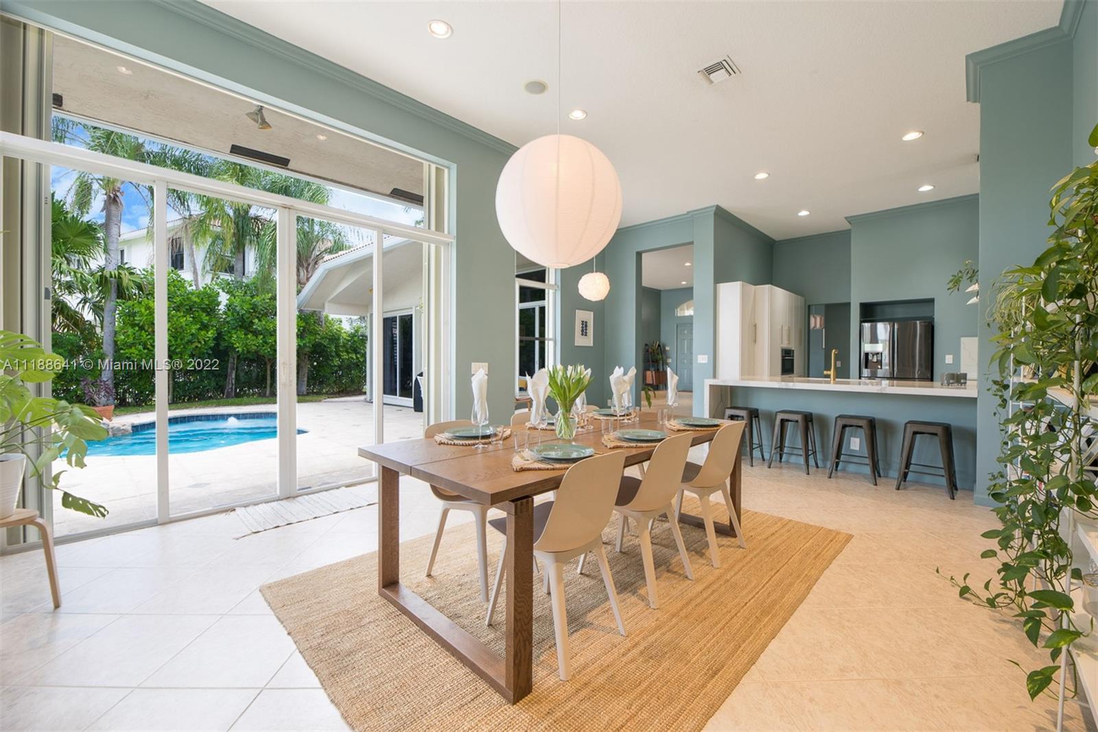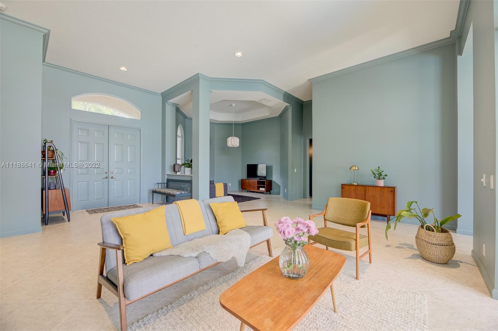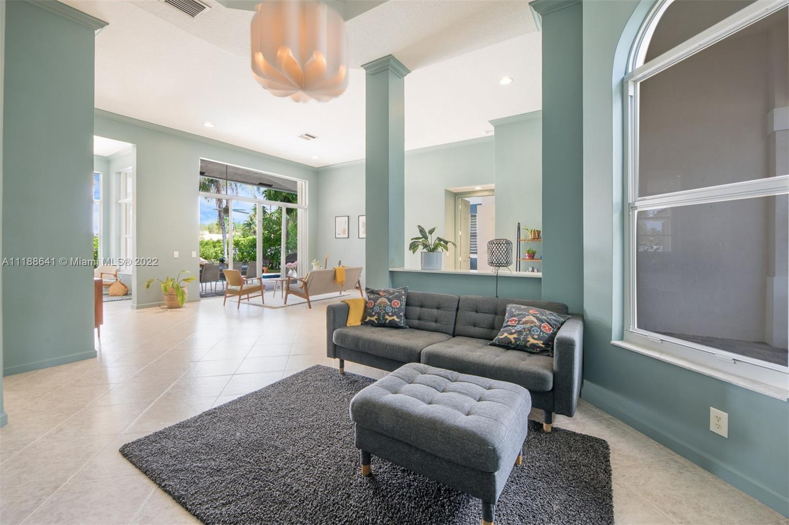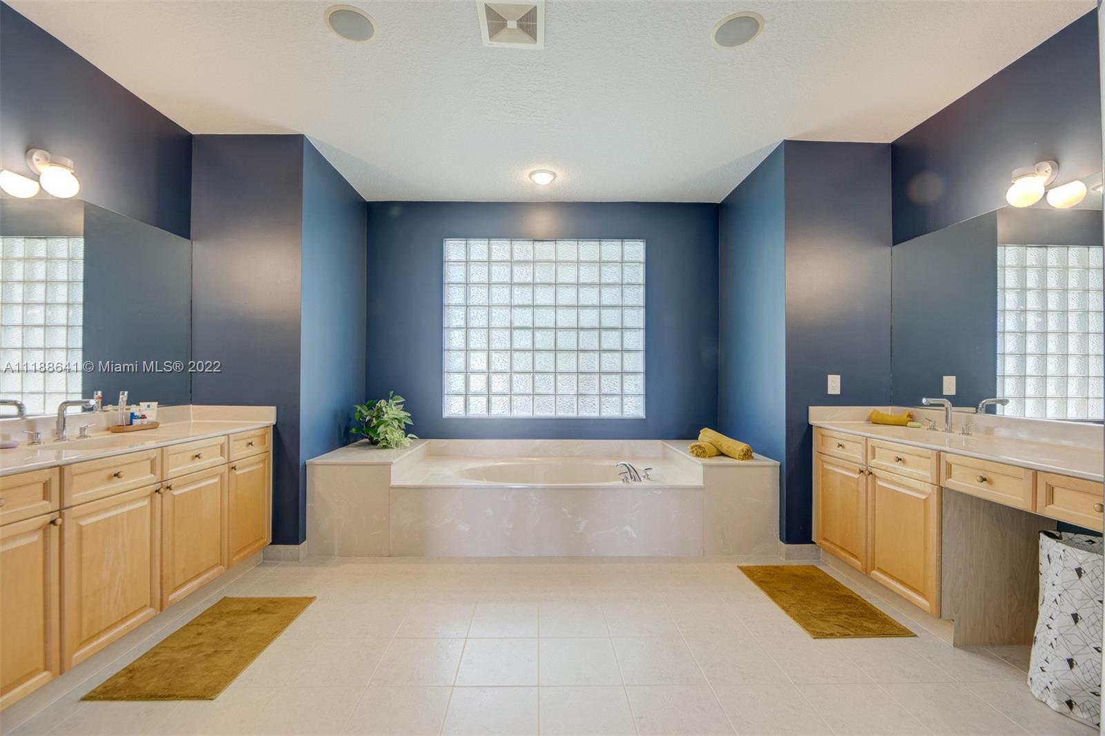 Imagine your family & friends gathering on this beautiful patio watching the sunset. Swim in the free form pool and enjoy the waterfall and this picturesque view of the lake. When you walk through the front door you will be in awe of the open floor plan with vaulted ceilings and gorgeous natural lighting. Multiple living areas and the triple split floor plan on 3879 sf provide plenty of room for entertaining. This well maintained home features a fully remodeled kitchen,renovated bathrooms,California closets,newer AC,complete Accordian Shutters,partial Impact windows and Plantation shutters. Nestled in the prestige subdivision 'The Cove' in Savanna, Weston. This highly desired community has resort style amenities, low HOA and is located in one of the best school districts in Broward County.