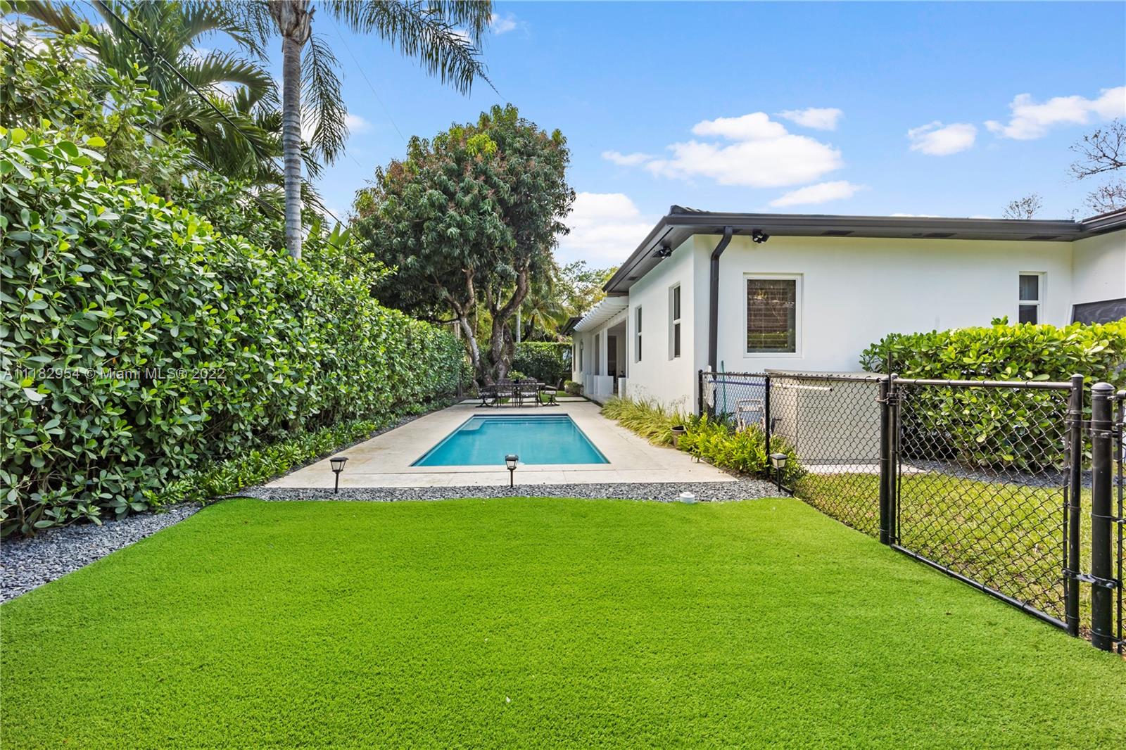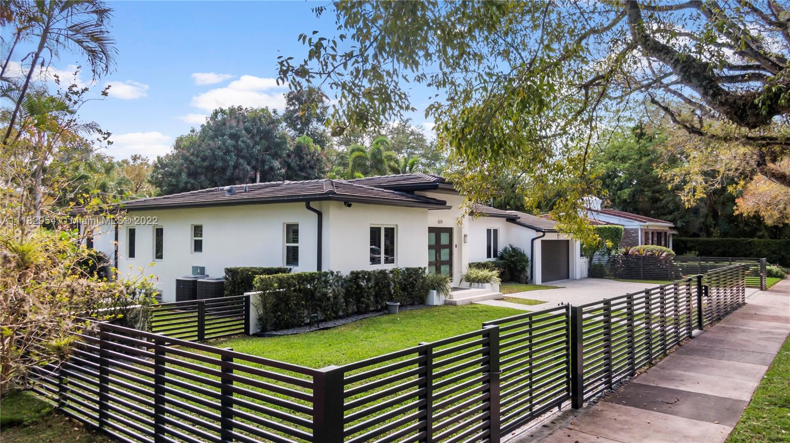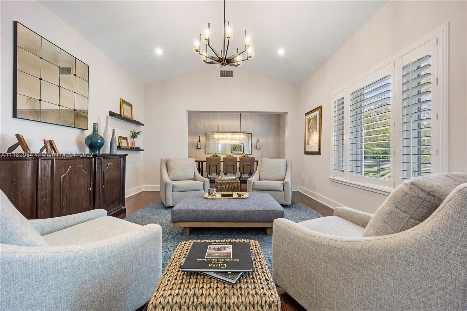 This stylish and contemporary one-story home is located in the Golden Triangle of Coral Gables on a beautiful street w/wide swale. Walking distance to the Biltmore Hotel and Golf Course and Downtown Coral Gables and within a short stroll to Fine dining and entertainment at Miracle Mile. All done with high-end finishes and excellent quality. This spacious family home features a welcoming foyer entrance with a formal living and dining room area with an adjacent butler’s pantry. The gourmet kitchen, with Wolf appliances (gas range), Sub-Zero refrigerator, and custom ITALKRAFT cabinetry, overlooks the family room area with a beautiful shiplap accent wall. Full house generator! Move-in ready! Location! Location! Location! Outstanding! A must-see!