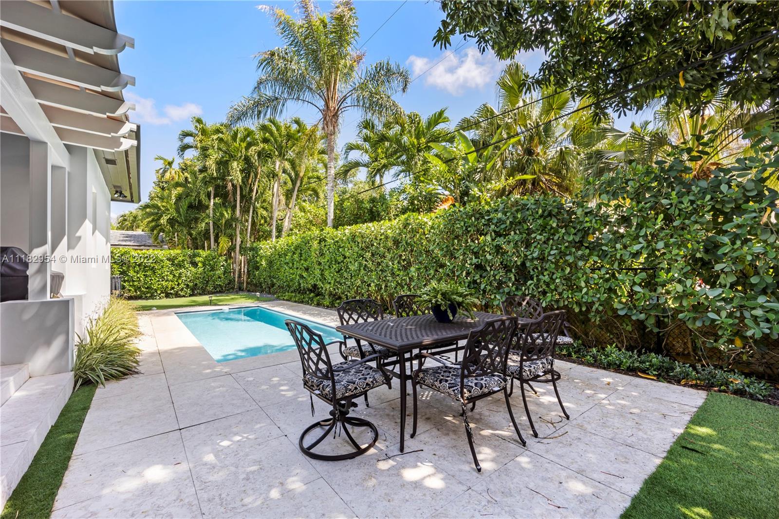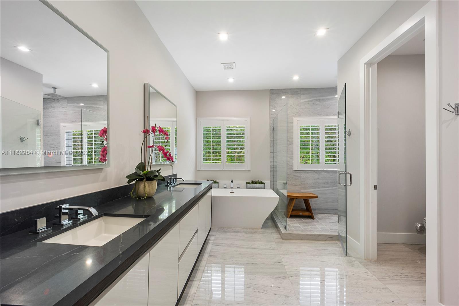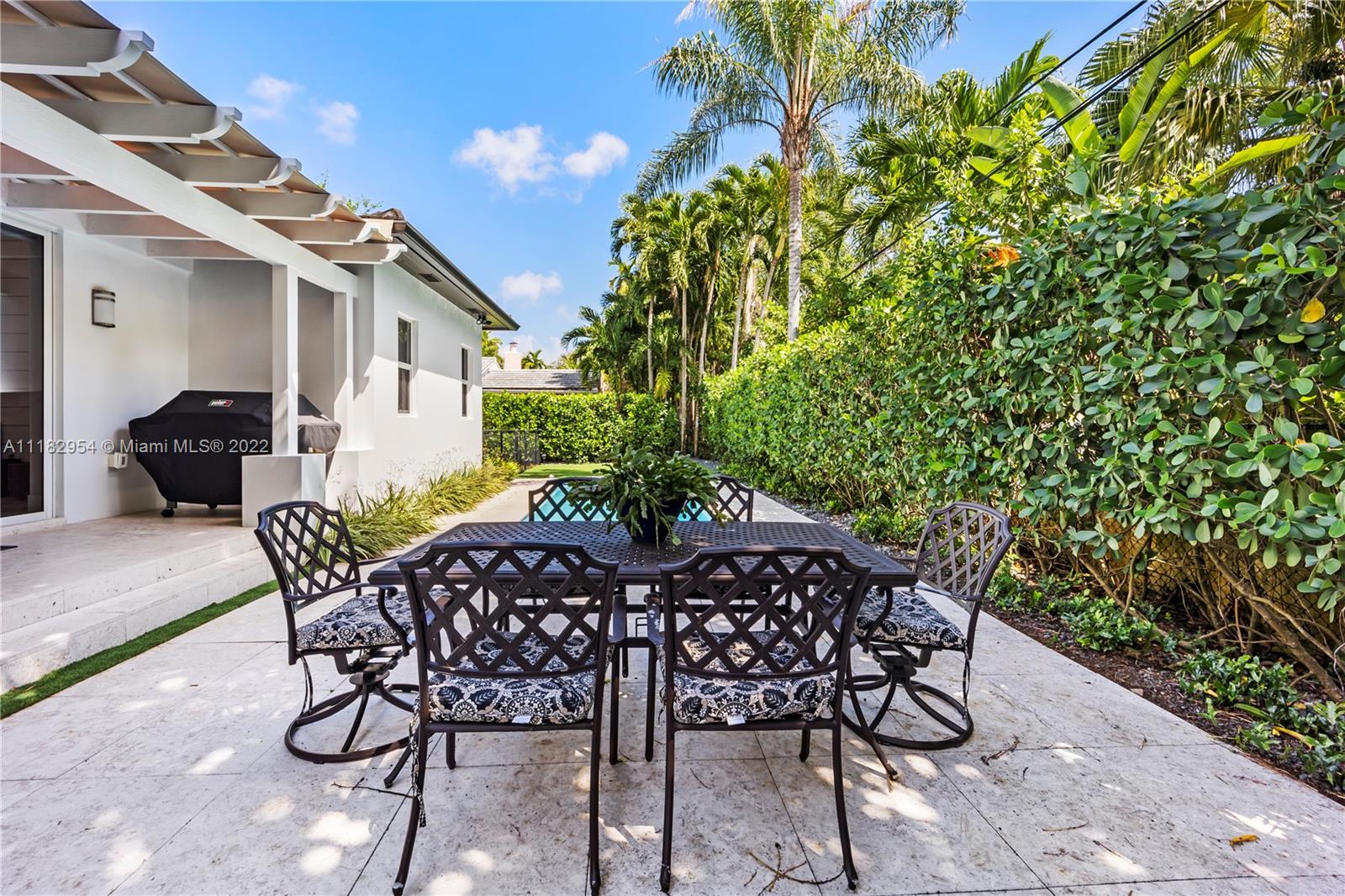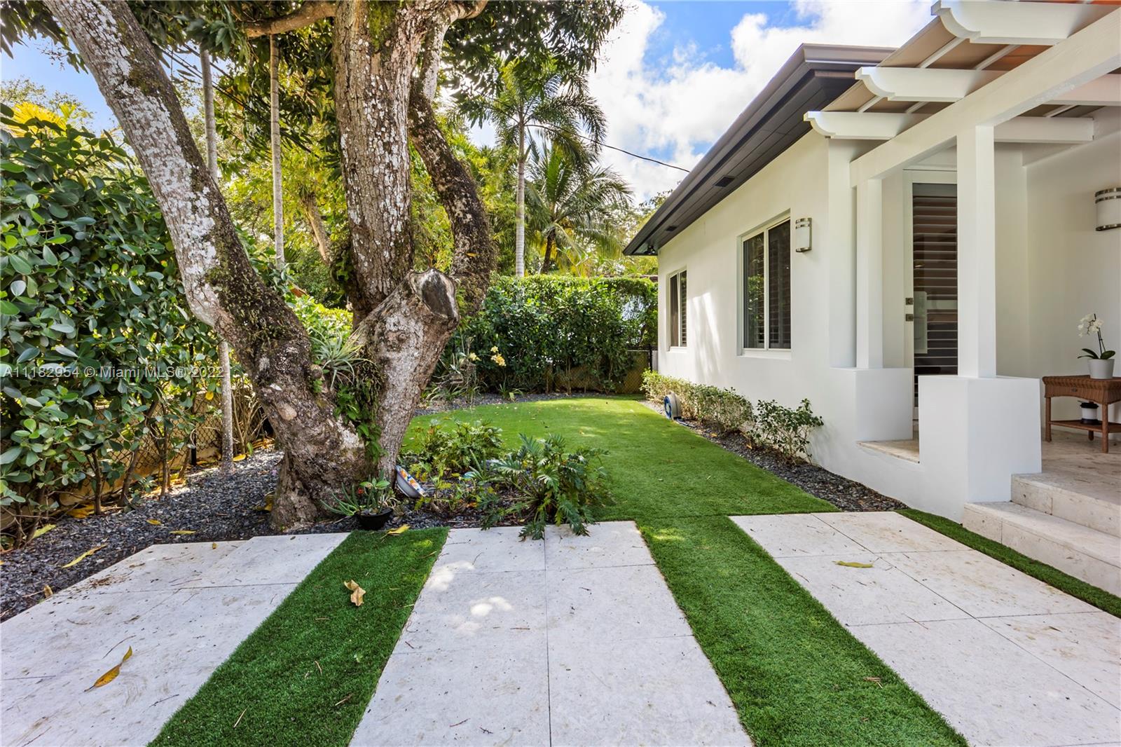 This stylish and contemporary one-story home is located in the Golden Triangle of Coral Gables on a beautiful street w/wide swale. Walking distance to the Biltmore Hotel and Golf Course and Downtown Coral Gables and within a short stroll to Fine dining and entertainment at Miracle Mile. All done with high-end finishes and excellent quality. This spacious family home features a welcoming foyer entrance with a formal living and dining room area with an adjacent butler’s pantry. The gourmet kitchen, with Wolf appliances (gas range), Sub-Zero refrigerator, and custom ITALKRAFT cabinetry, overlooks the family room area with a beautiful shiplap accent wall. Full house generator! Move-in ready! Location! Location! Location! Outstanding! A must-see!