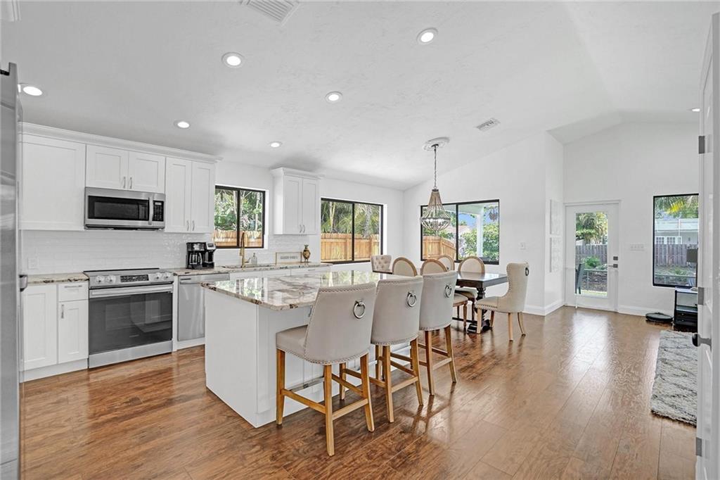 RENOVATED! OCEAN ACCESS! GREAT LOCATION! 4 Bedroom+ a den/office, 2 Bathroom SPACIOUS waterfront home! OPEN layout with split bedroom floor plan. BEAUTIFUL new Engineered Wood flooring and Porcelain tiles thru-out. STUNNING kitchen equipped with NEW SS appliances and GORGEOUS granite countertops including an OVERSIZED center island. LARGE closets in each bedroom and 2 walk-in closets in the primary bedroom. Enjoy the HUGE backyard with plenty of room for a pool. Dock your boat at the REMODELED and RESTORED 90+ ft dock with easy access to the Ocean and a boat lift. Furniture is negotiable. Close to I-95, restaurants, shopping, beaches, airport, grocery, etc. Don’t miss this FABULOUS home!