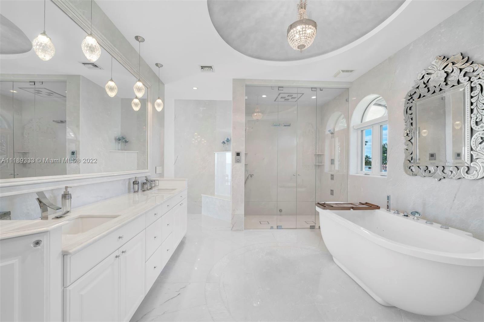 Experience breathtaking open bay views from this waterfront estate. Designed to maximize water views from every angle, direct Miami Skyline views take your breath away as you walk in and are enveloped by 23’ ceilings. This 4 bedroom, 4 full & 1 half bathroom, 5,782 SF home sits on a 8,858 SF lot with 103’ of water frontage. With a private dock & ocean access for your yacht. Features include an elevator, Savant smart home system throughout, surround sound, marble floors, gourmet kitchen with a cooking island & Thermador appliances, wet bar, gym with full bathroom, movie theatre, fireplace, 4 balconies, principal bedroom with seating area and spa shower. The outdoors are complete with a pool & spa, swim jet, outdoor fire pits, automatic retractable shades and views as far as the eye can see.