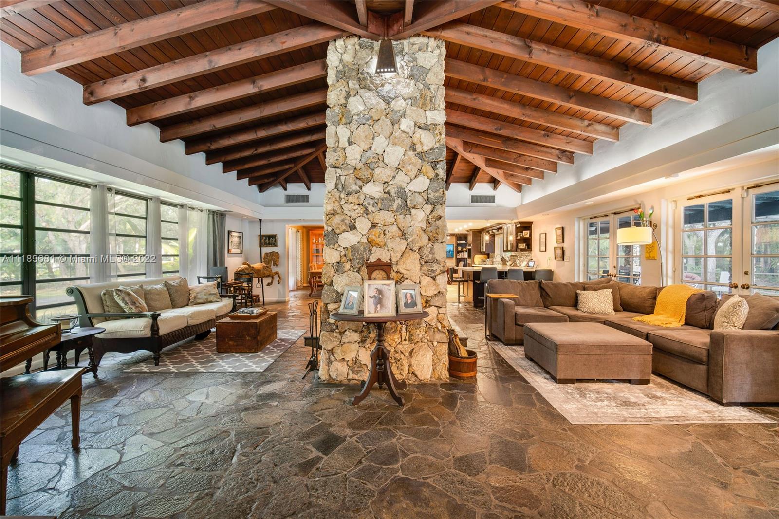 A one-of-a-kind Pinecrest home on over an acre w/ magnificent oak trees throughout. Enter this enchanting 4 bedroom + office (large enough to make it a 5th bedroom) / 4 baths (all en-suites) home w/ formal living & dining rooms, striking double-sided fireplace w/ beautiful wood vaulted ceiling, warm & inviting family room, kitchen that was totally redone w/ top-of-the-line appliances, a beautifully renovated primary bathroom that will blow you away, deep patio + fabulous pool, and side-entry double-car garage. New roof, new drain field, two new A/C units & handlers, oversized laundry room, split floor plan, mango, avocado, and banana trees. You can enter the property from either SW 123rd Street or SW 126th Street Road. The list goes on and on.